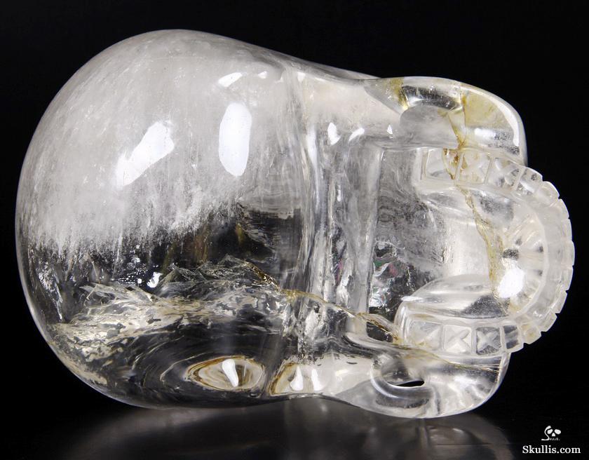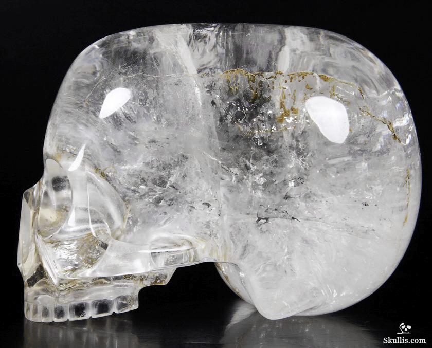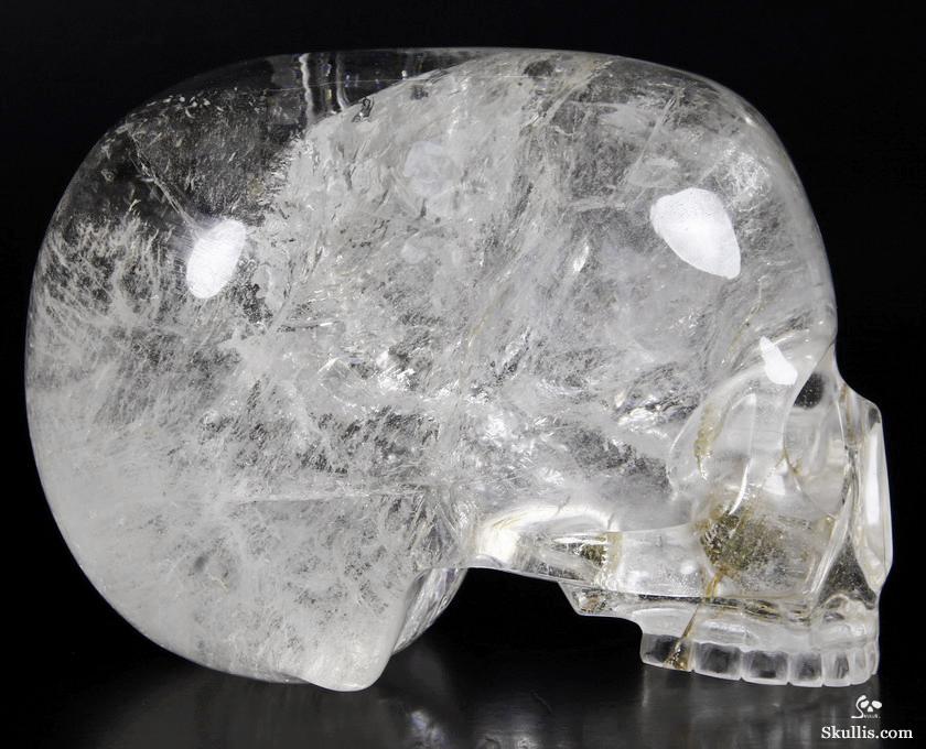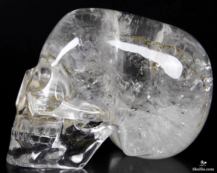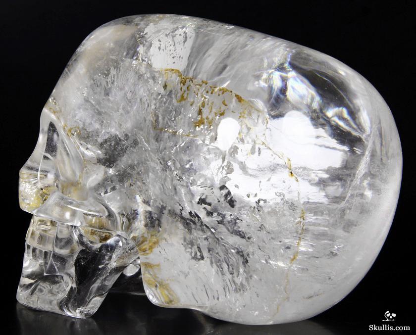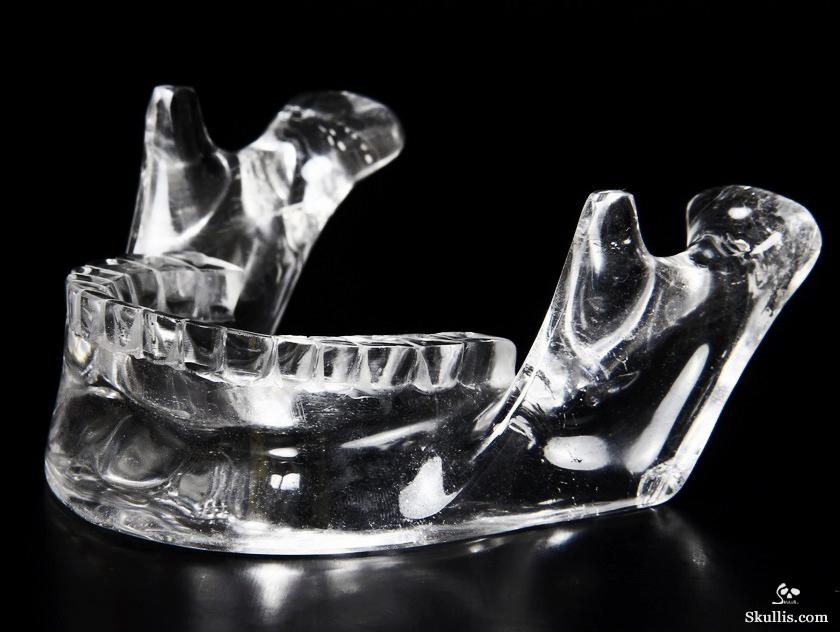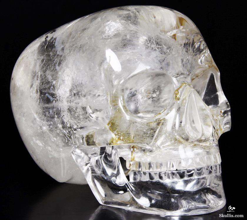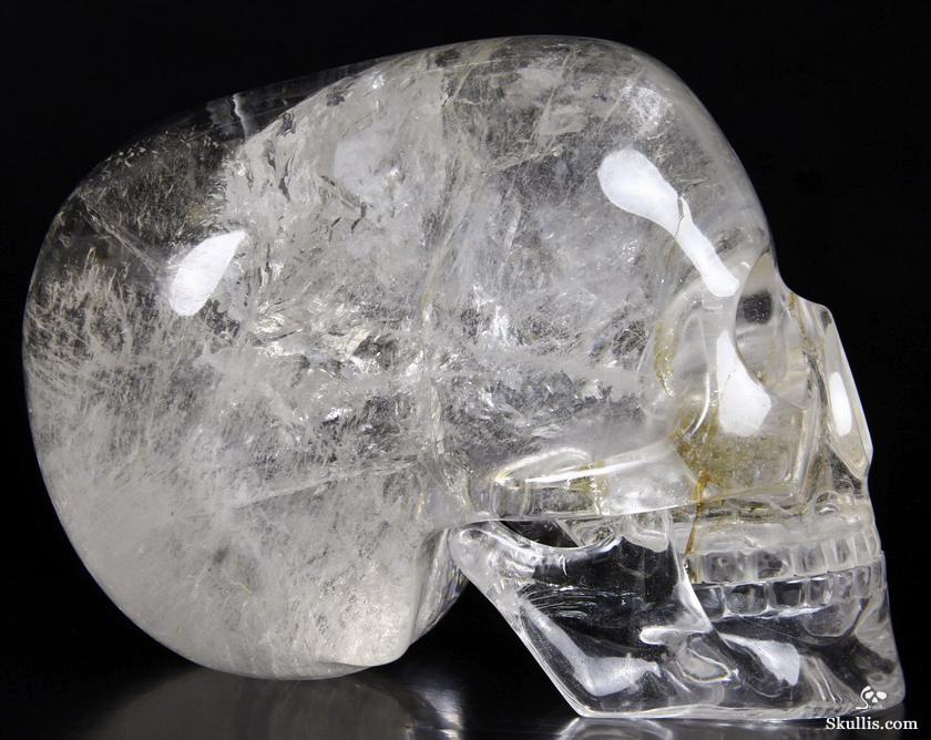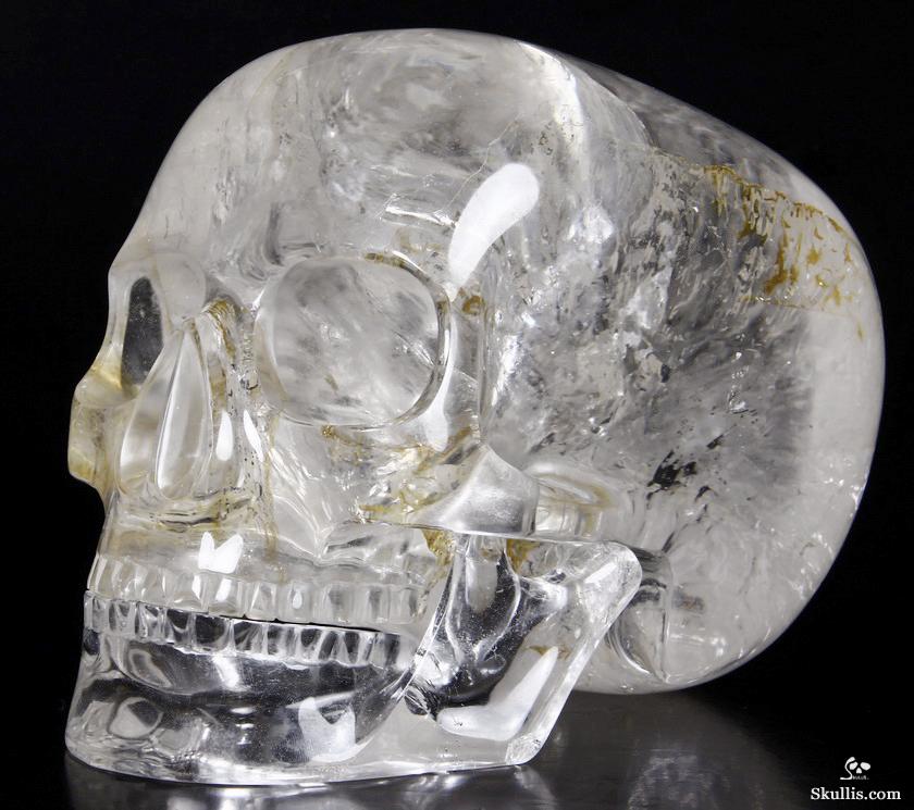 After untold hours of research, study, and carving, we have done it! The top artists at Skullis Studios have exactingly reproduced the famous Mitchell-Hedges crystal skull. Not only did we scour the Internet for every available photo, youtube video, and written description of the Mitchell-Hedges skull (including the official size and weight measurements- provided to us by documentarians from the National Geographic Channel, via The Smithsonian Institution in Washington DC); we also acquired every DVD available featuring the skull, from its original appearance on Arthur C. Clarke's "Mysterious World", to more recent documentaries (Smithsonian Institute/BBC documentary on the subject of crystal skulls, SyFy Channel documentary, among others), to videos sold as meditation aides by the skull's present caretaker, Bill Homann. Proportionately accurate in every detail, the skull has been painstakingly reproduced using official measurements taken by Frank Dorland at the Hewlett Packard crystal laboratory, where the Mitchell-Hedges skull was first subjected to rigorous scientific testing in 1970. Besides watching every known piece of video showing the skull and studying every available picture innumerable times, our team of top artists also took detailed measurements from multiple high quality DVD images (taken from various angles) of the skull and lower jaw, to ensure the highest degree of accuracy possible in proportionately recreating every feature of the original. Many months and several iterations later, we have finally done what the experts said could not be done: we have successfully and accurately recreated the most enigmatic lapidary masterpiece of all time!