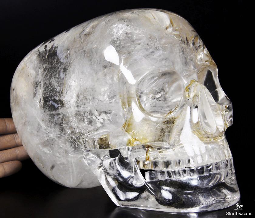 Clear Giant 11.0" Quartz Rock Crystal Carved Crystal Raven Skull
