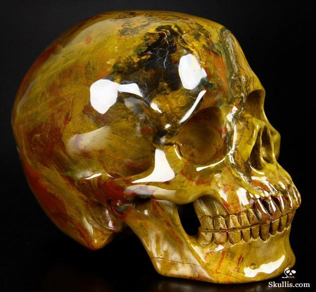 5.1" Petrified Wood Hand Carved Crystal Skull, Realistic, Crystal Healing