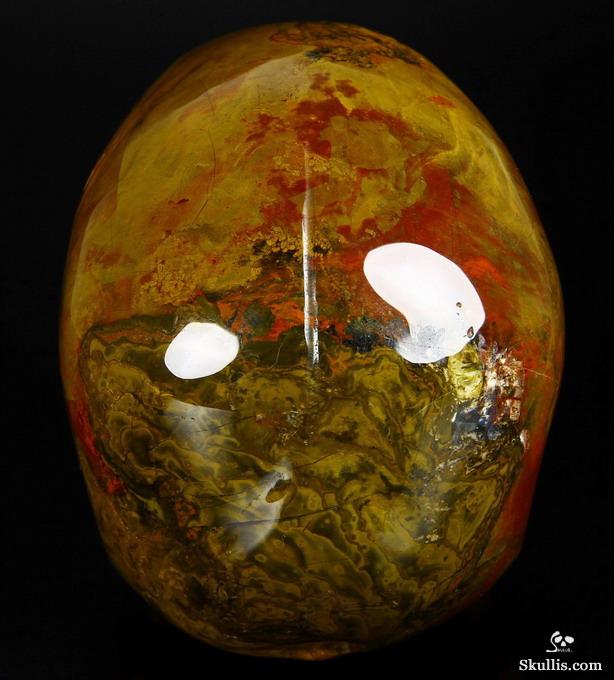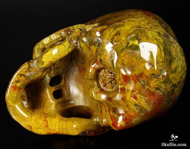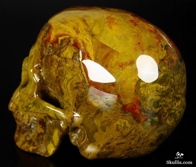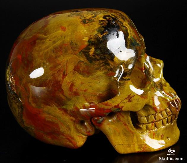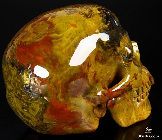 5.1" Colorful Petrified Wood Hand Carved Crystal Skull and Scorpion Fine Art Sculpture, Crystal Healing