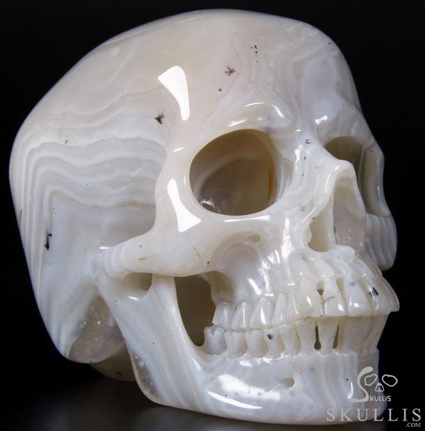 HUGE 5.1" Grey Agate Carved Crystal Skull, Super Realistic