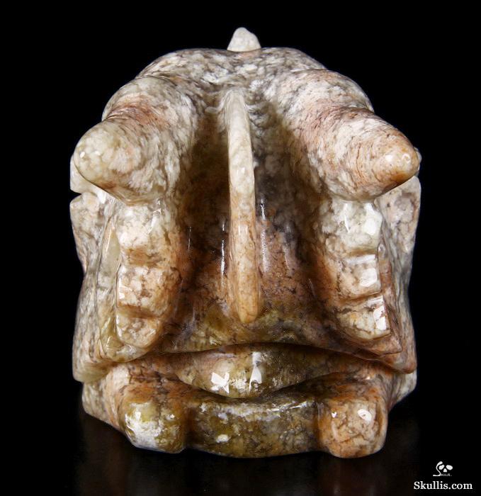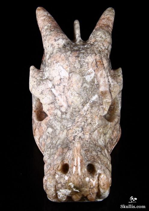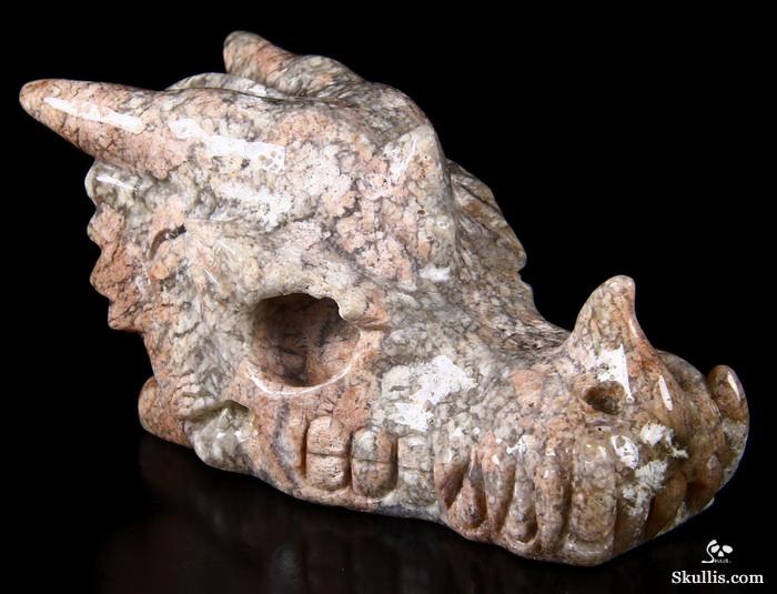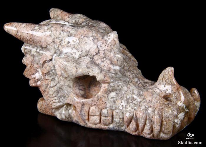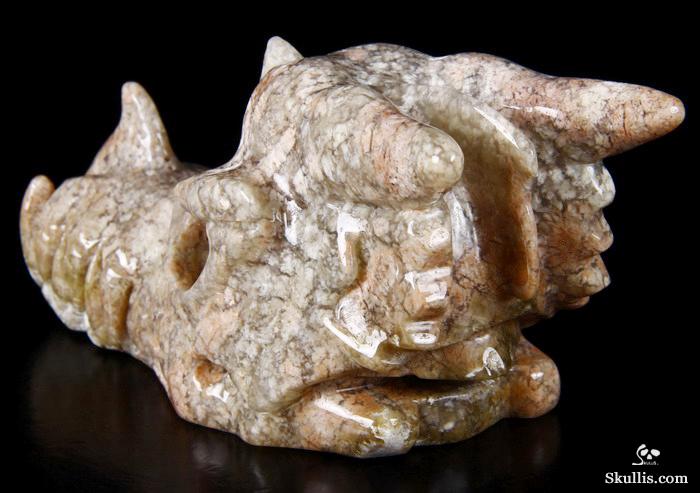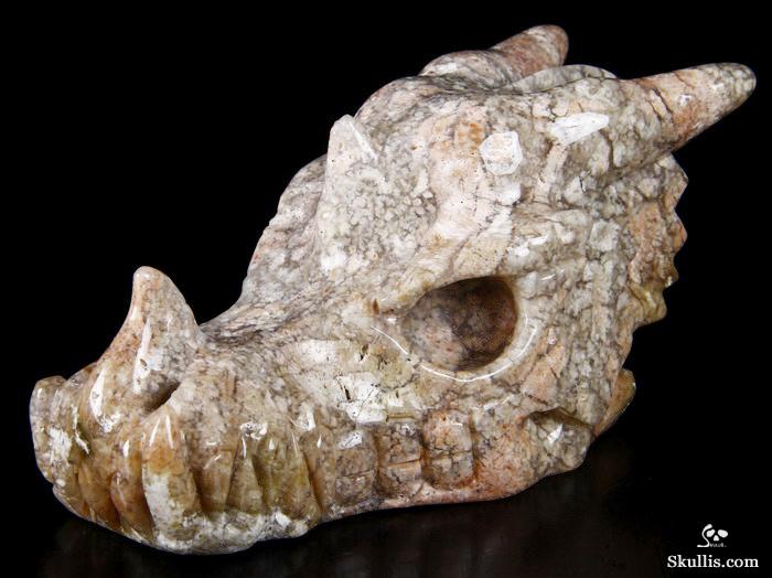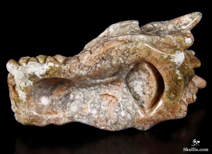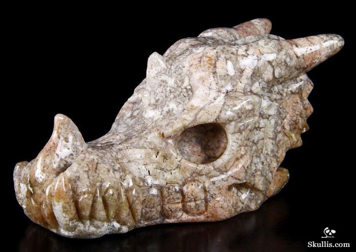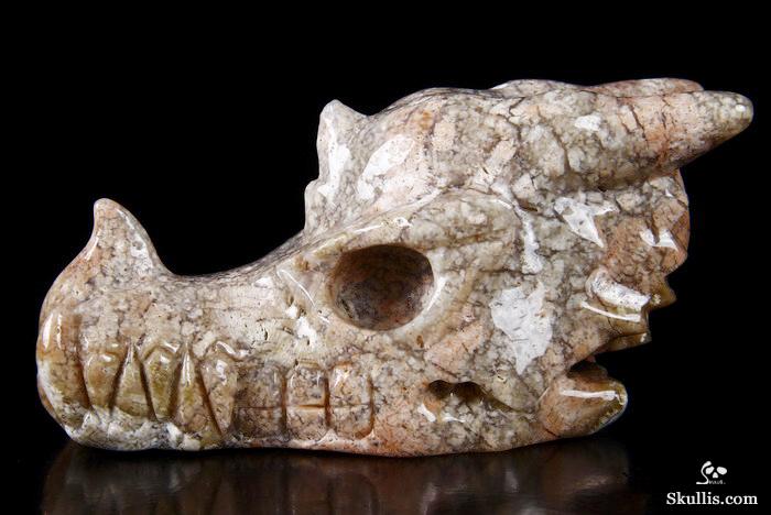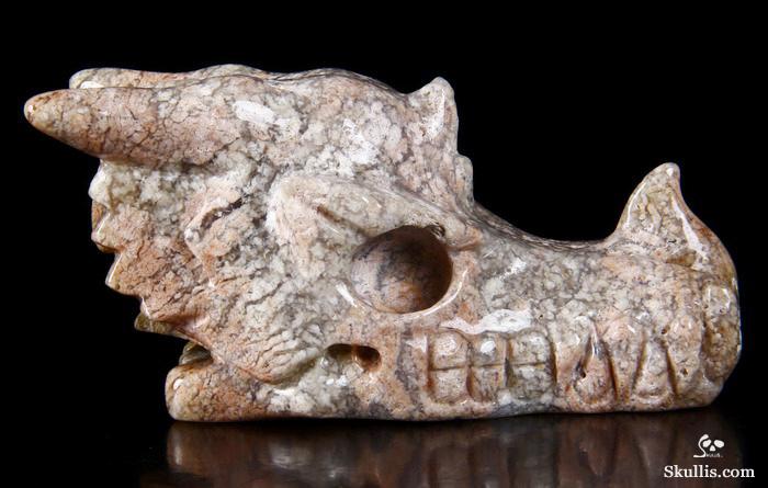 7.0" Australian Print Stone Hand Carved Crystal Dragon Skull Sculpture, Crystal Healing