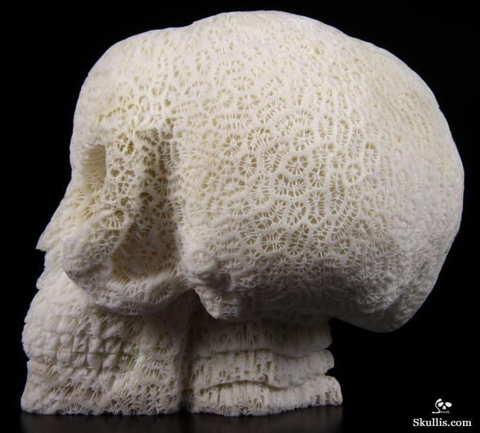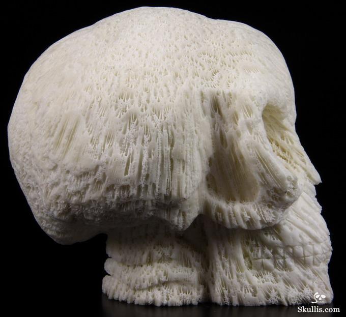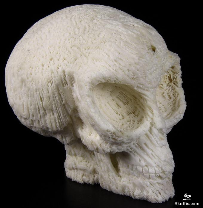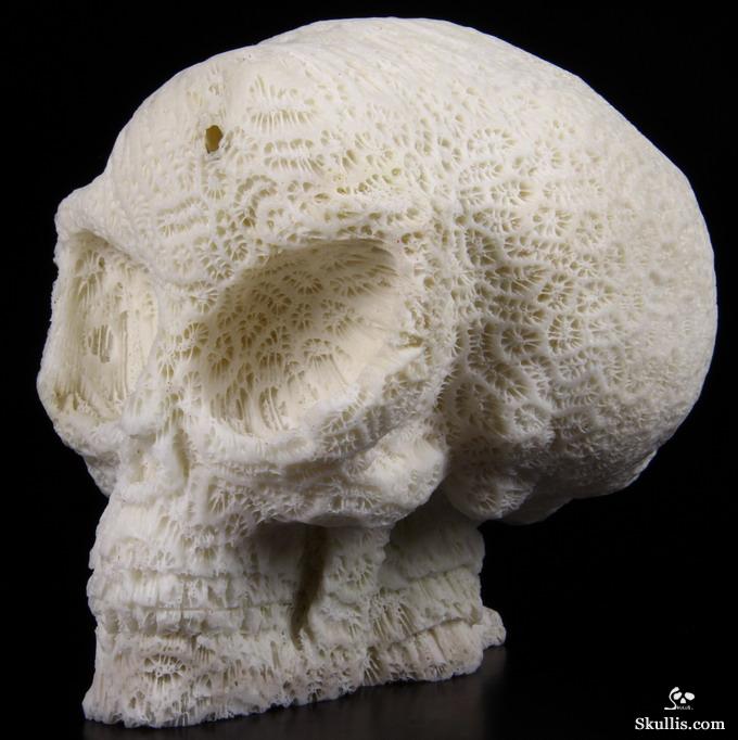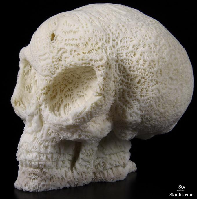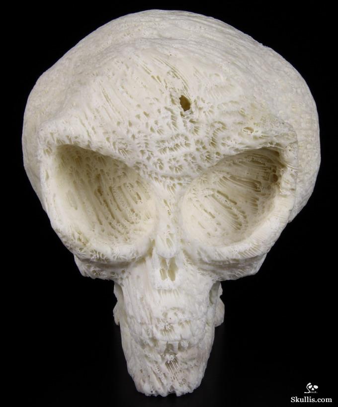 Amazing Huge 6.1" White Coral Carved Crystal Skull, Realistic