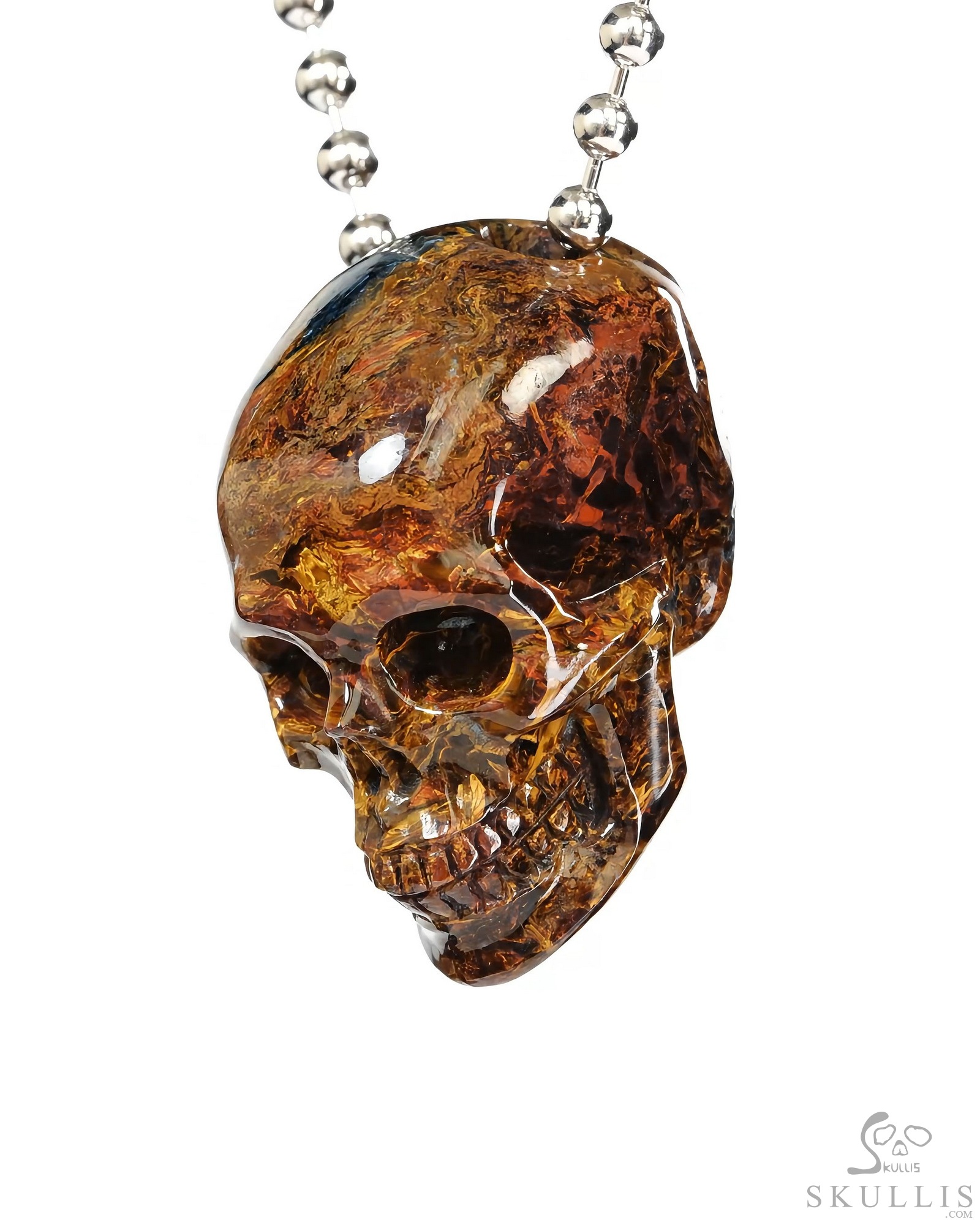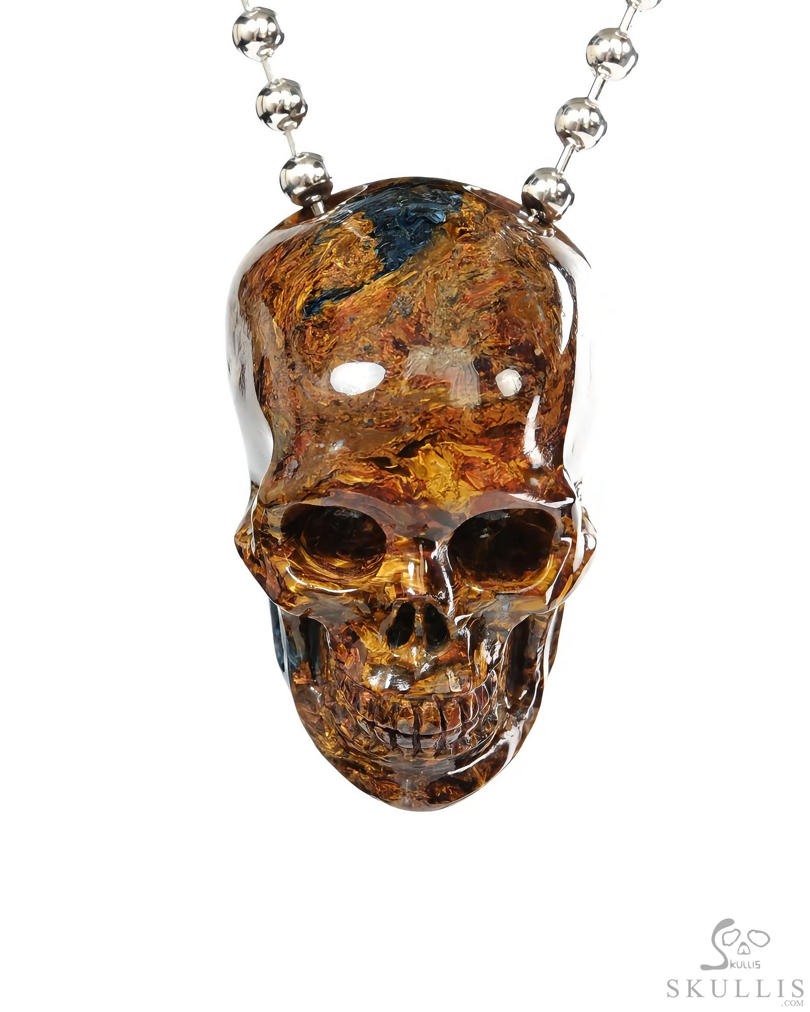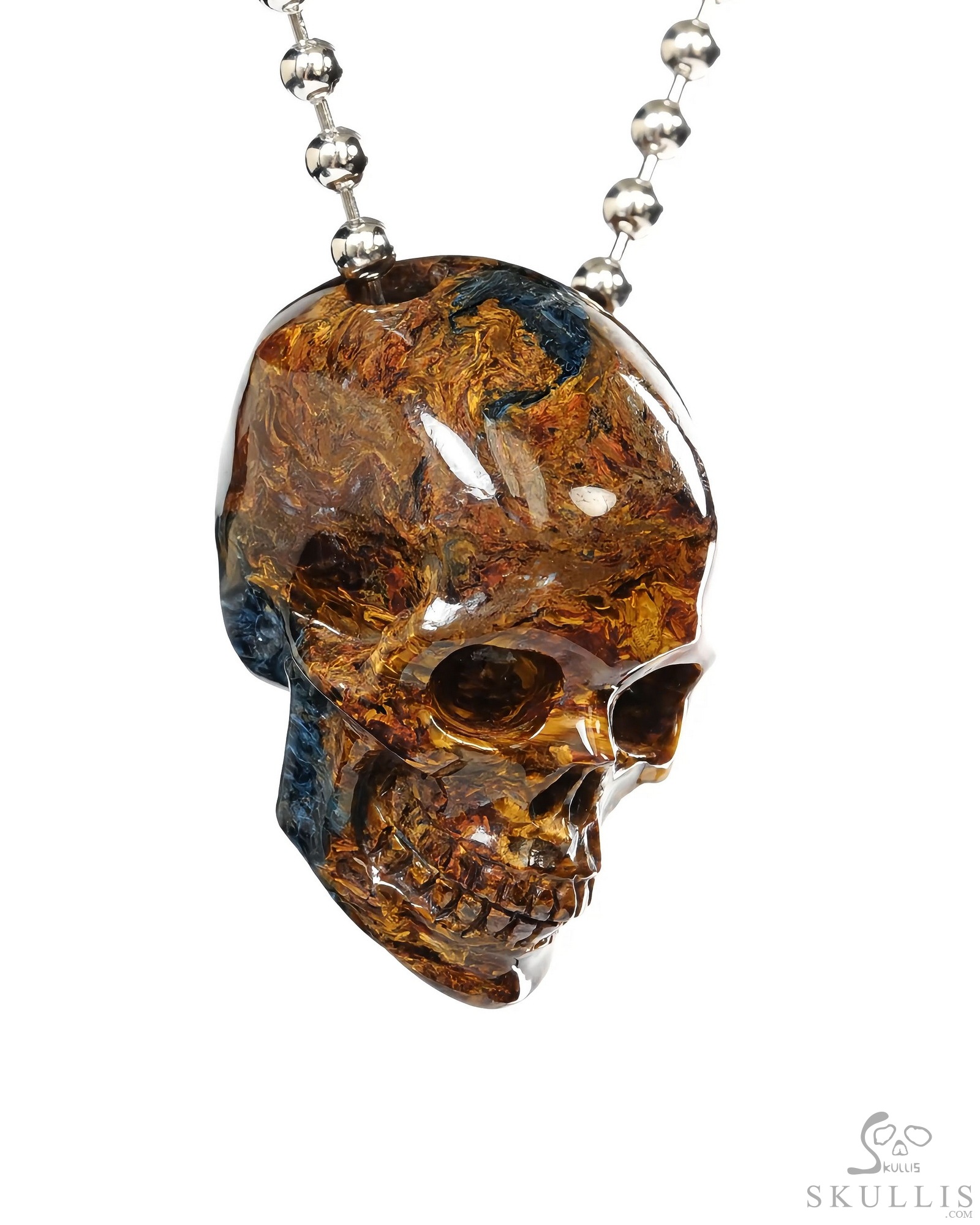 Necklace of 0.9" Pietersite Hand Carved Crystal Skull Pendant, Skull Jewelry