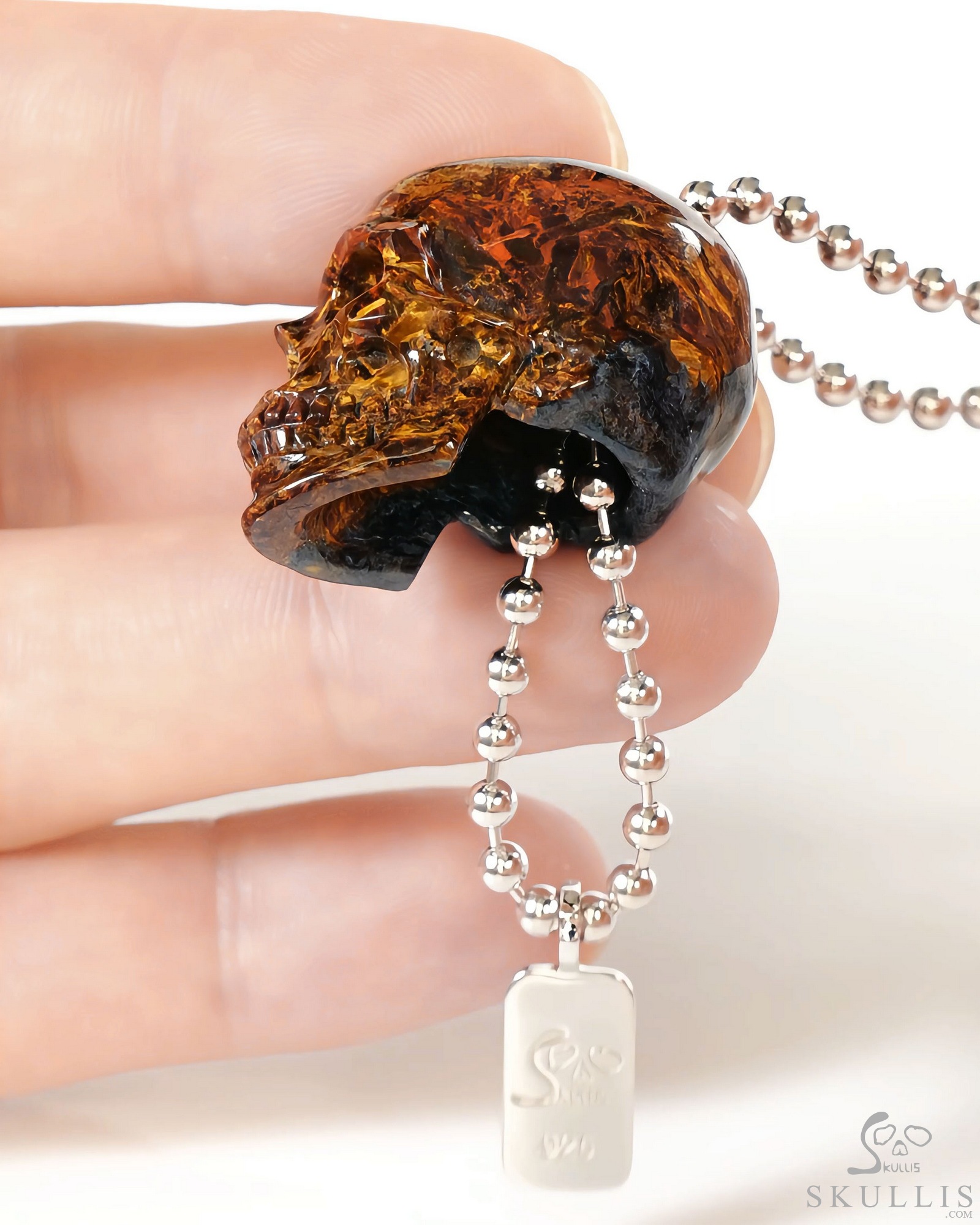 Hollow Essence - 1.2" Pietersite Hand Carved Hollow Crystal Skull Pendant, Skull Jewelry