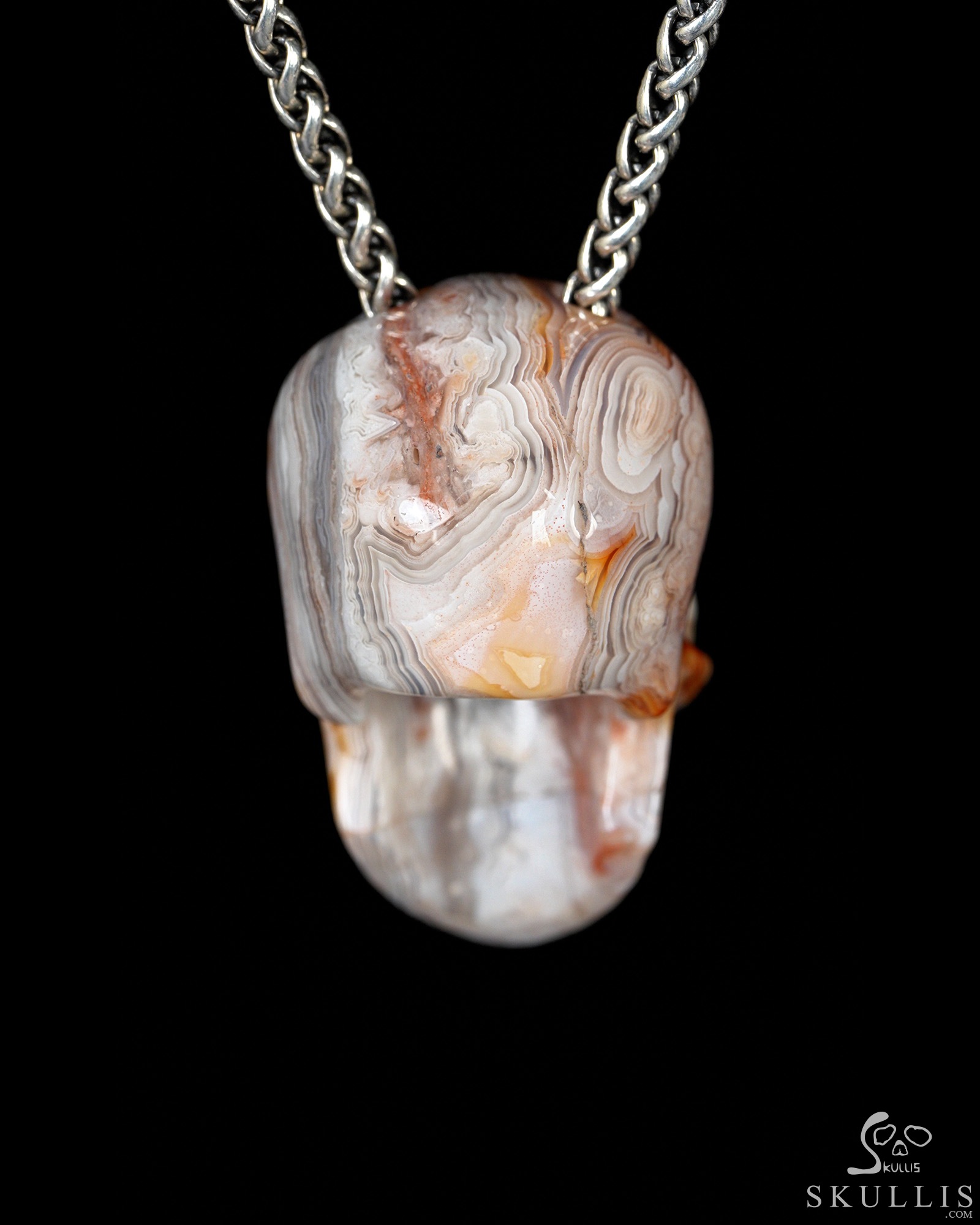 You are looking at a Red Crazy Lace Agate skull. The skull is 1.4 inches from front to back.