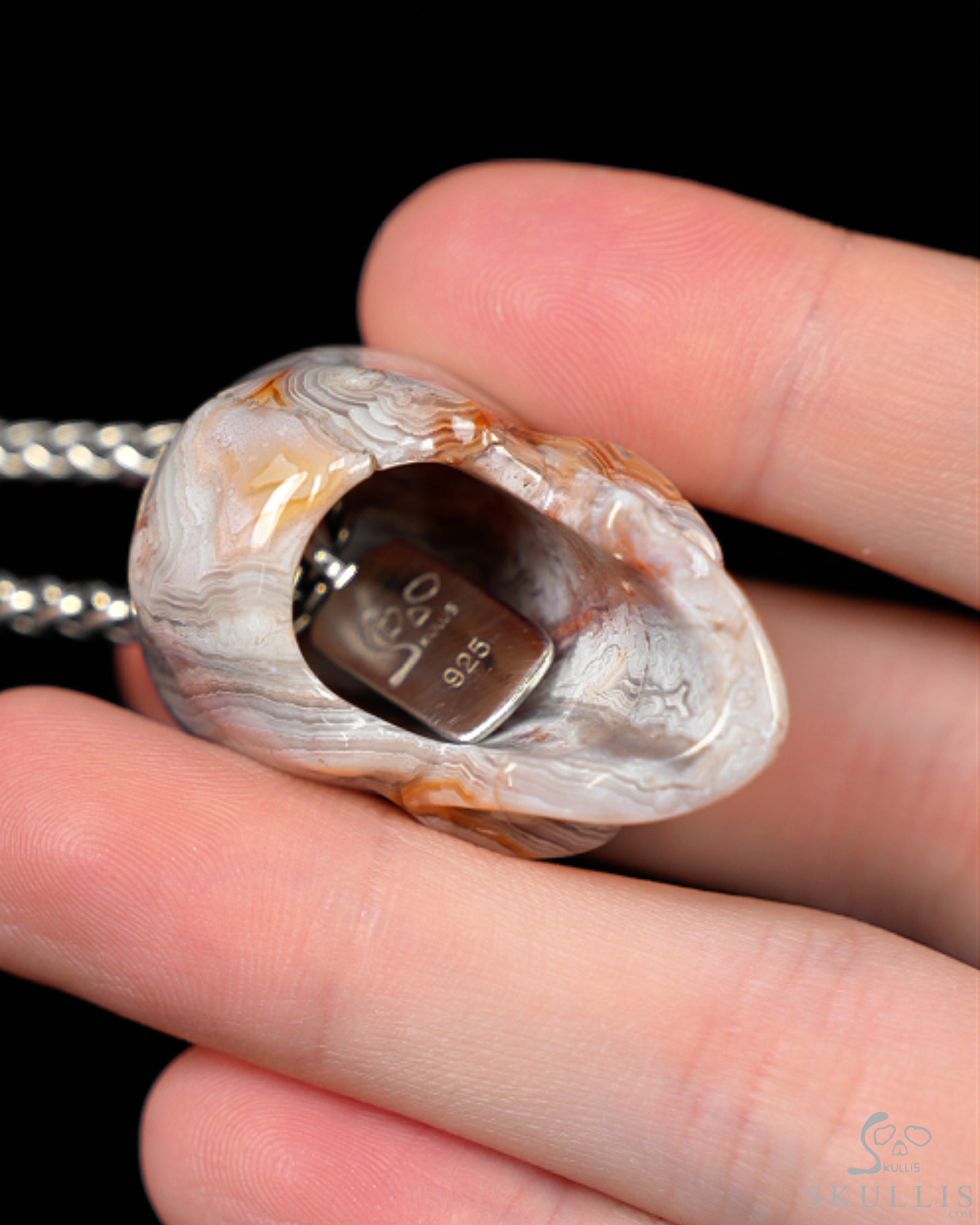 Hollow Essence - 1.4" Red Crazy Lace Agate Hand Carved Hollow Crystal Skull Pendant, Skull Jewelry