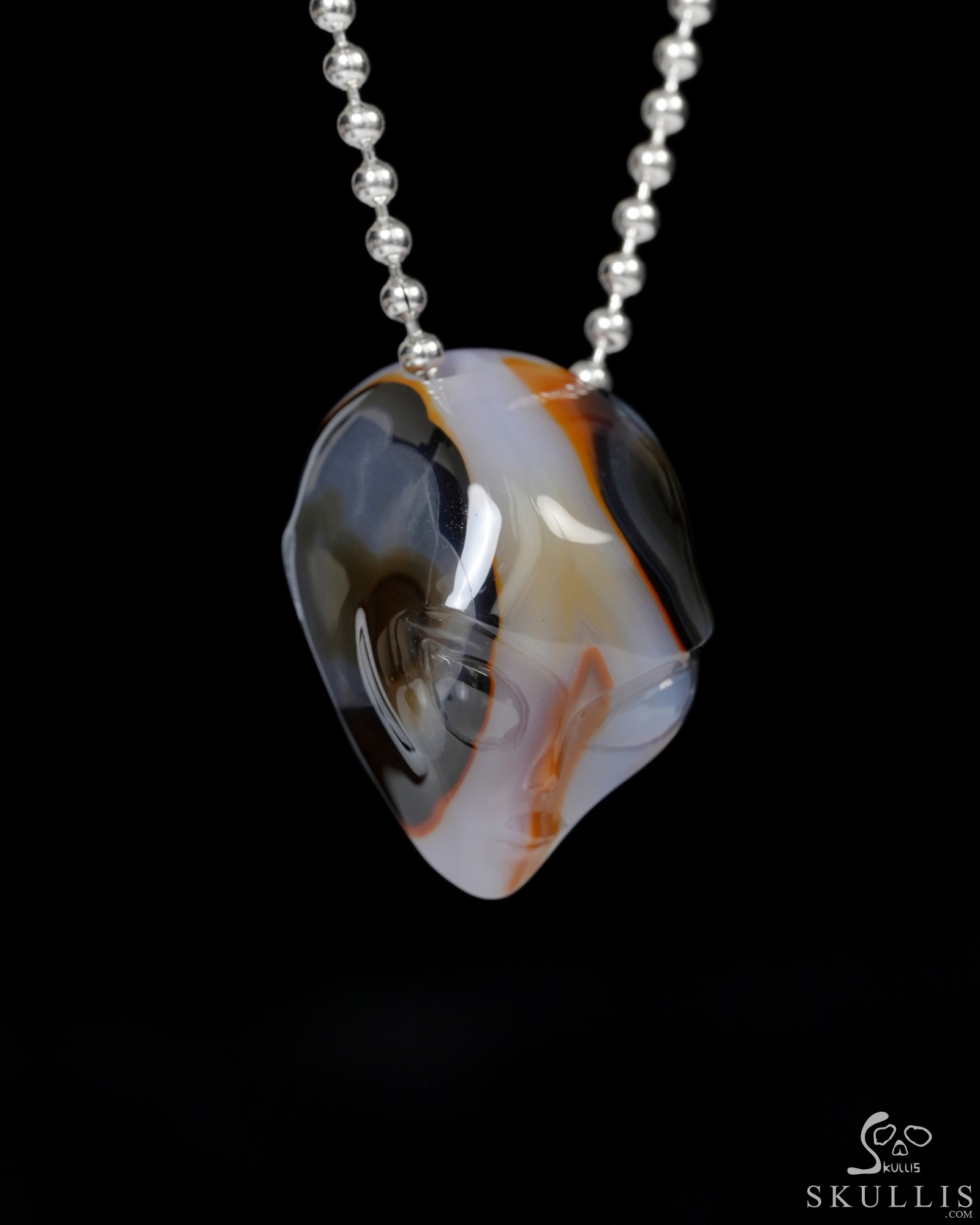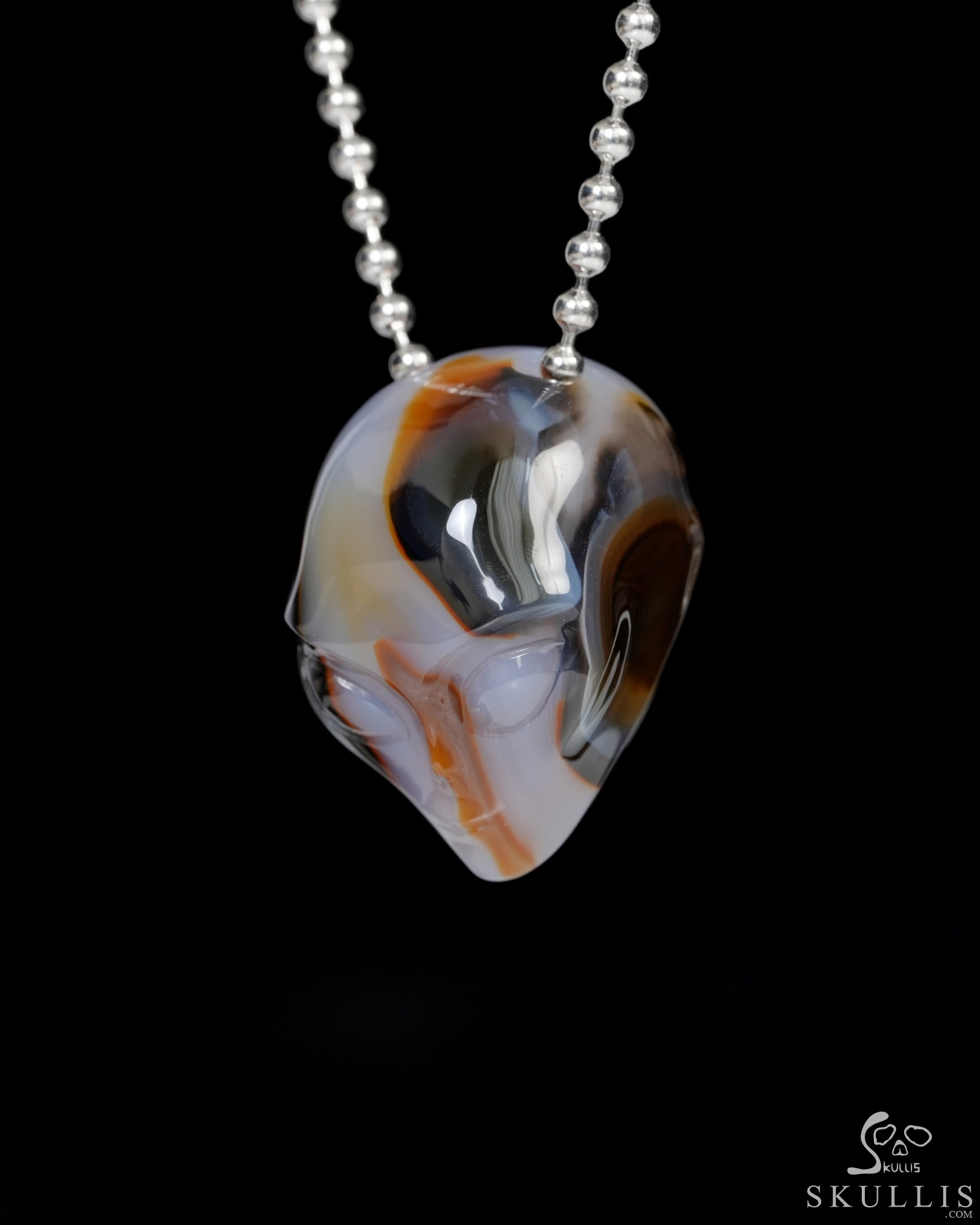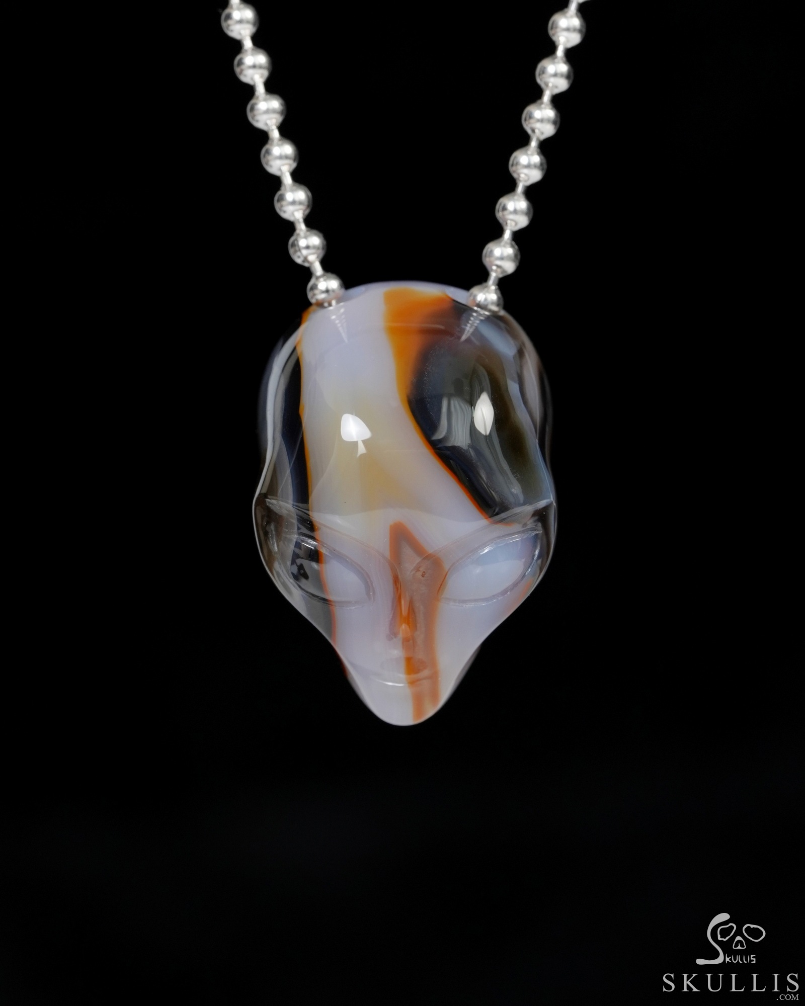 Hollow Essence - Necklace of 1.3" Agate Hand Carved Crystal Alien Pendant, Skull Jewelry