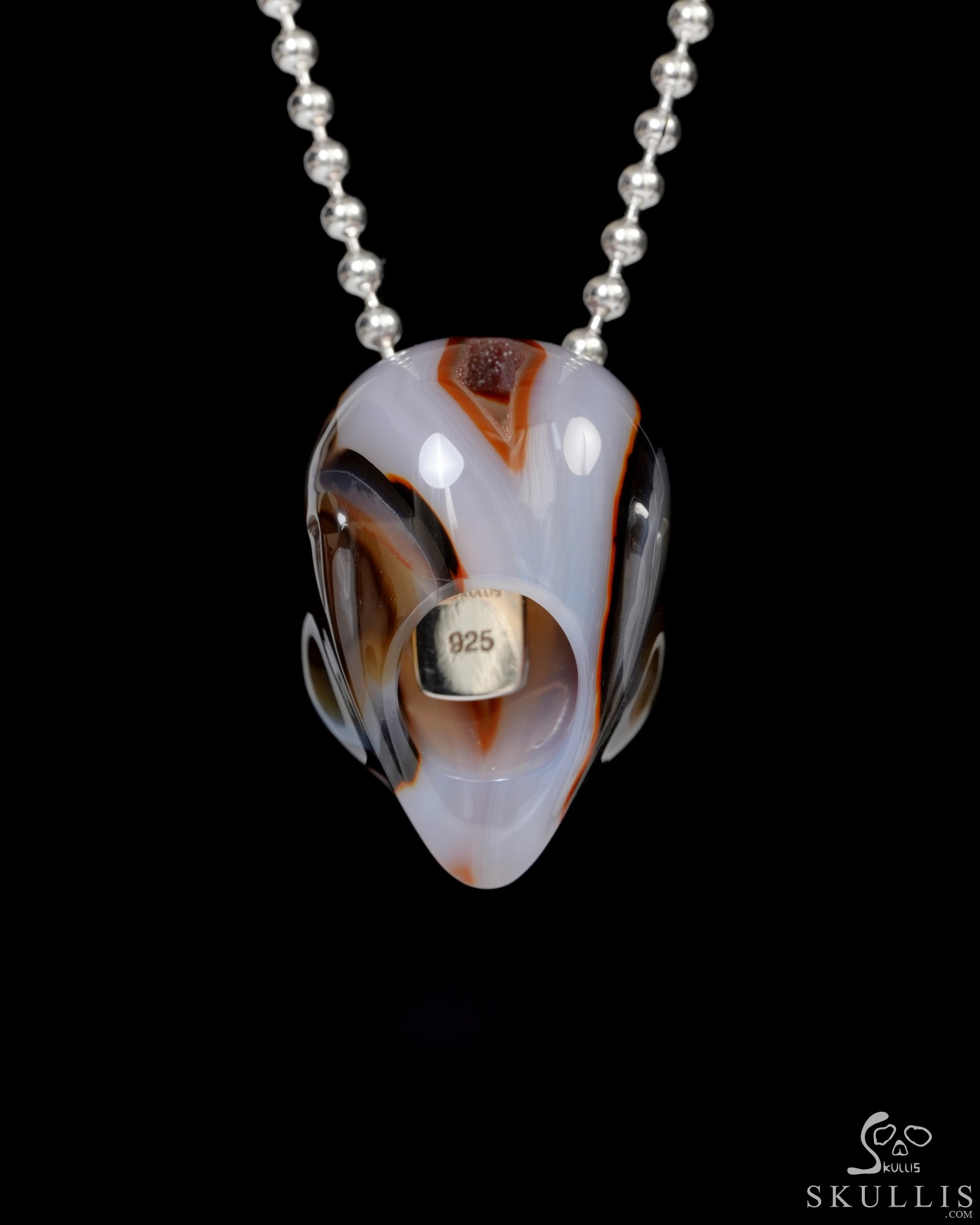 1.3" Agate Carved Crystal Skull Pendant with 925 Sterling Silver Chain,Realistic, Crystal Healing