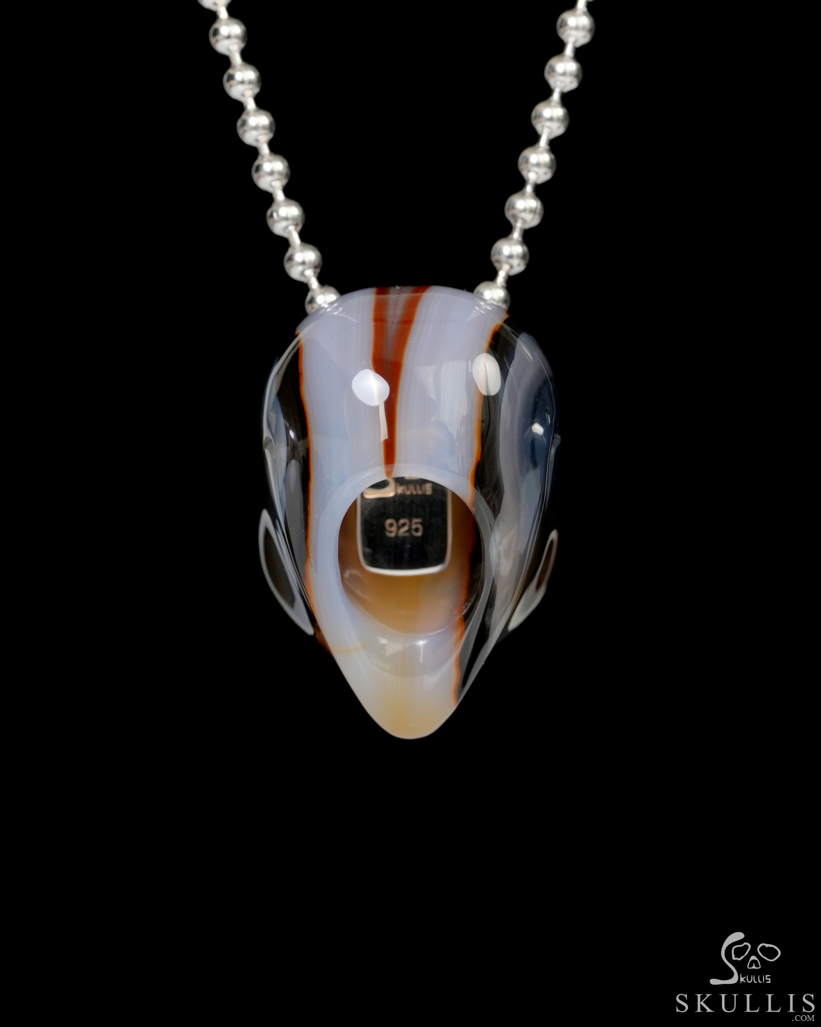 You are looking at a Agate skull. The skull is 1.3 inches from front to back.