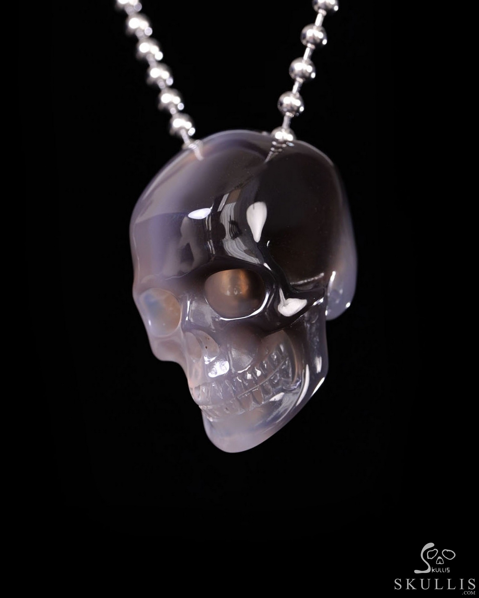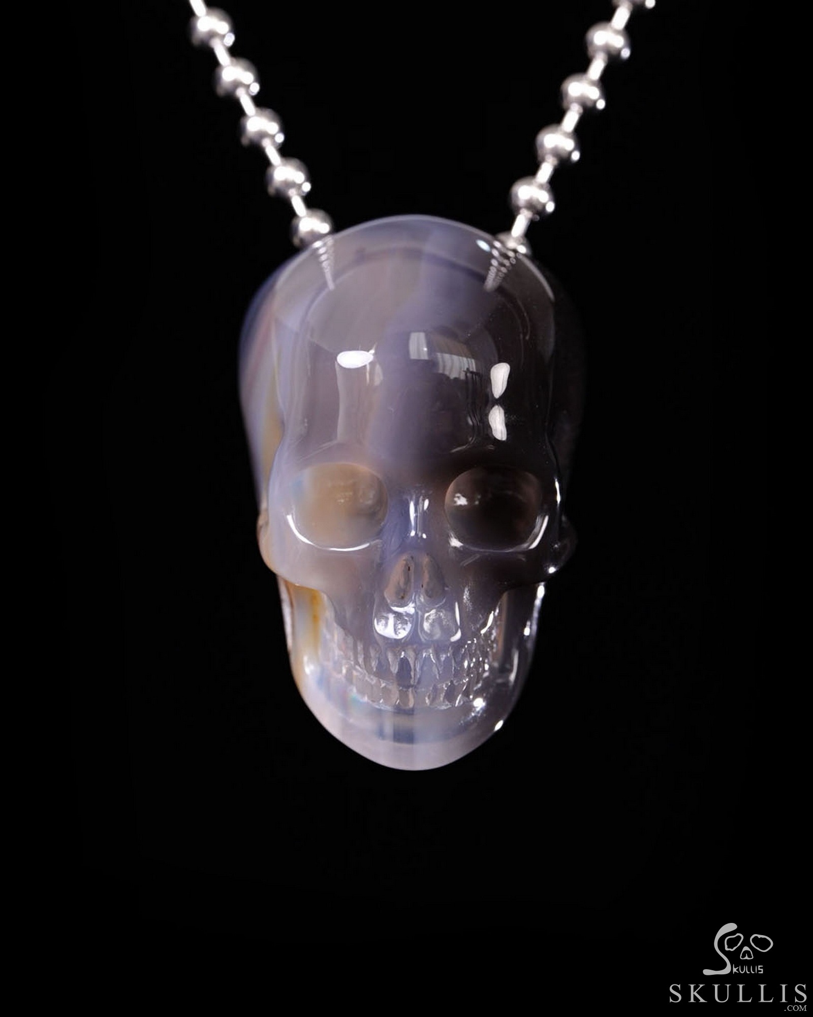 Hollow Essence - Necklace of 1.4" Agate Hand Carved Crystal Skull Pendant, Skull Jewelry