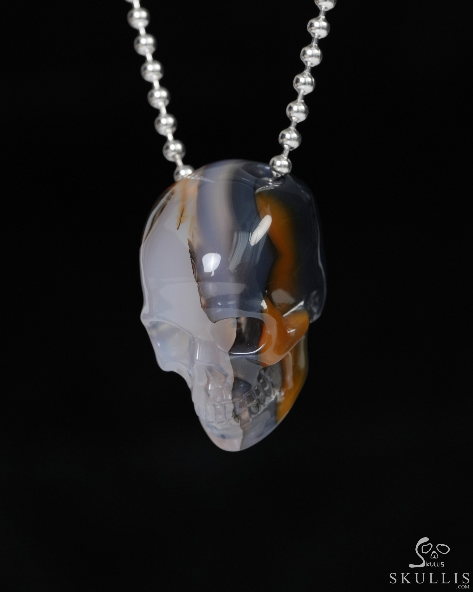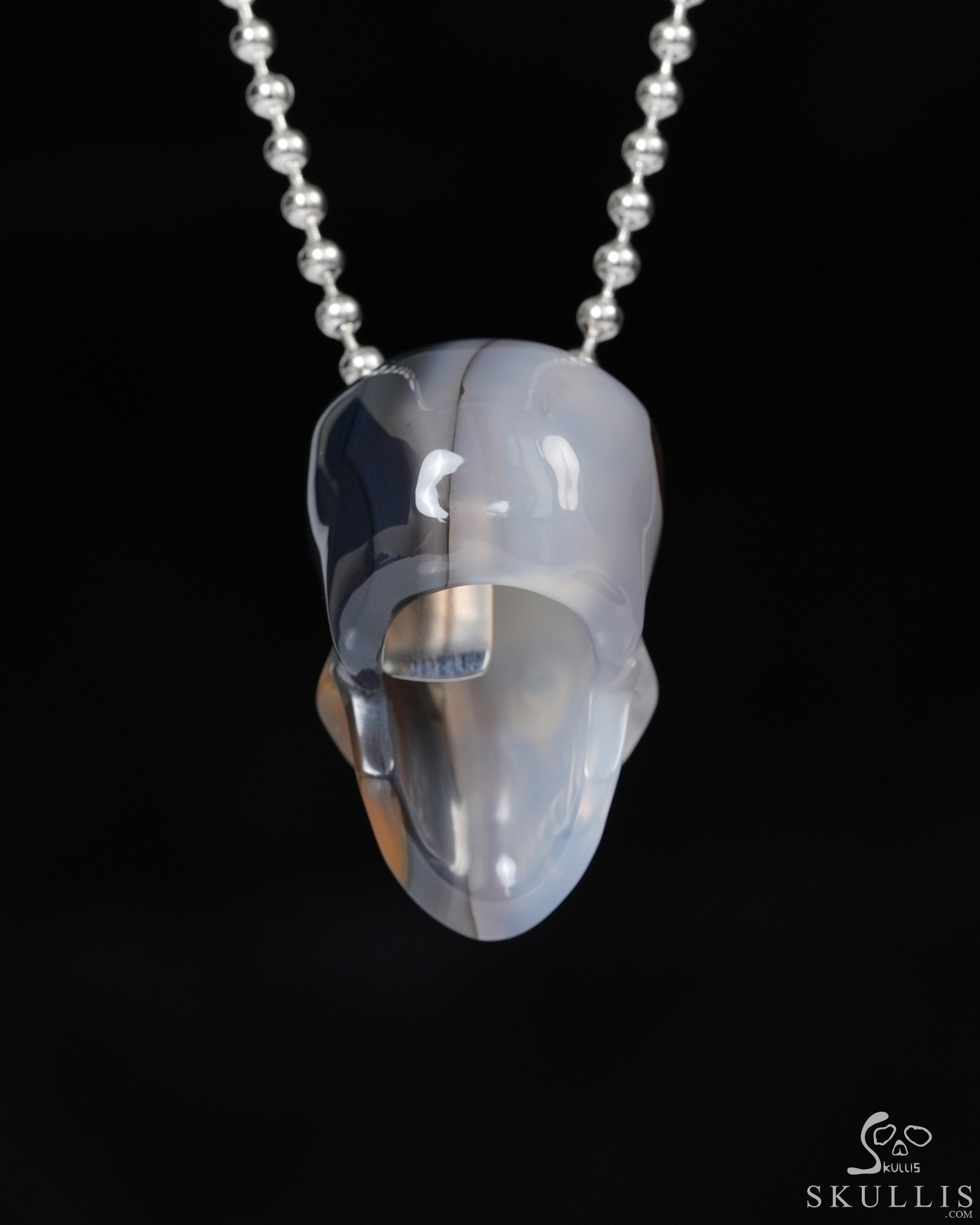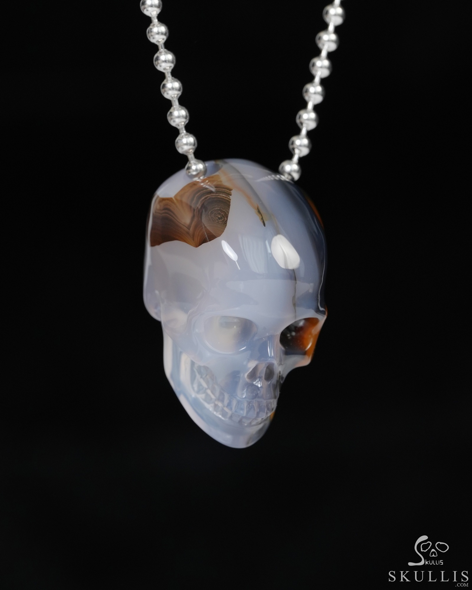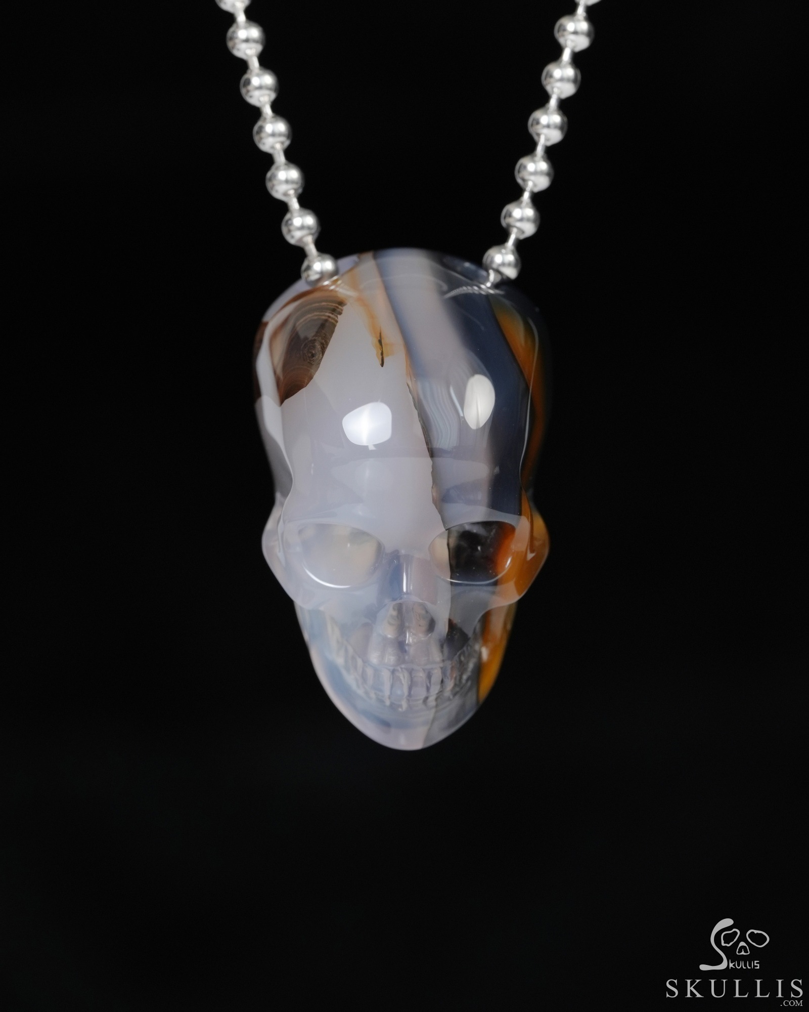1.1" Agate Carved Crystal Skull Pendant With 925 Sterling Silver Chain, Crystal Healing