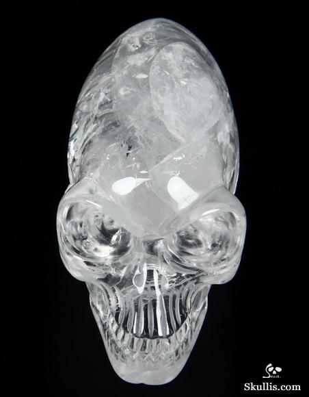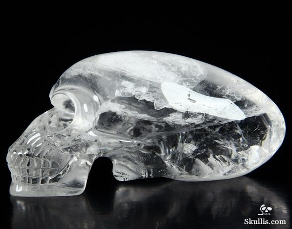Huge 3.9" Quartz Rock Crystal Carved Elongated Mayan Alien Crystal Skull