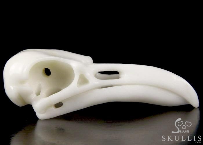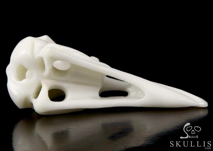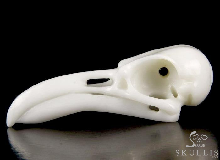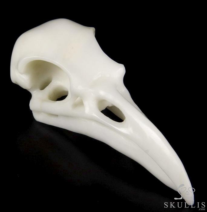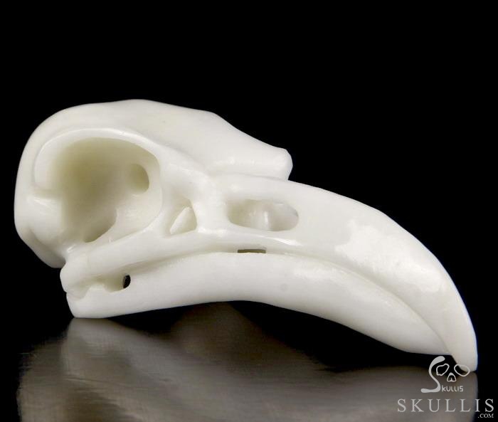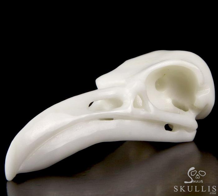 New 8.8" White Jade Carved Crystal Raven Skull With Double Skull in Eyes, Crystal Healing