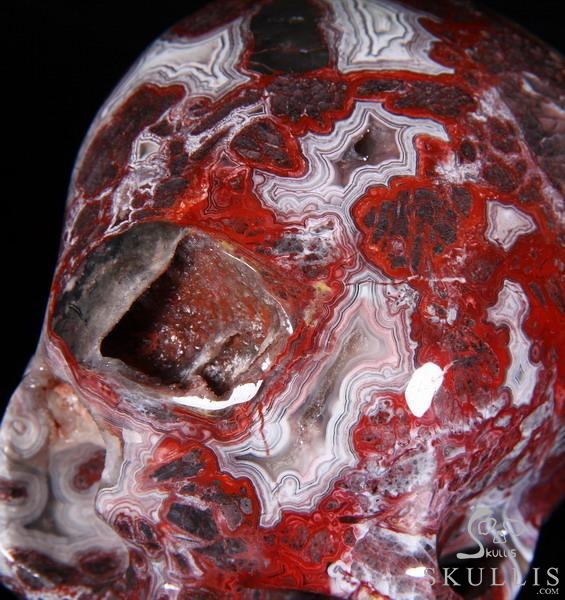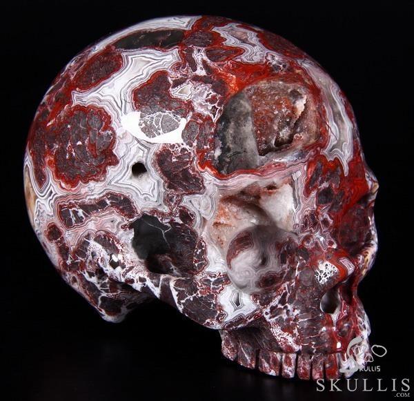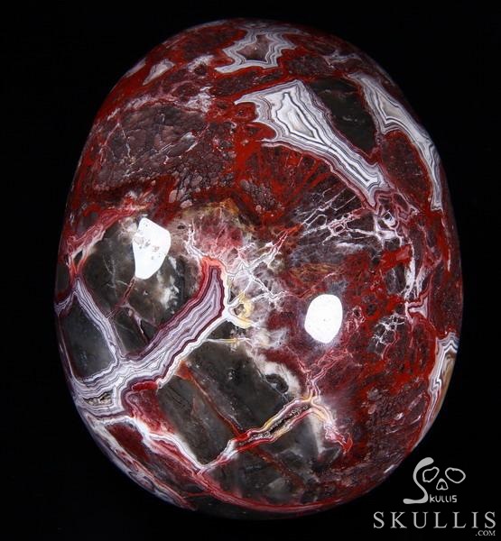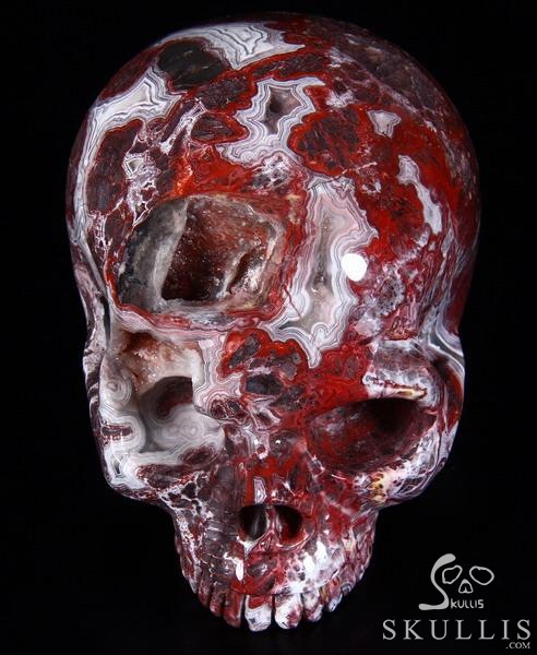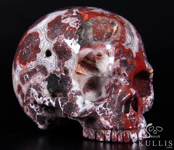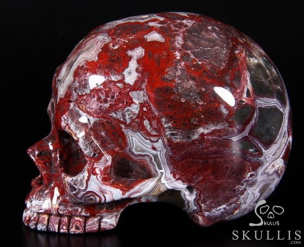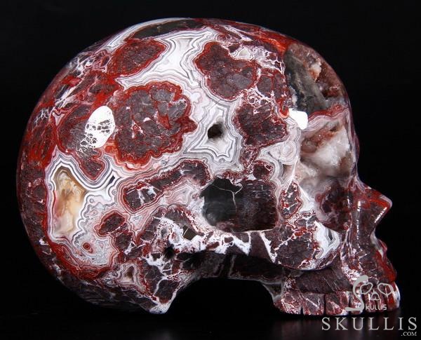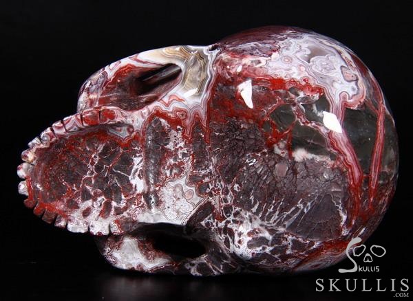 7.1" Red Crazy Lace Agate Carved Crystal Skull & OX Crystal Healing