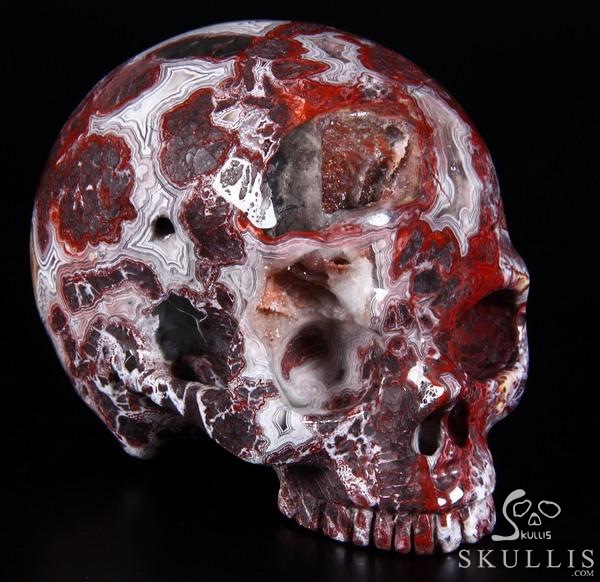 Gemstone 5.1" Red Crazy Lace Agate Hand Carved Crystal Skull, Super Realistic, Crystal Healing