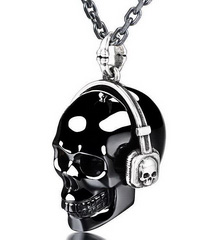 Necklace of 1.2" Black Obsidian Hand Carved Crystal Skull Pendant, Skull Jewelry
