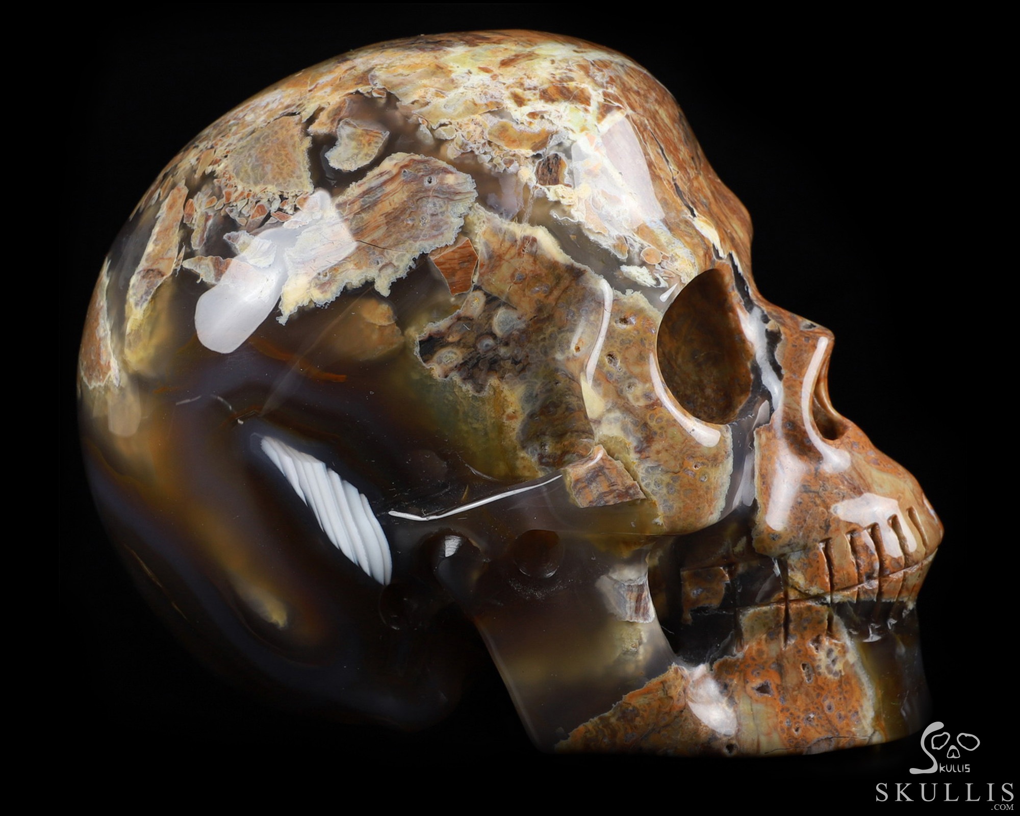 Lifesized 7.1" Dinosaur Egg Agate Carved Crystal Skull, Super Realistic