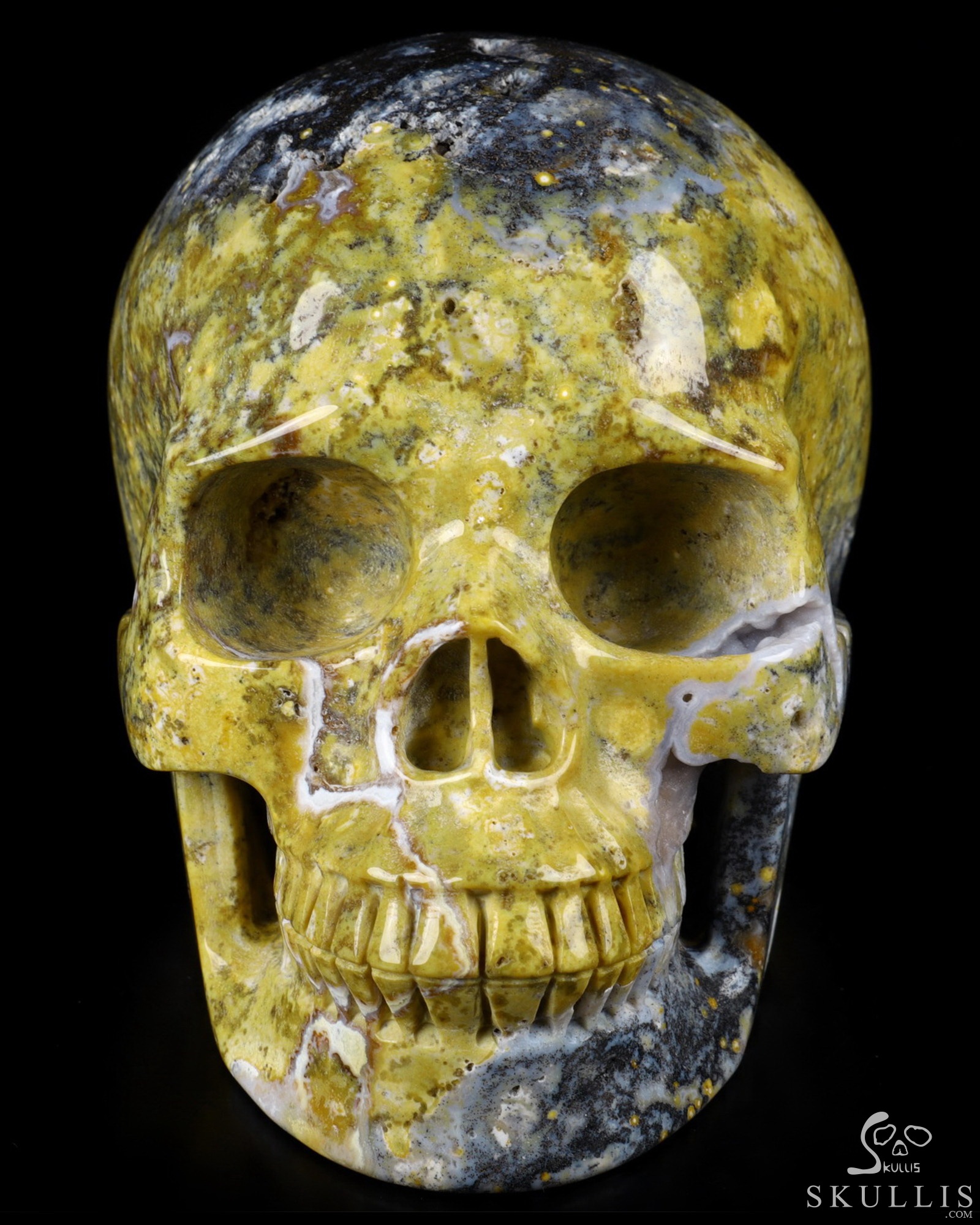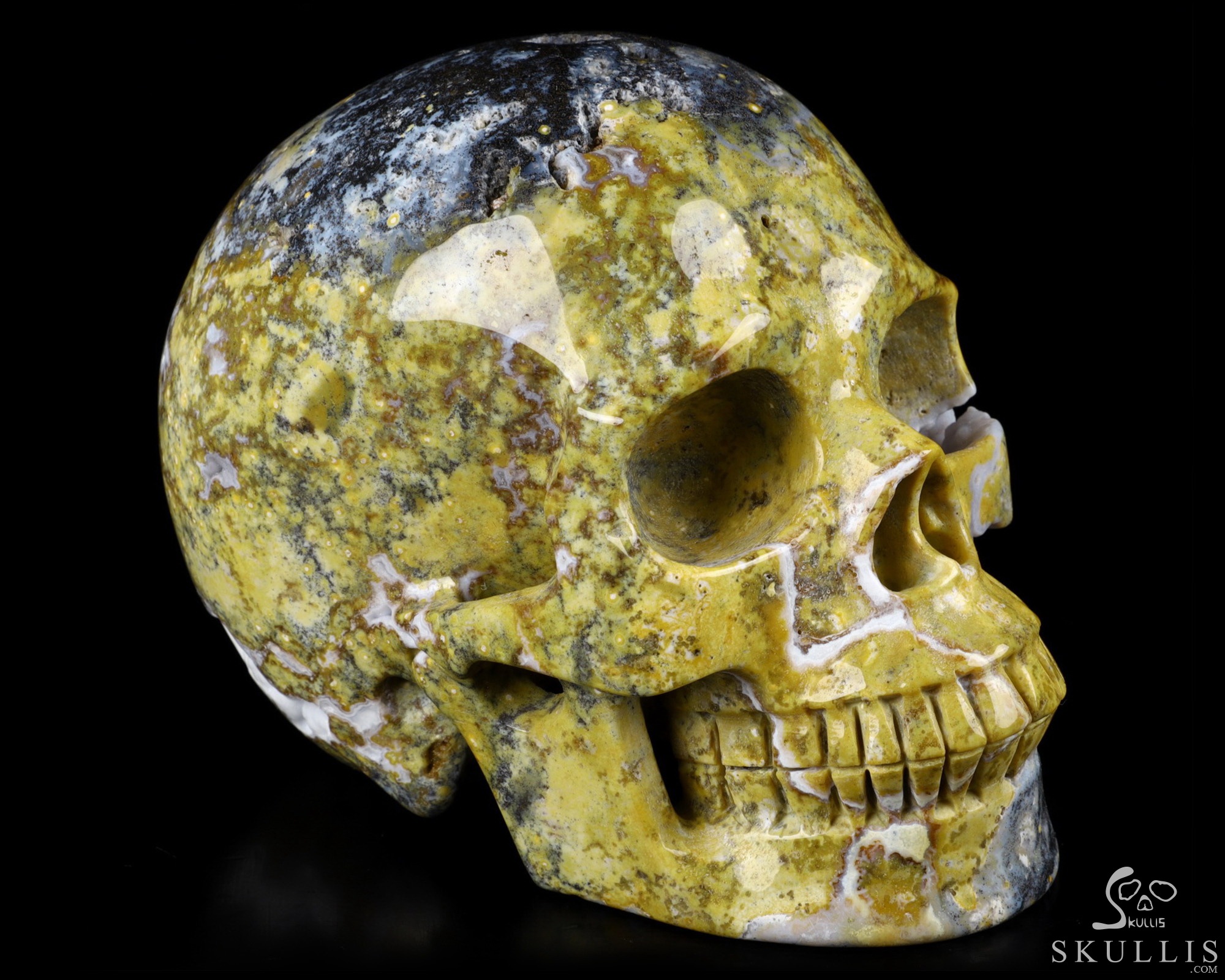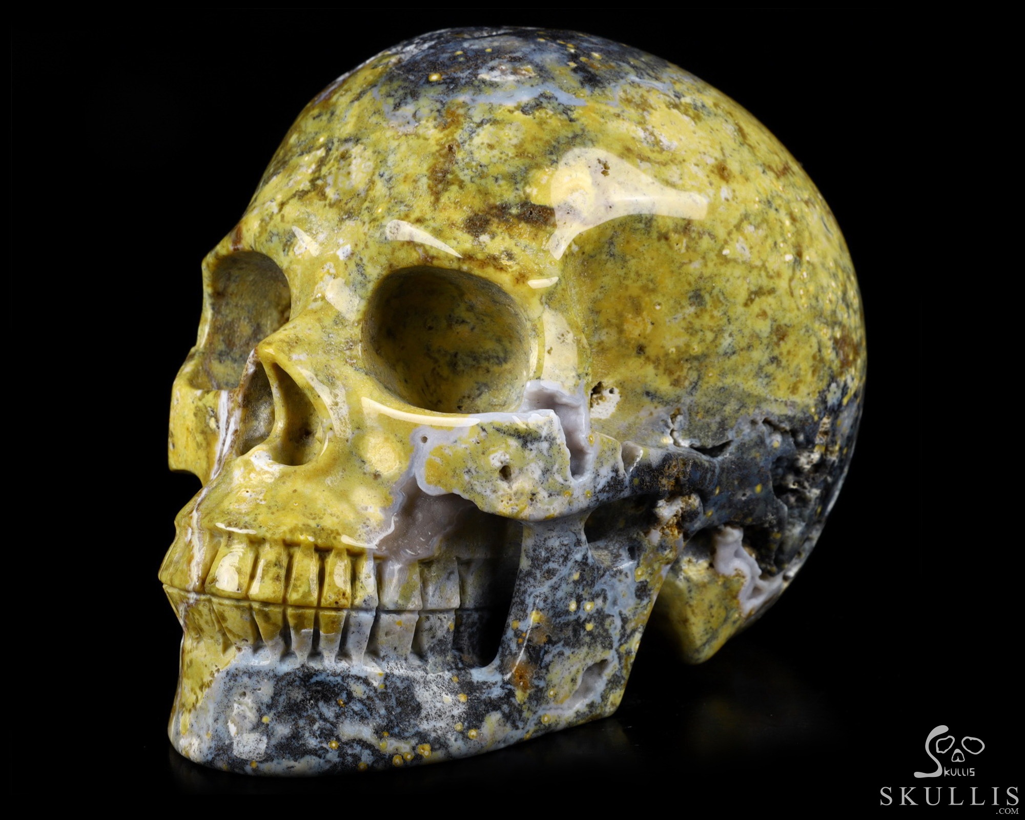 5.0" Yellow Ocean Agate Carved Crystal Skull, Realistic, Crystal Healing