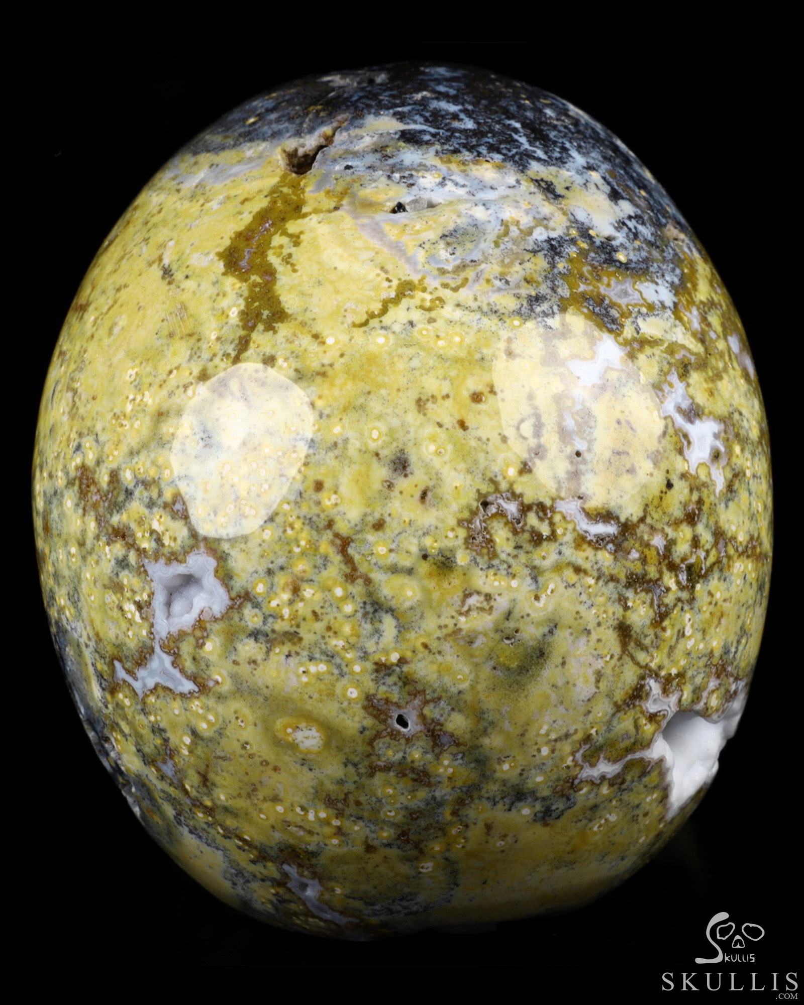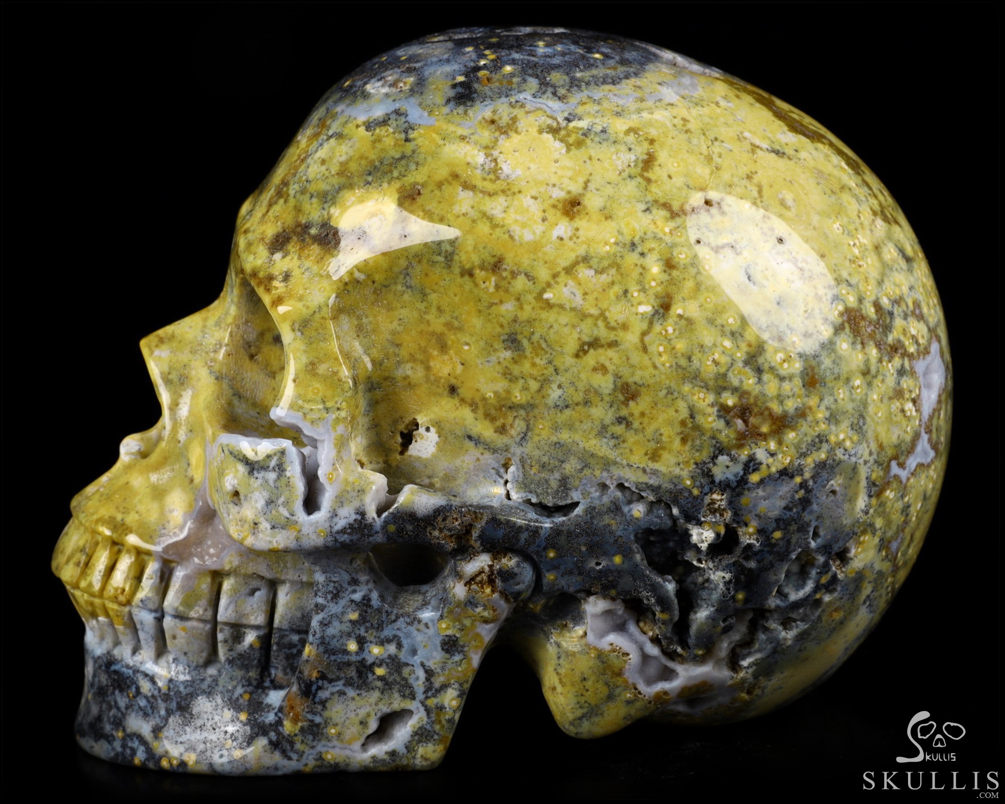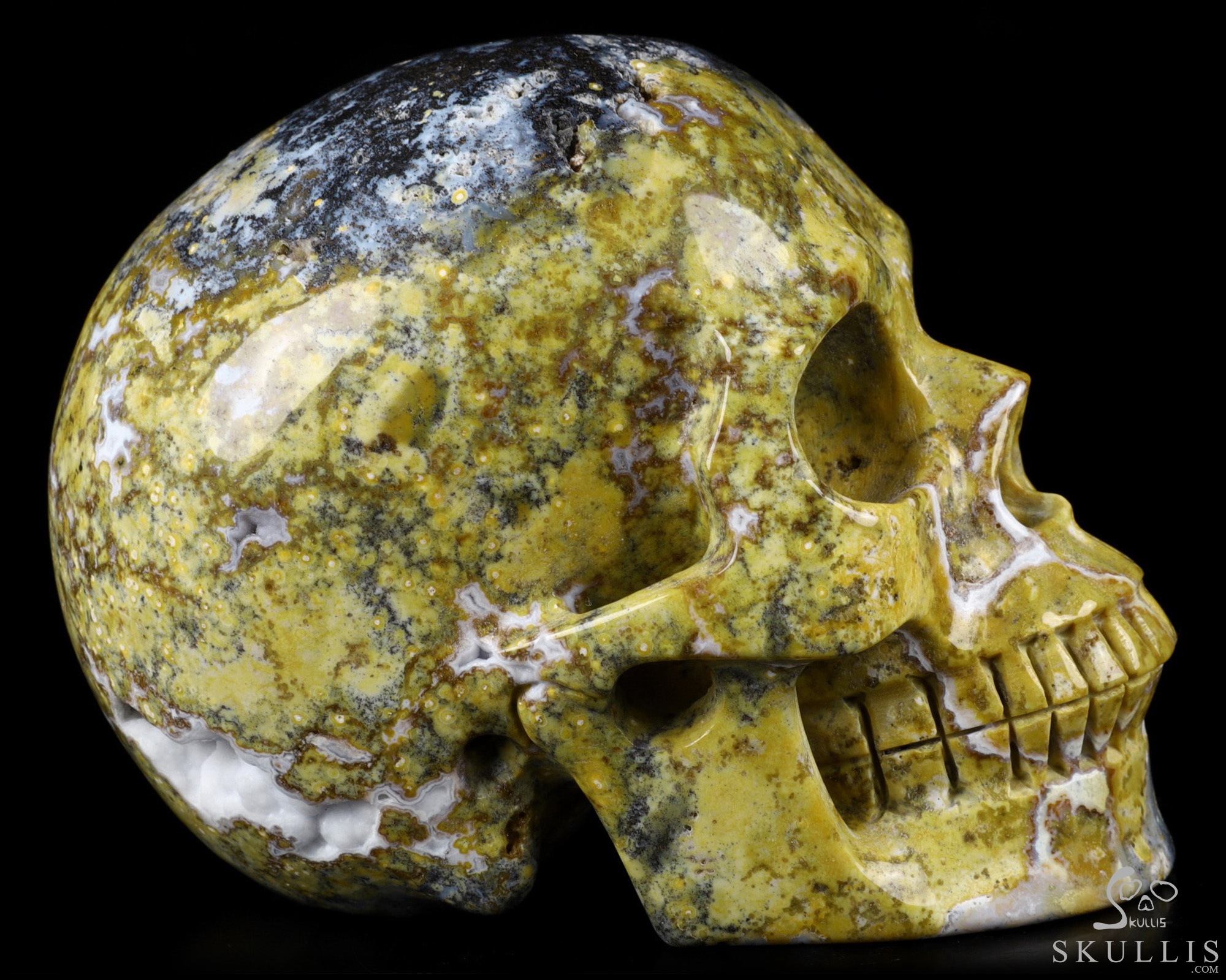 5.0" Yellow Ocean Agate Carved Crystal Skull, Realistic, Crystal Healing
