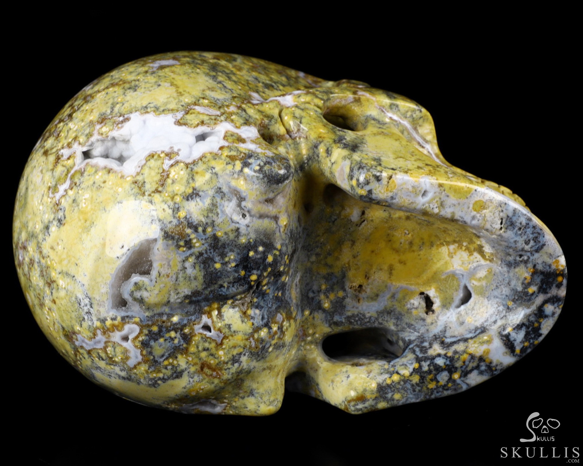 Huge 5.1" Yellow Ocean Agate Carved Crystal Skull,Realistic, Crystal Healing