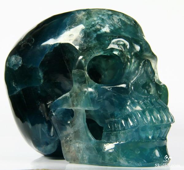 5.1" Fluorite Hand Carved Crystal Skull, Super Realistic, Crystal Healing