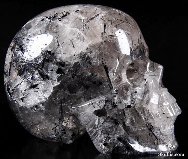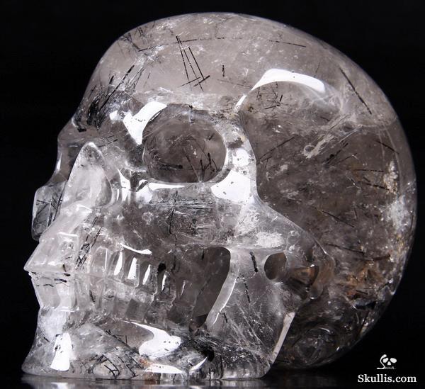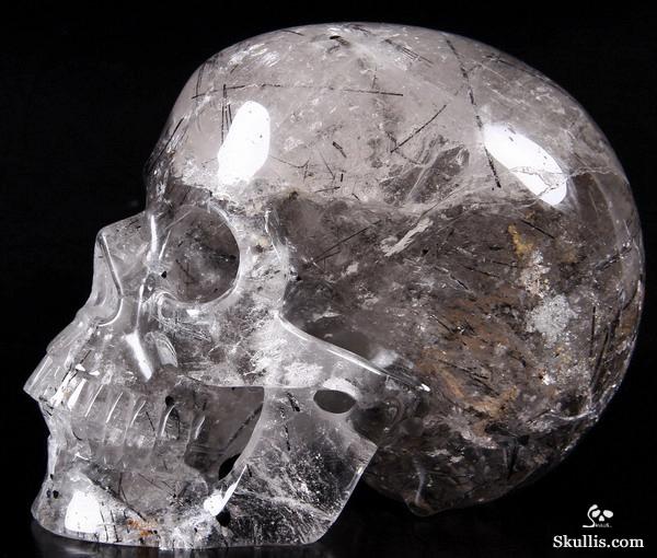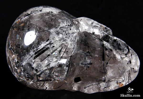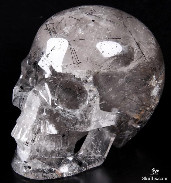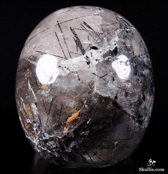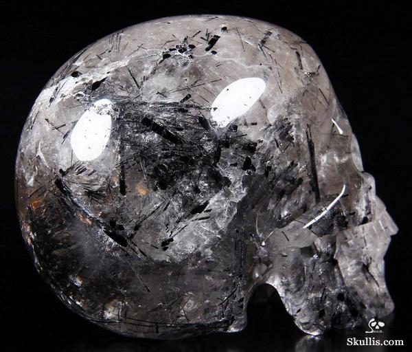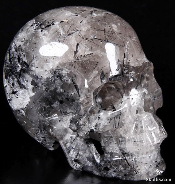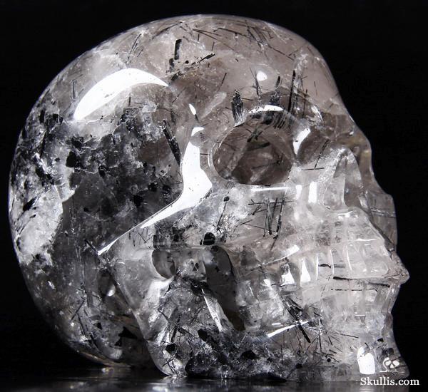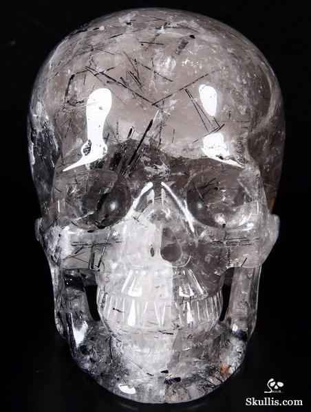 Nice Mineral Huge 6.7" Tourmaline Quartz Carved Crystal Skull Sculpture