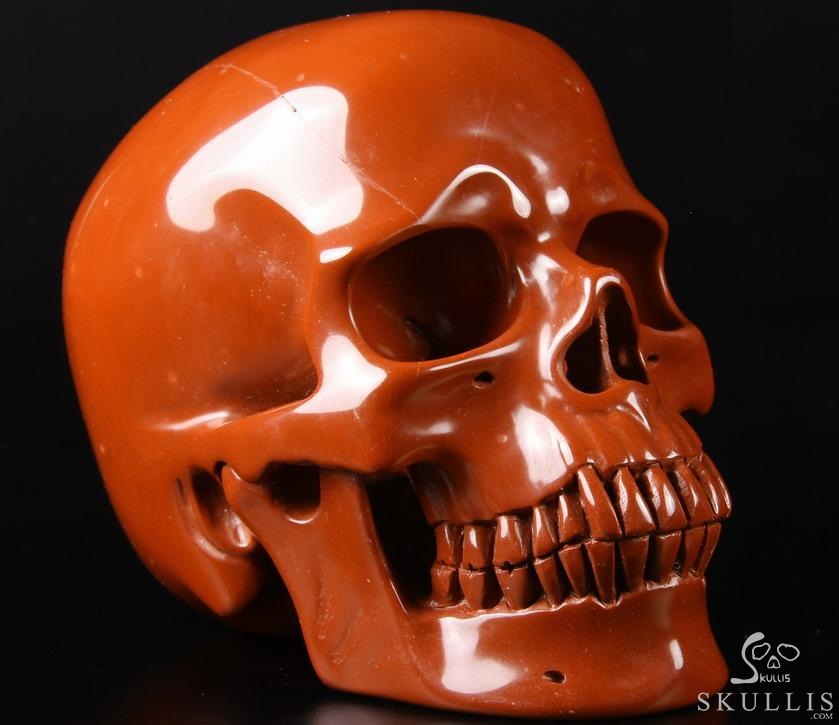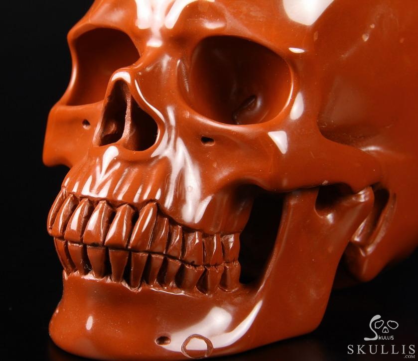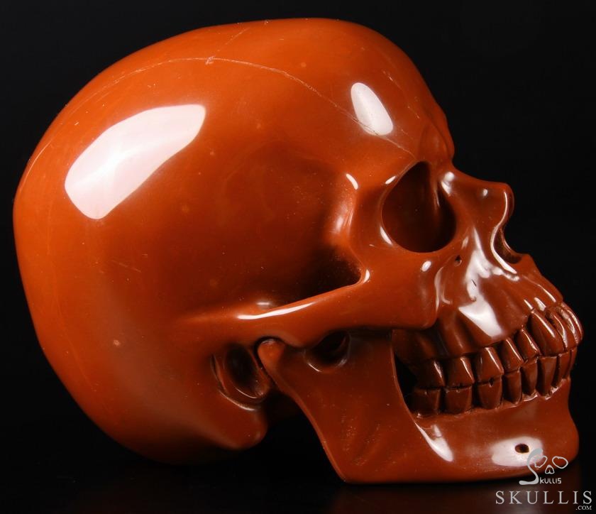 5.0" Red Jasper Hand Carved Crystal Skull Pot, Crystal Healing