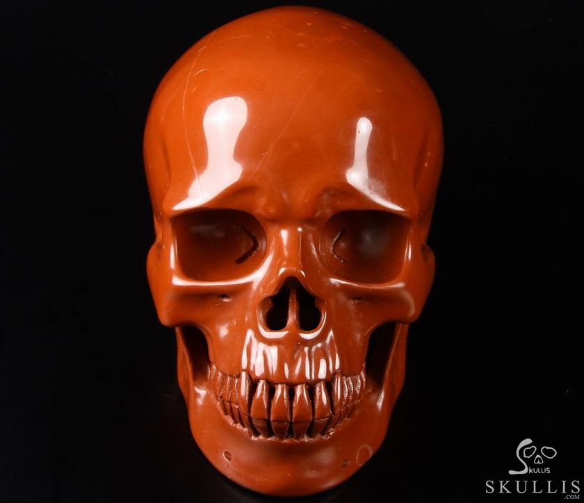 Huge 7.9" Red Jasper Carved Crystal Skull Doorknob