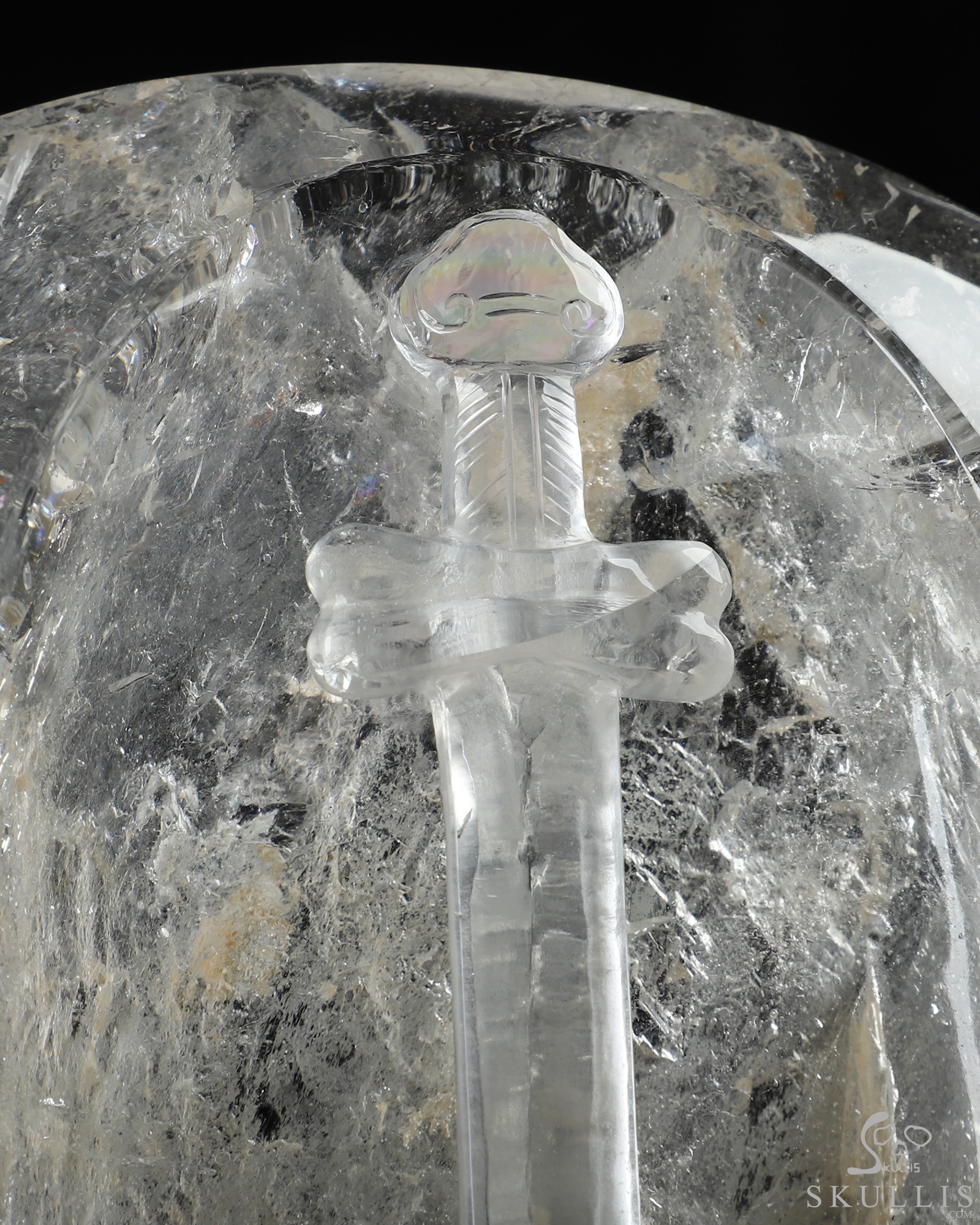 Huge 6.3" Quartz Rock Crystal Carved Crystal Skull Under Cross, Crystal Healing