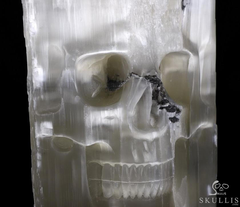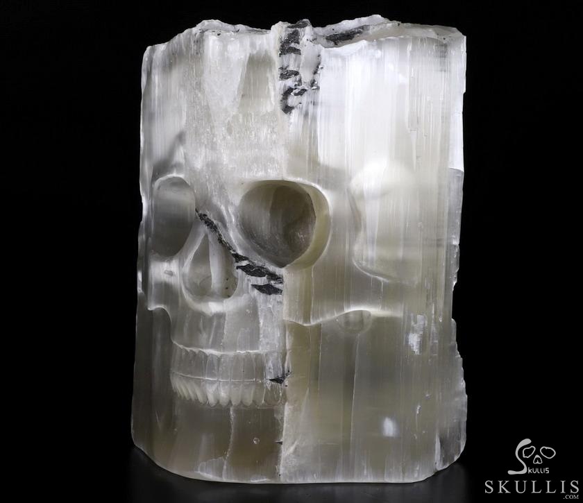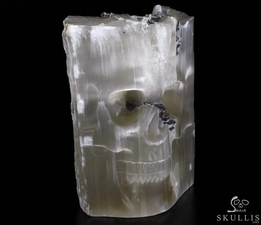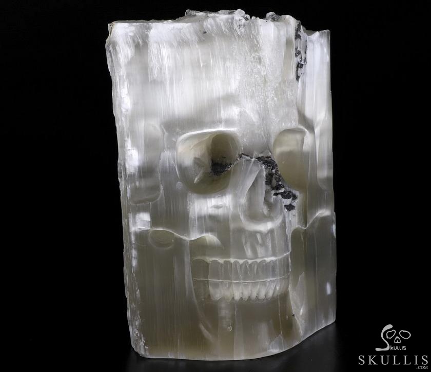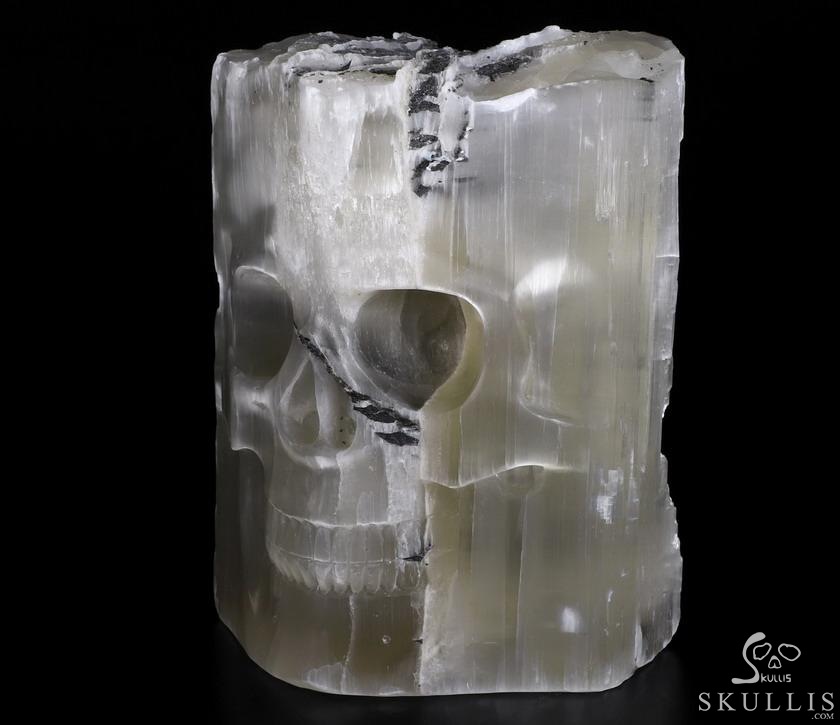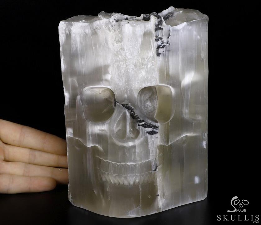 6.7" Selenite Carved Crystal Skull Sculpture, Crystal Healing