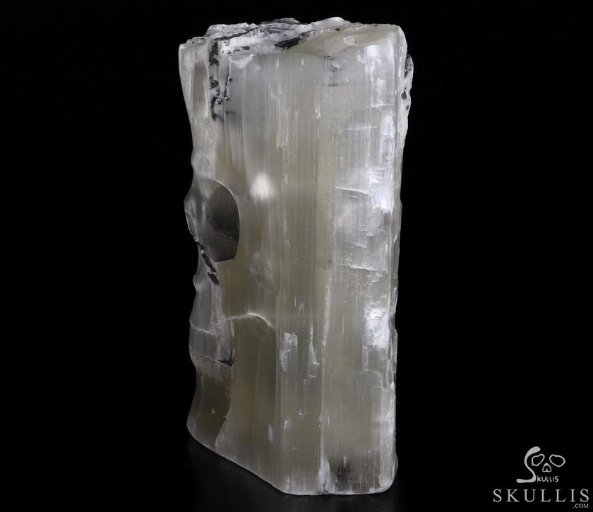 Original 5.7" Selenite Carved Crystal Skull, Crystal Healing