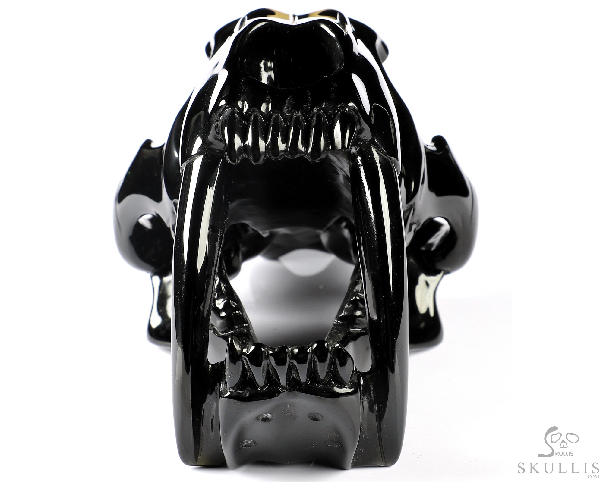 7.2" Black Obsidian Carved Smilodon SABER-TOOTHED Tiger/Cat Crystal Skull, Realistic, Crystal Healing