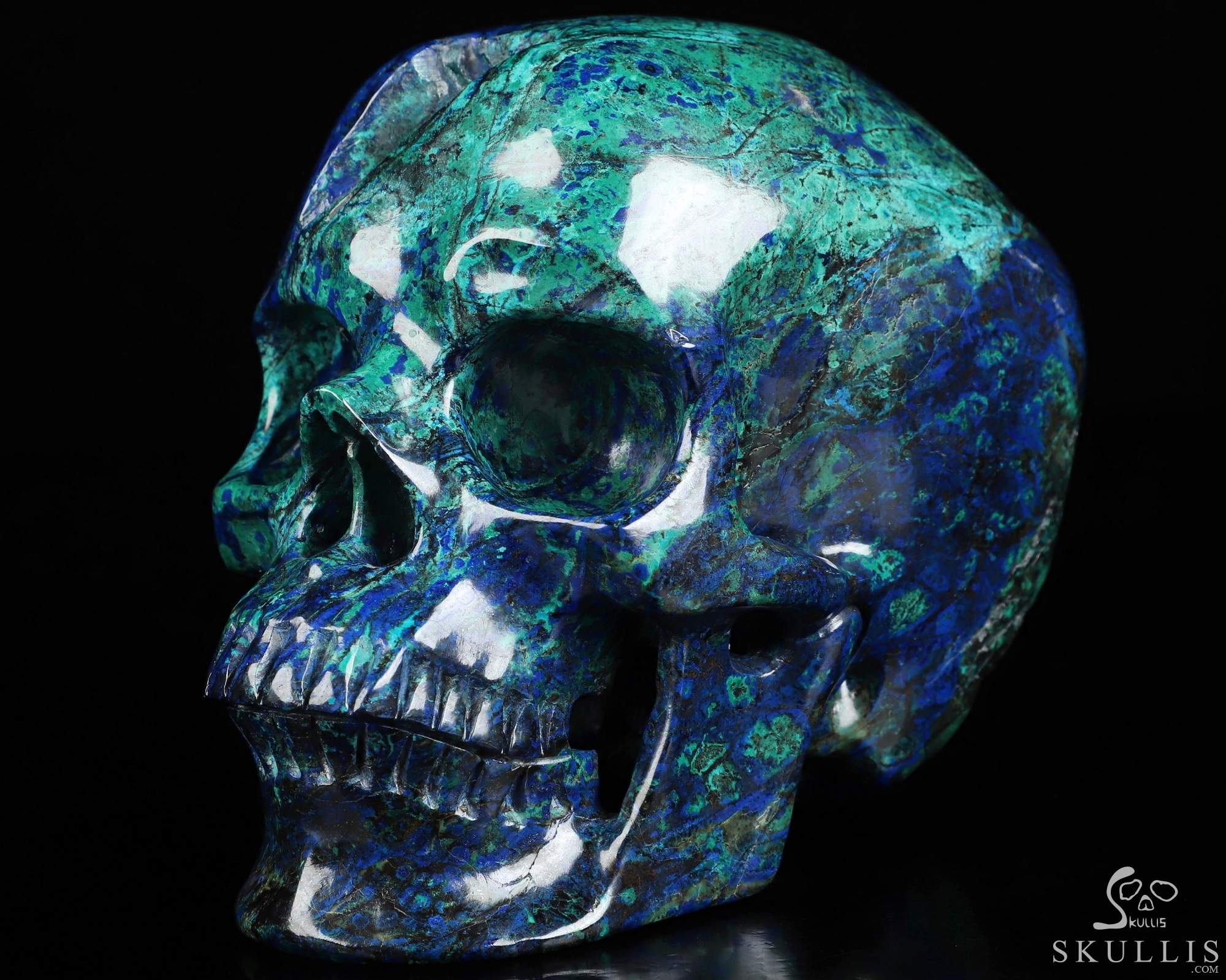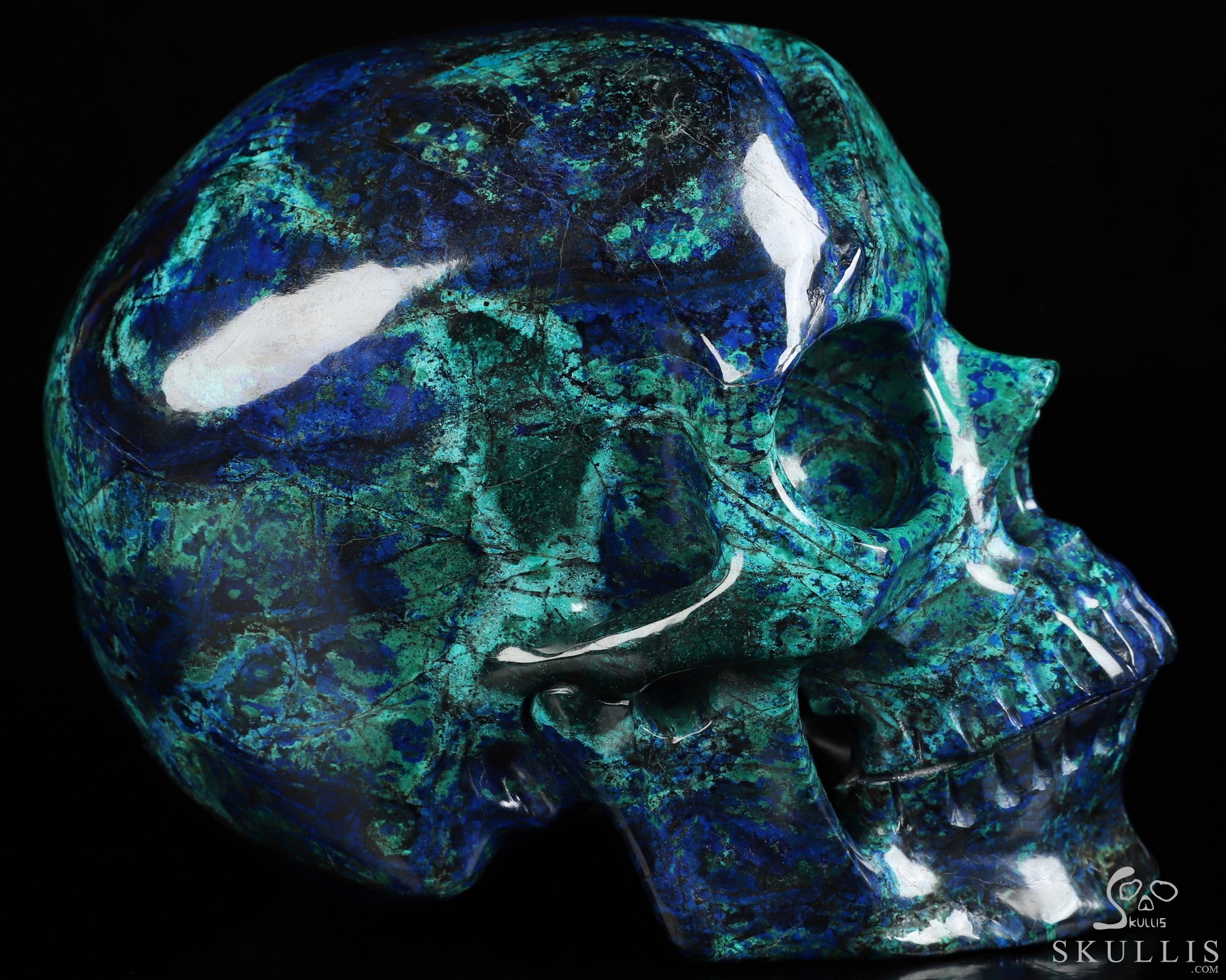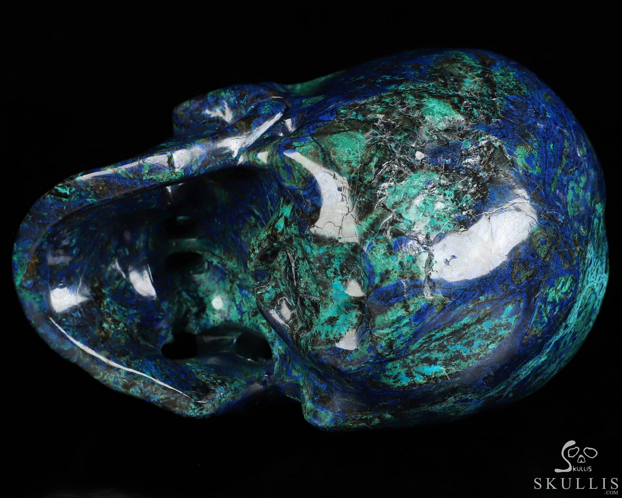 5.0" Azurite & Malachite Hand Carved Crystal Skull, Super Realistic, Crystal Healing
