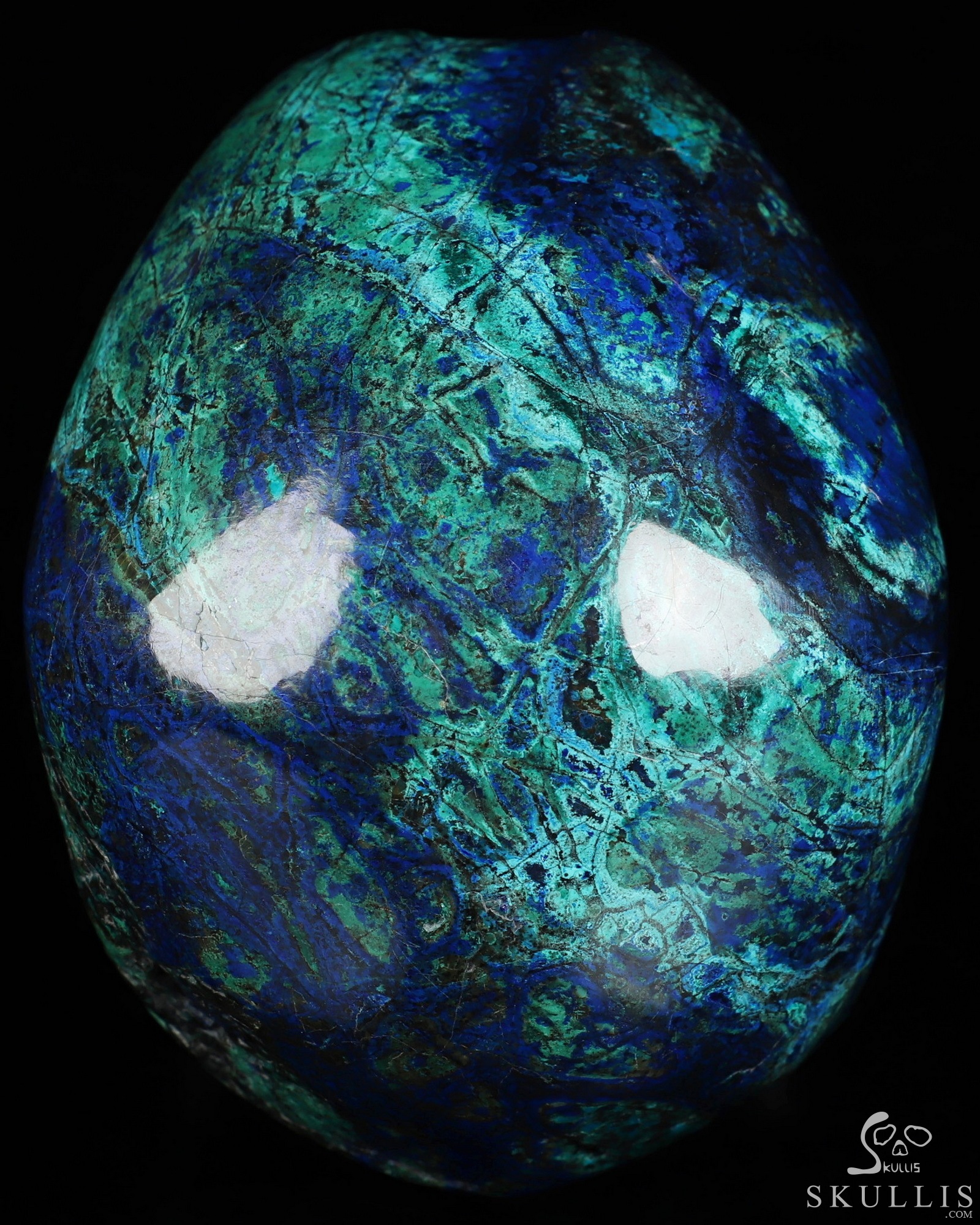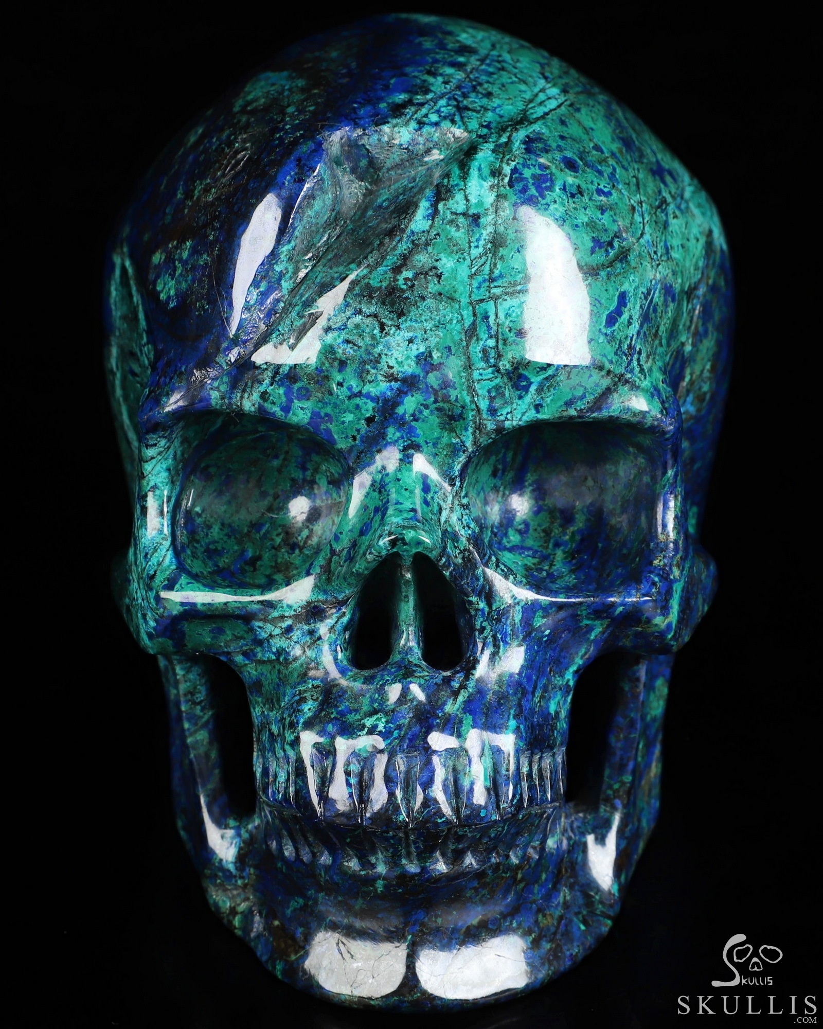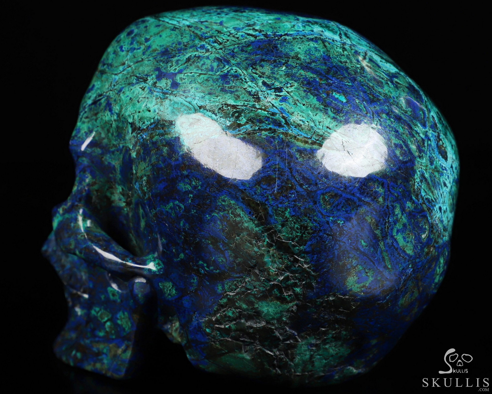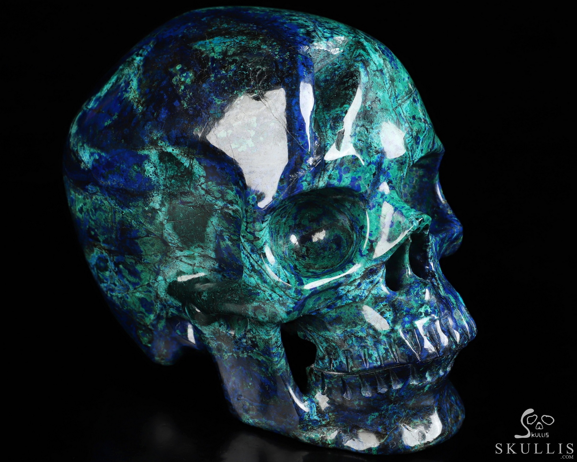 5.0" Azurite & Malachite Hand Carved Crystal Skull, Super Realistic, Crystal Healing