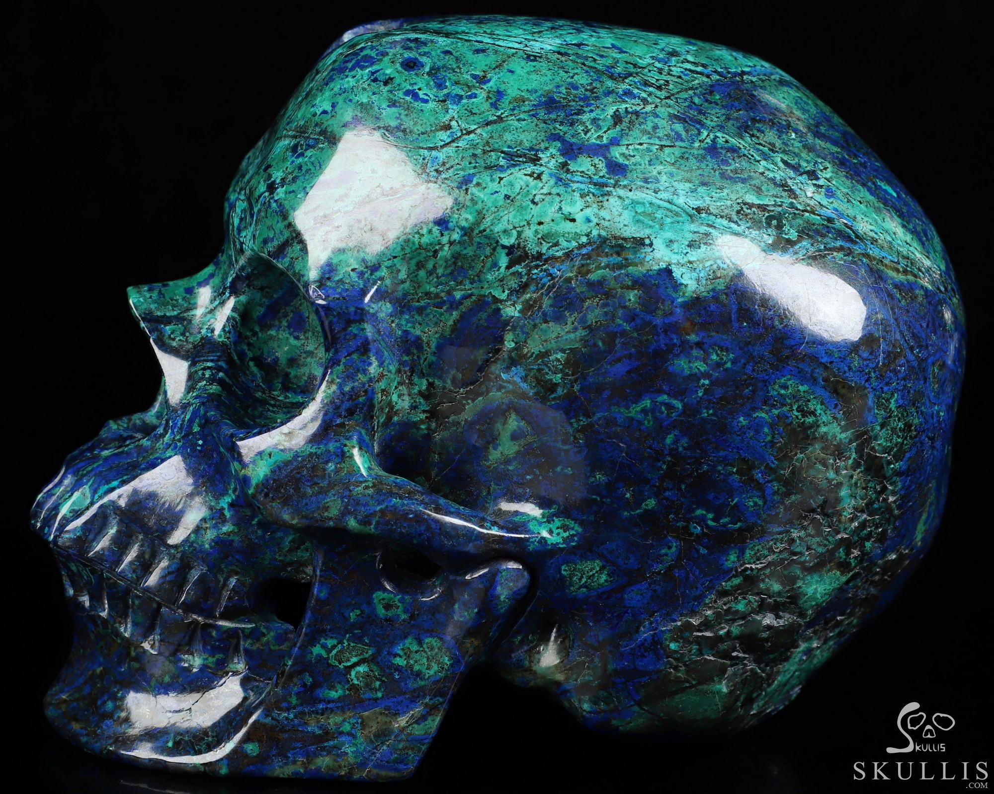 Gemstone Lifesized 6.1" Azurite & Malachite Hand Carved Crystal Skull, Crystal Healing