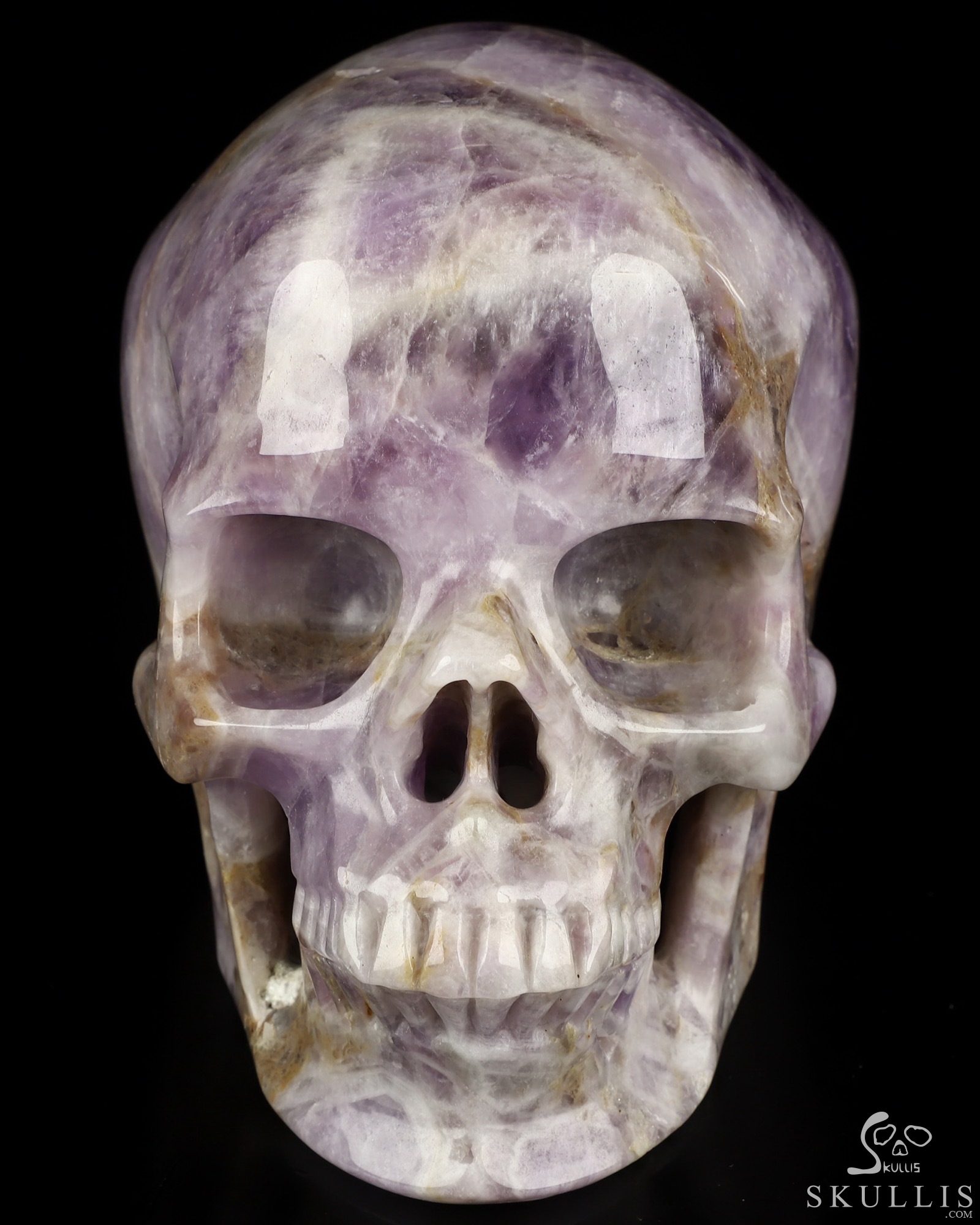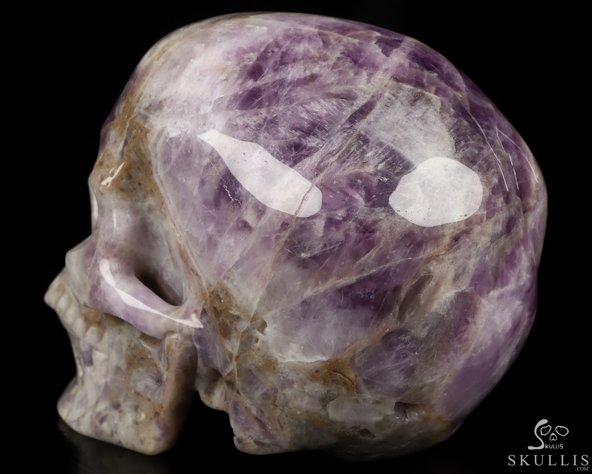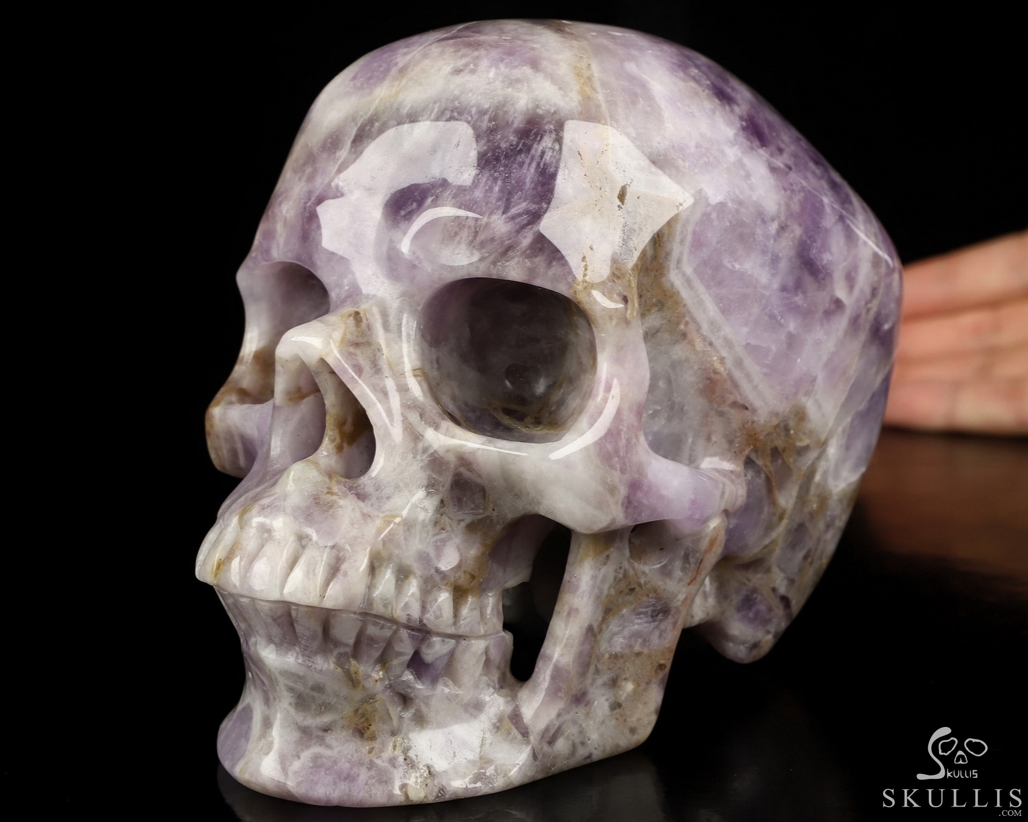 Lifesized 5.9" Dream Chevron Amethyst Hand Carved Crystal Skull, Super Realistic, Crystal Healing