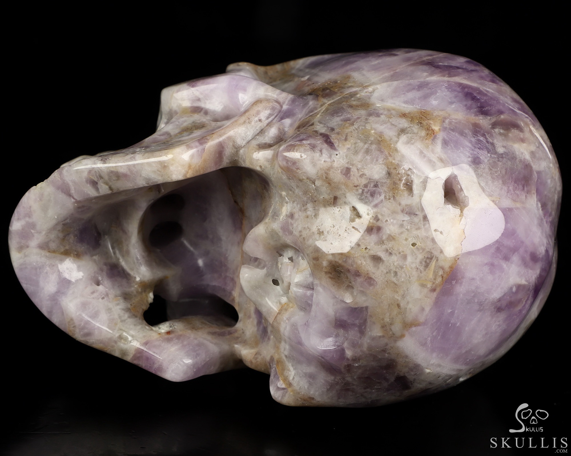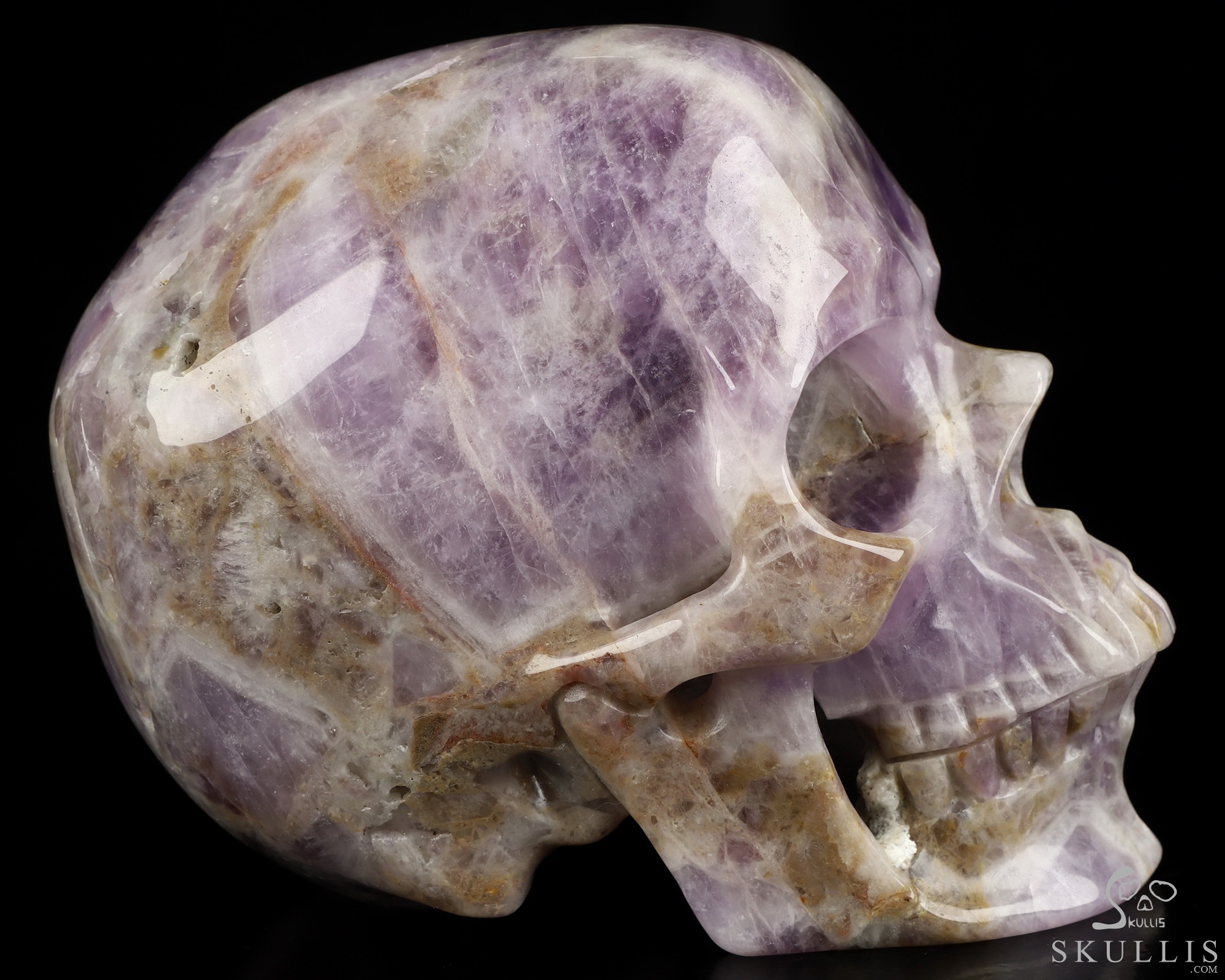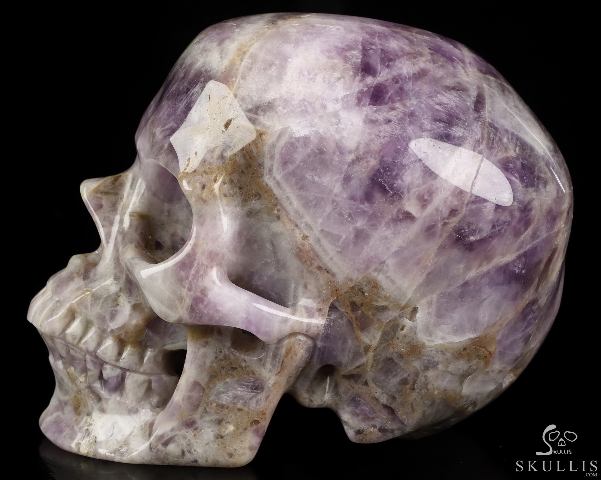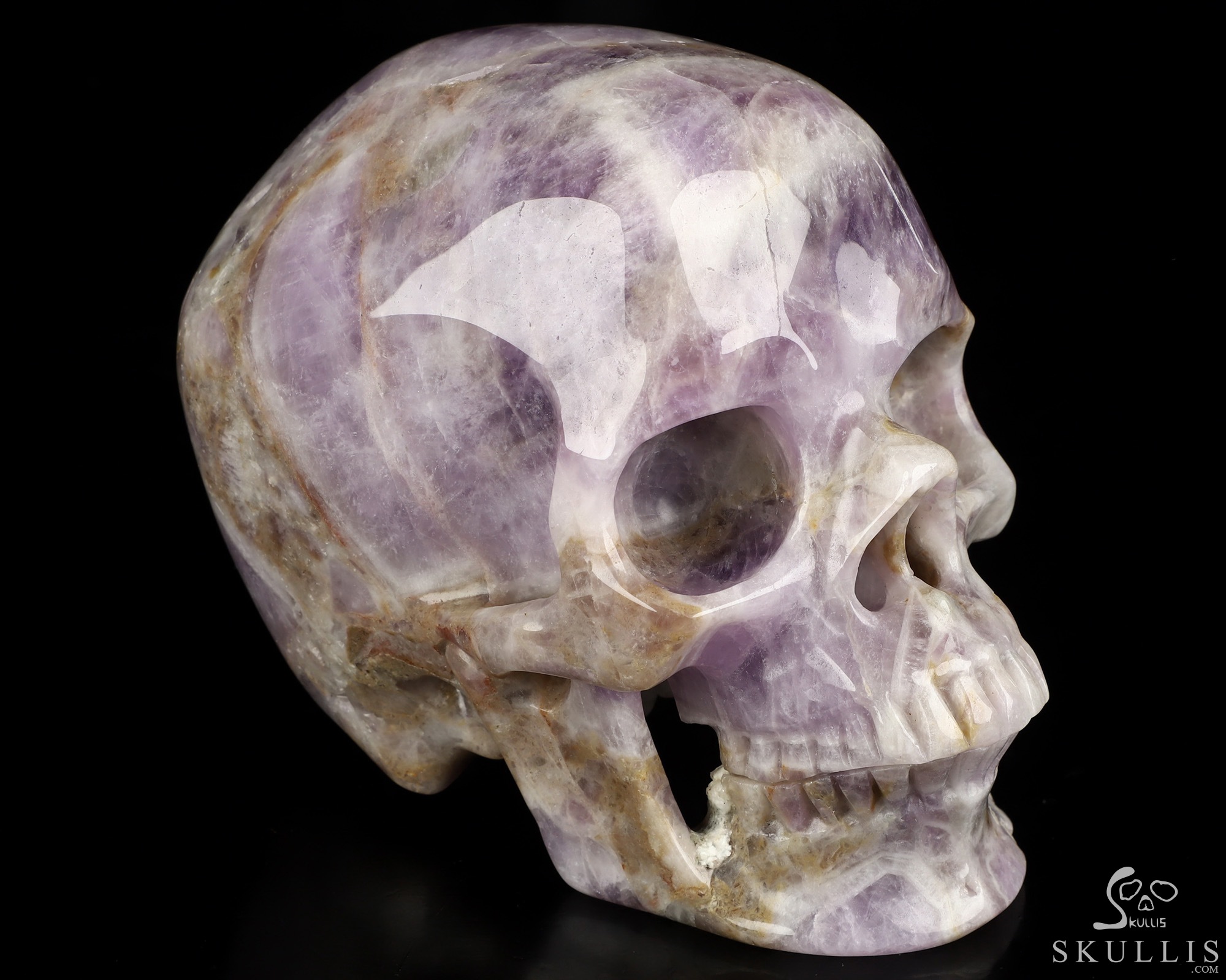 Gemstone Huge 5.1" Dream Chevron Amethyst Carved Crystal Skull, Super Realistic