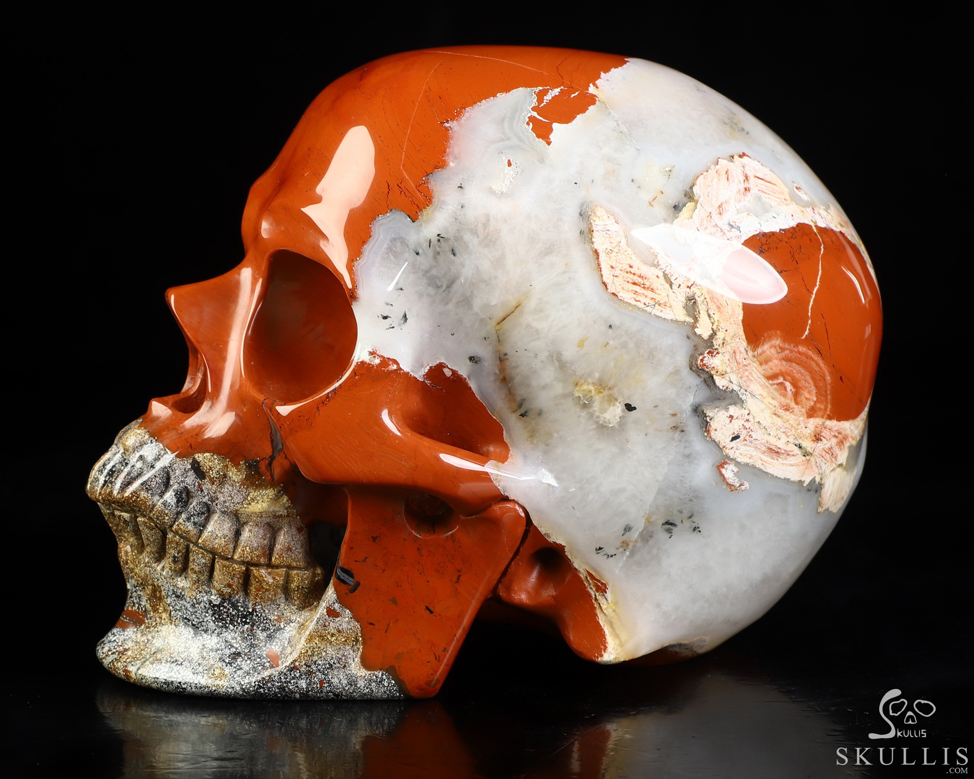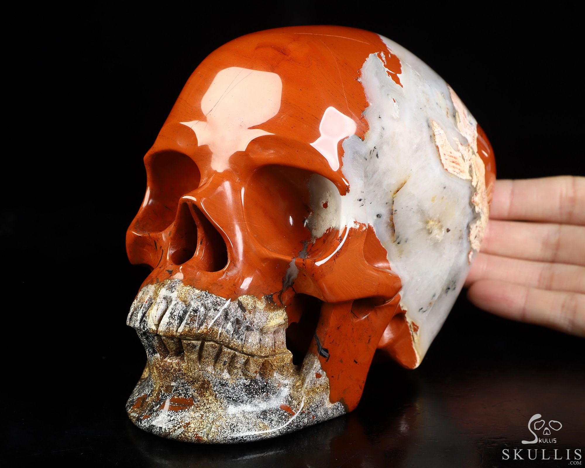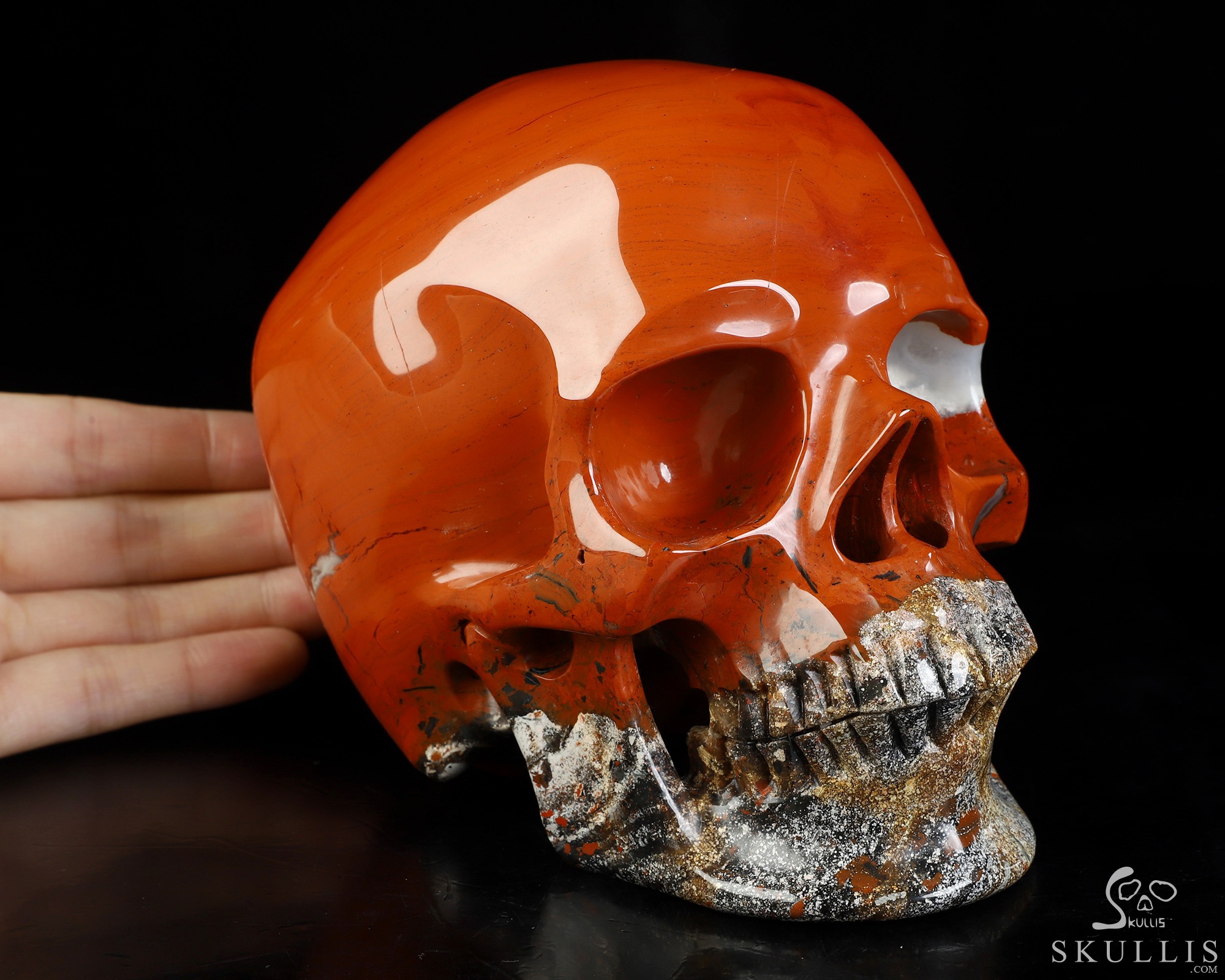 Lifesized 5.9" Red Jasper Hand Carved Crystal Skull, Super Realistic, Crystal Healing