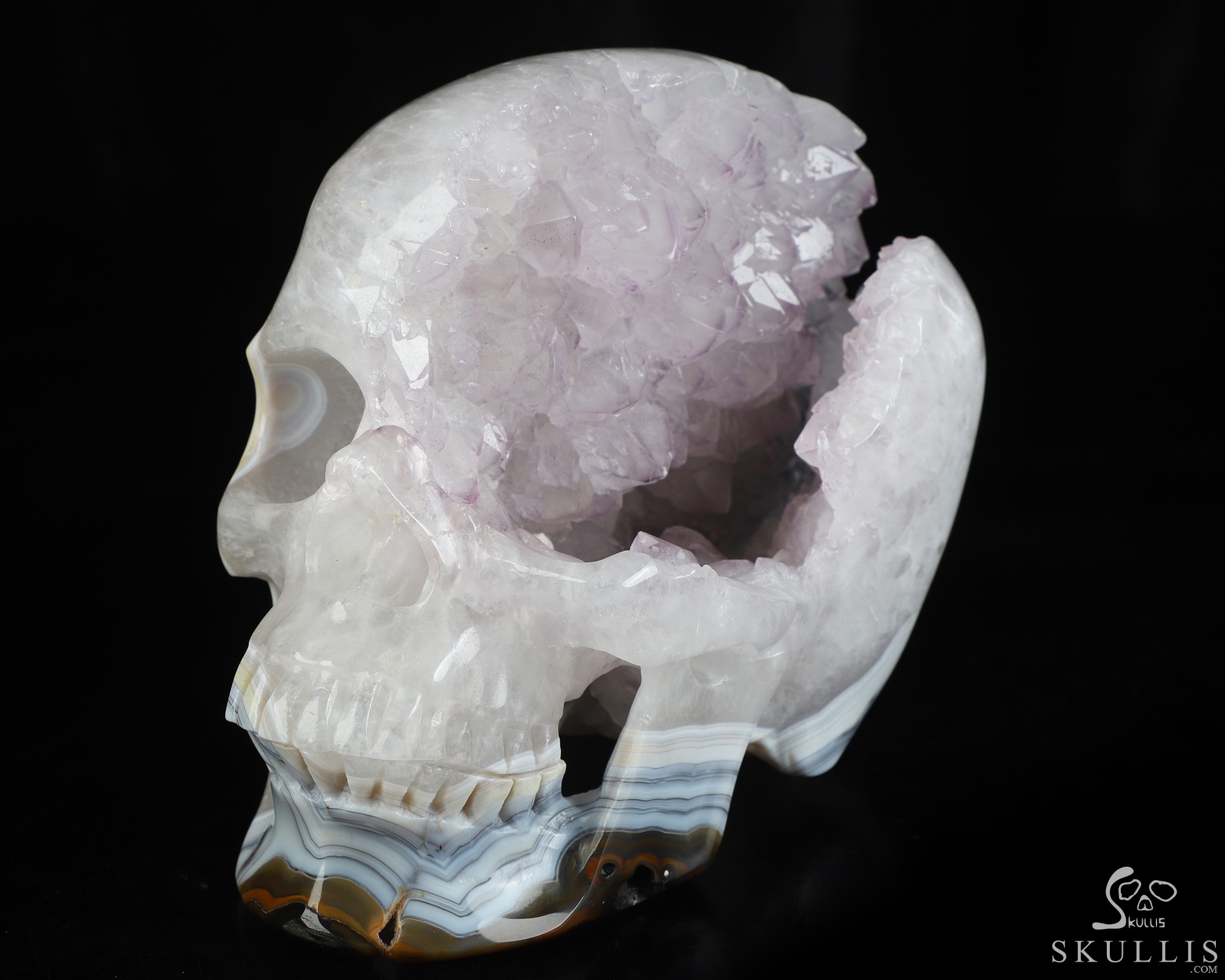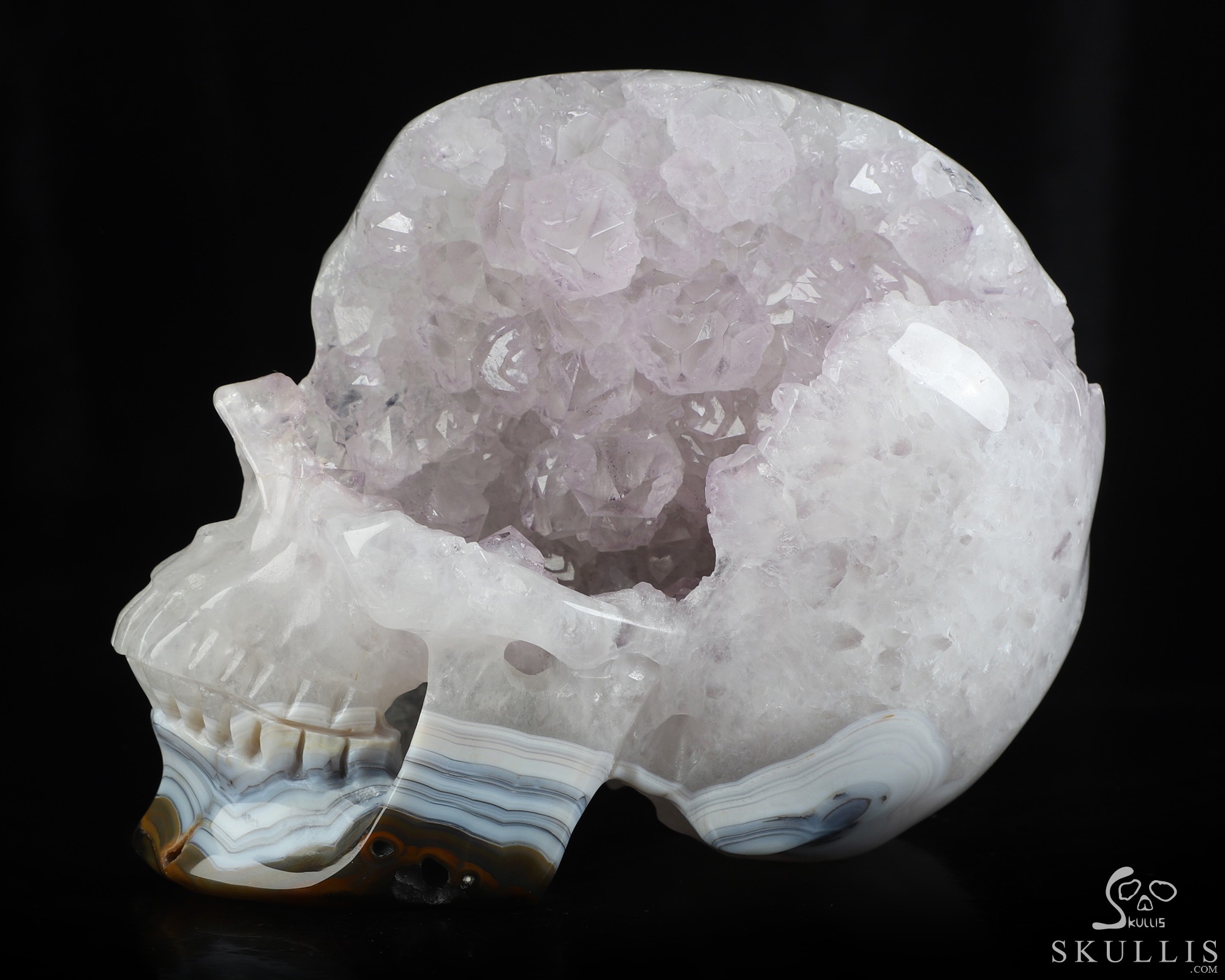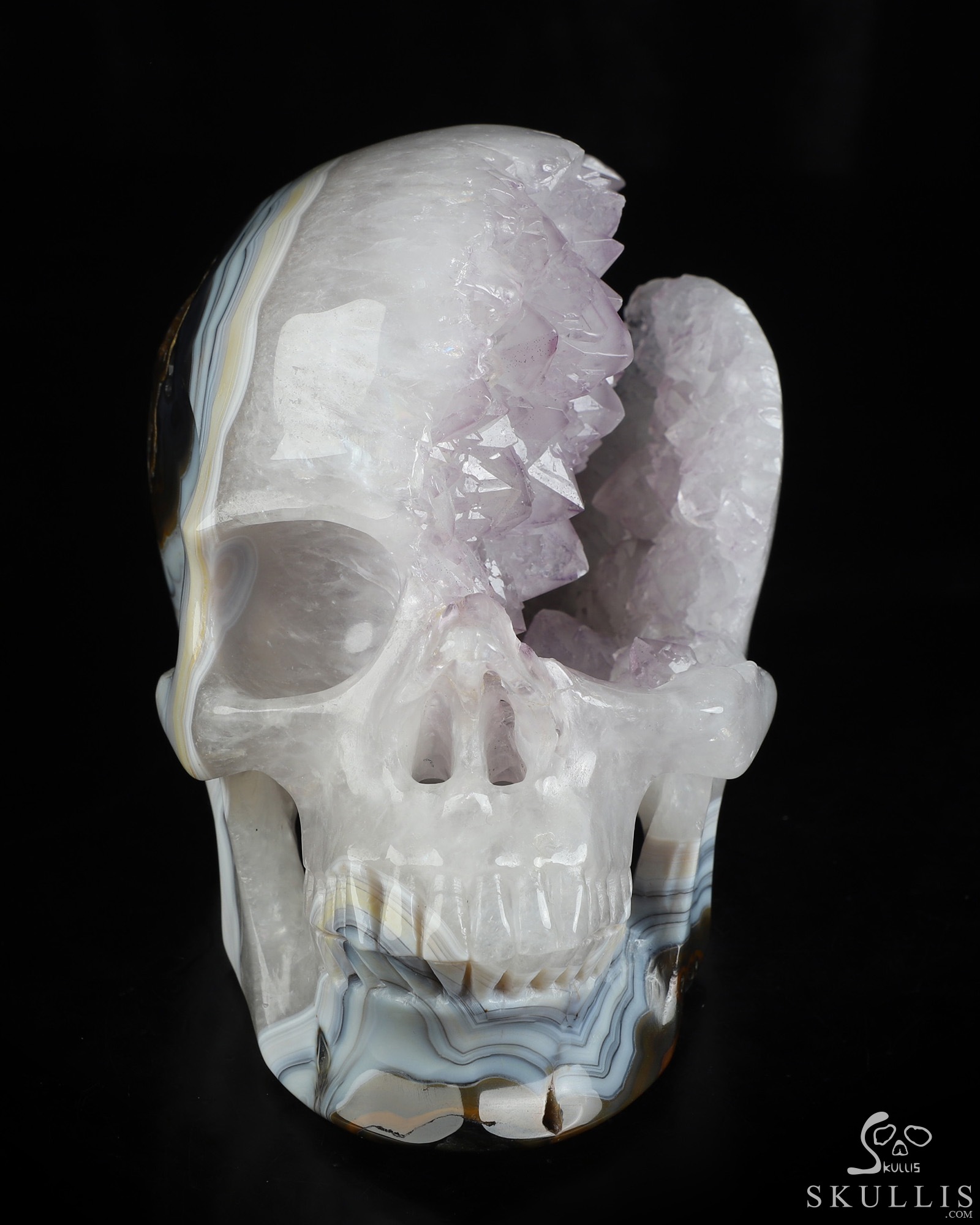 Amazing 6.5" Agate Amethyst Geode Carved Crystal Skull, Realistic