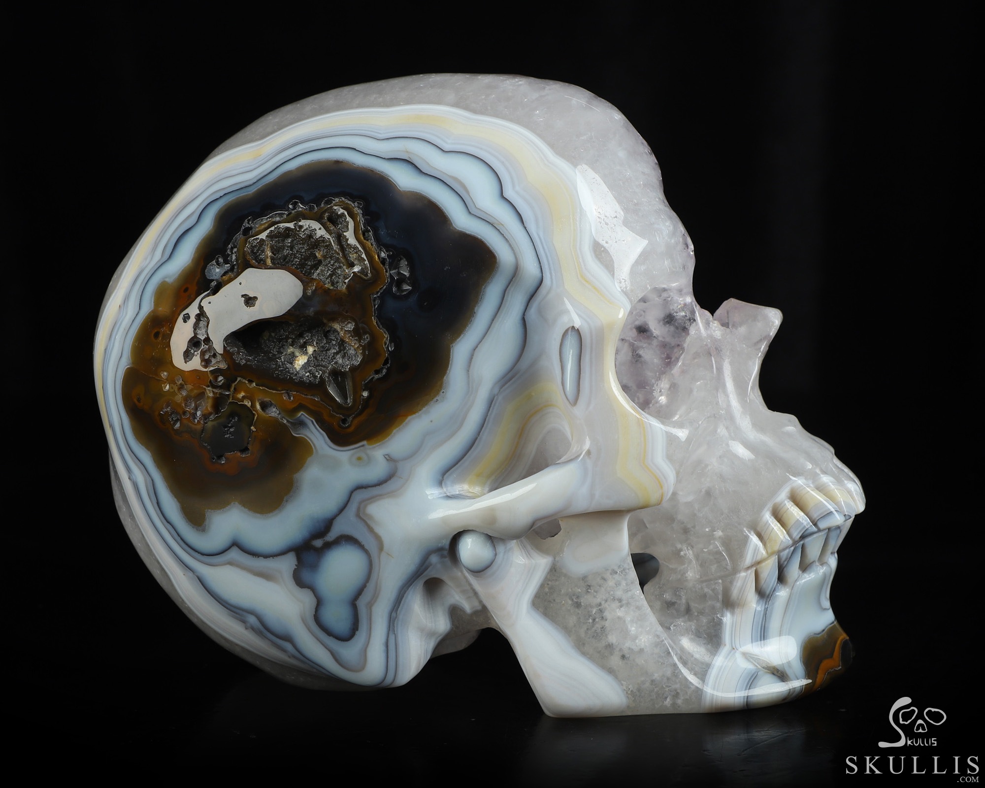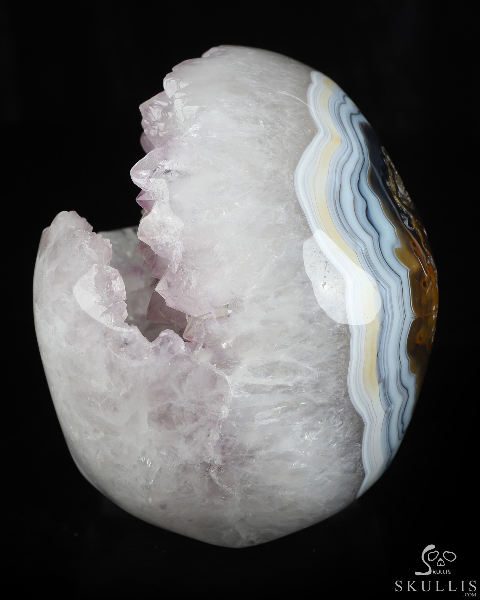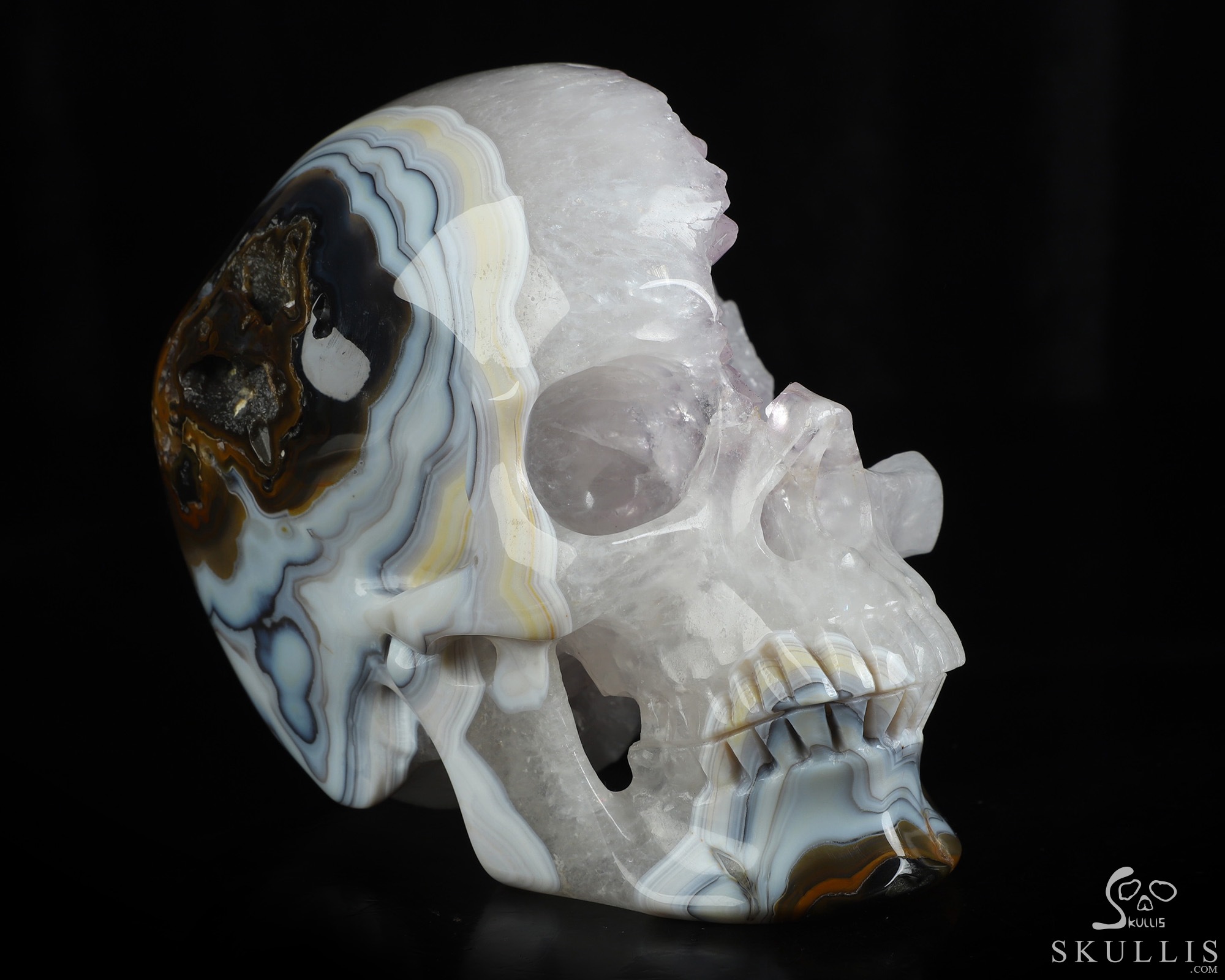 Amazing 6.5" Agate Amethyst Geode Carved Crystal Skull, Realistic