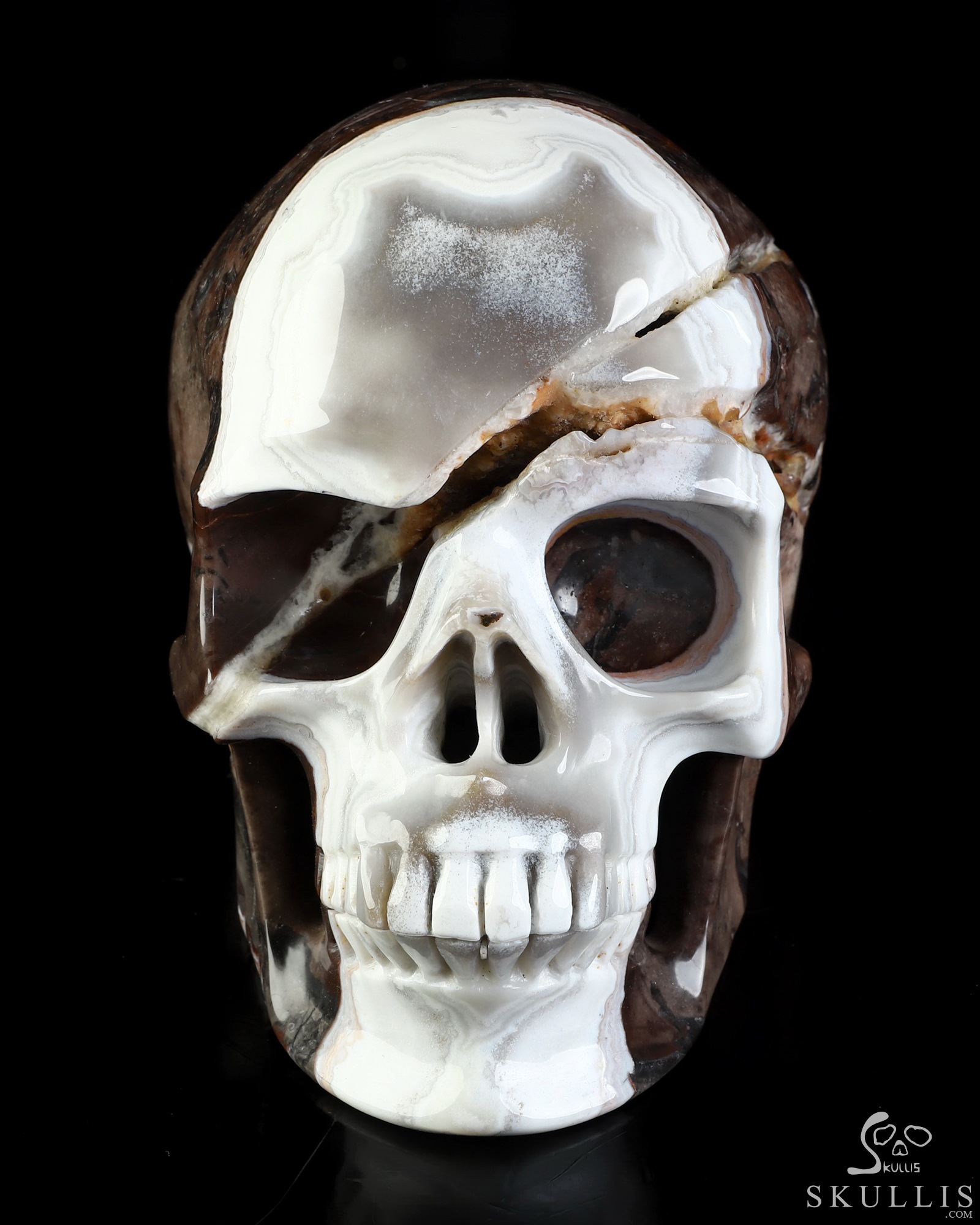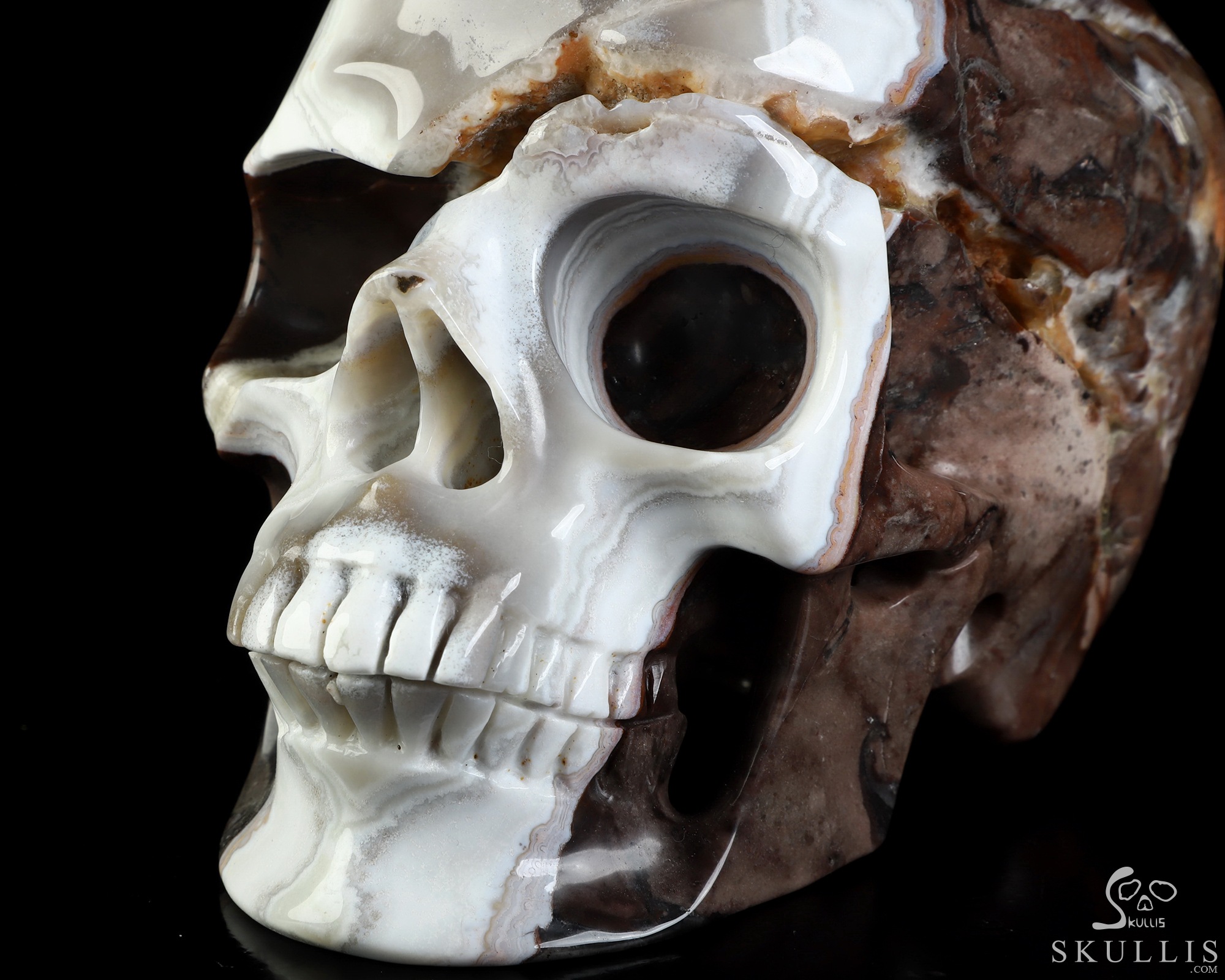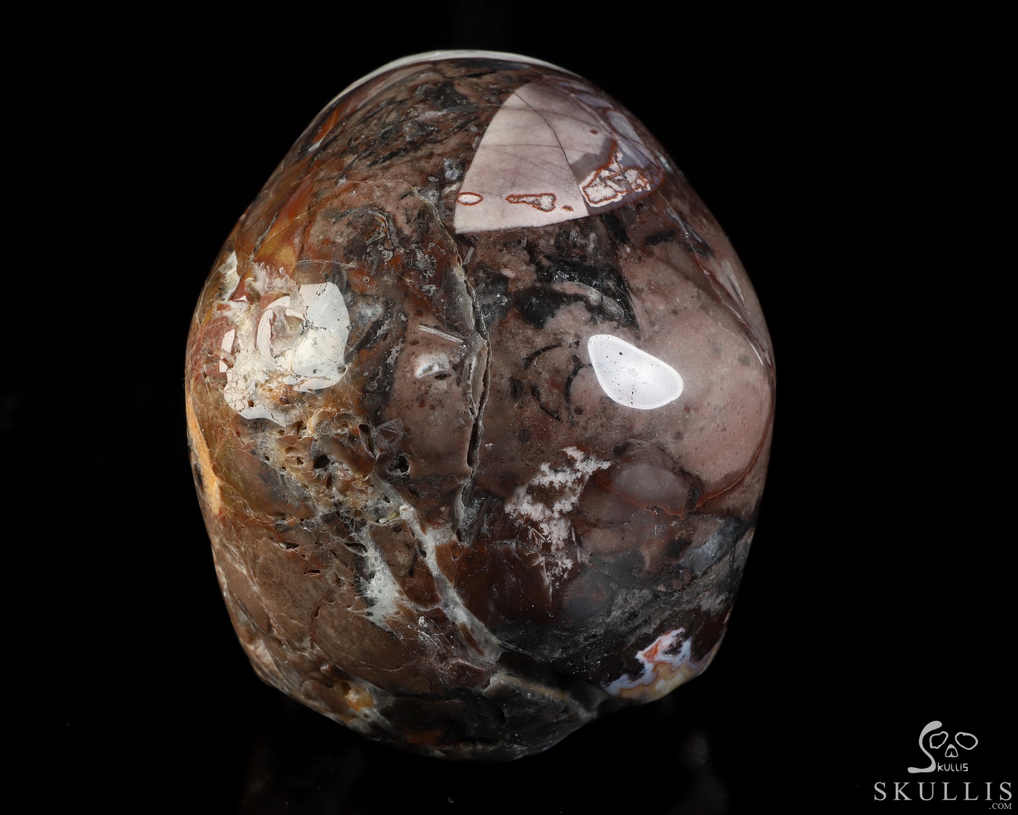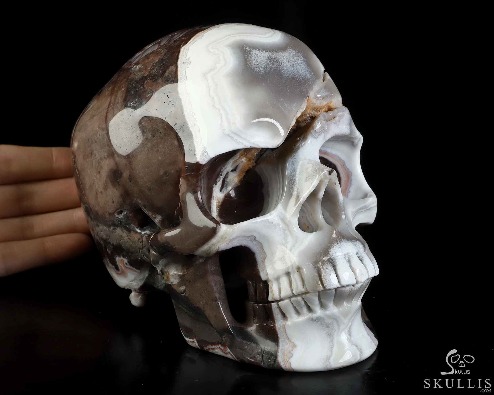 You are looking at a Red Crazy Lace Agate skull. The skull is 6 inches from front to back.