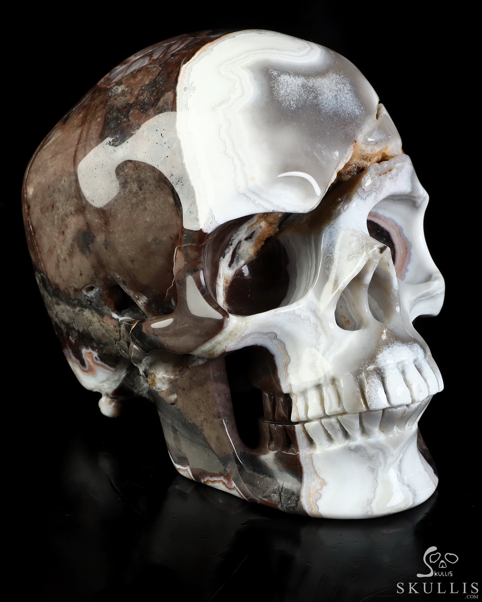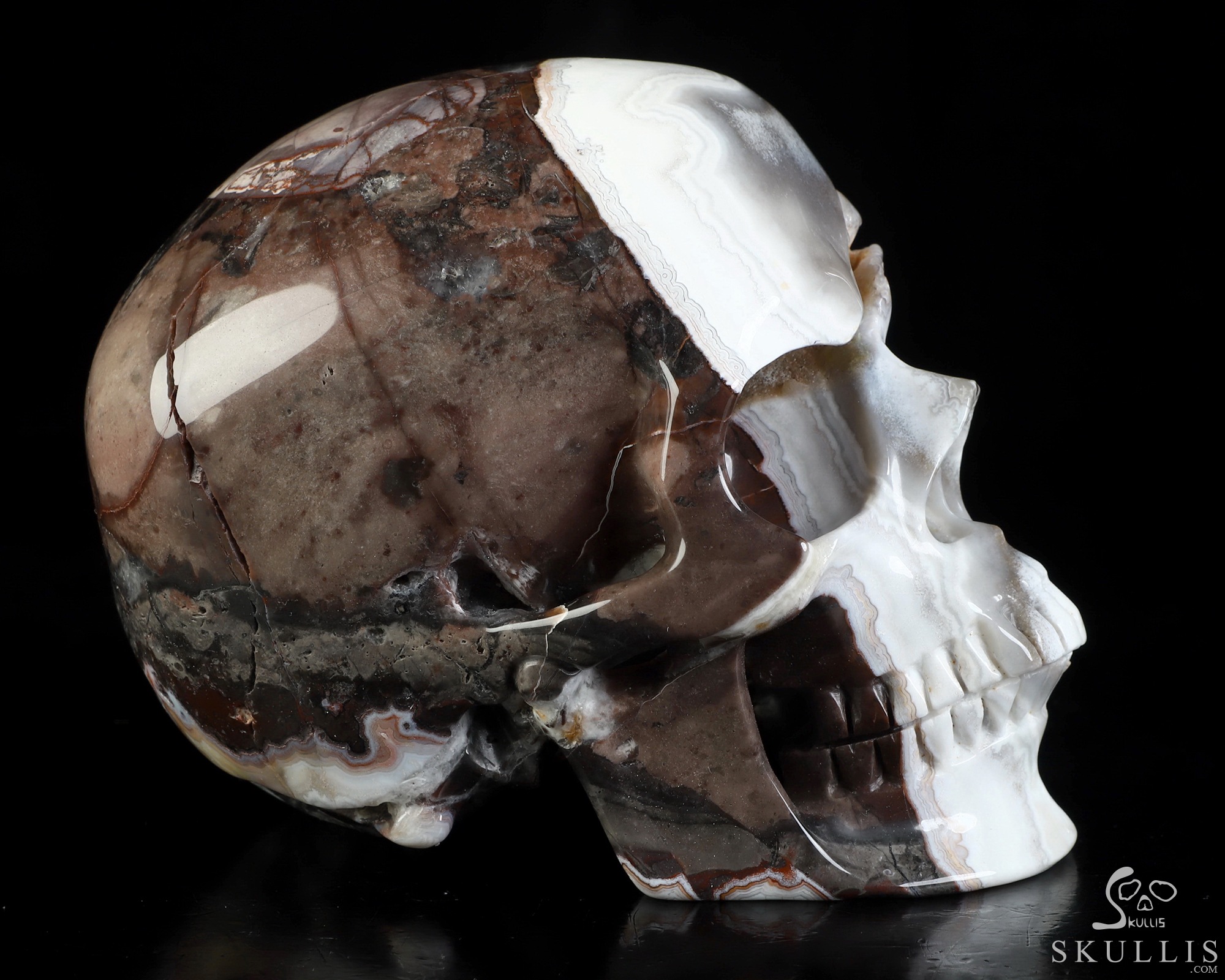 Lifesized 6.0" Red Crazy Lace Agate Hand Carved Crystal Skull, Super Realistic, Crystal Healing