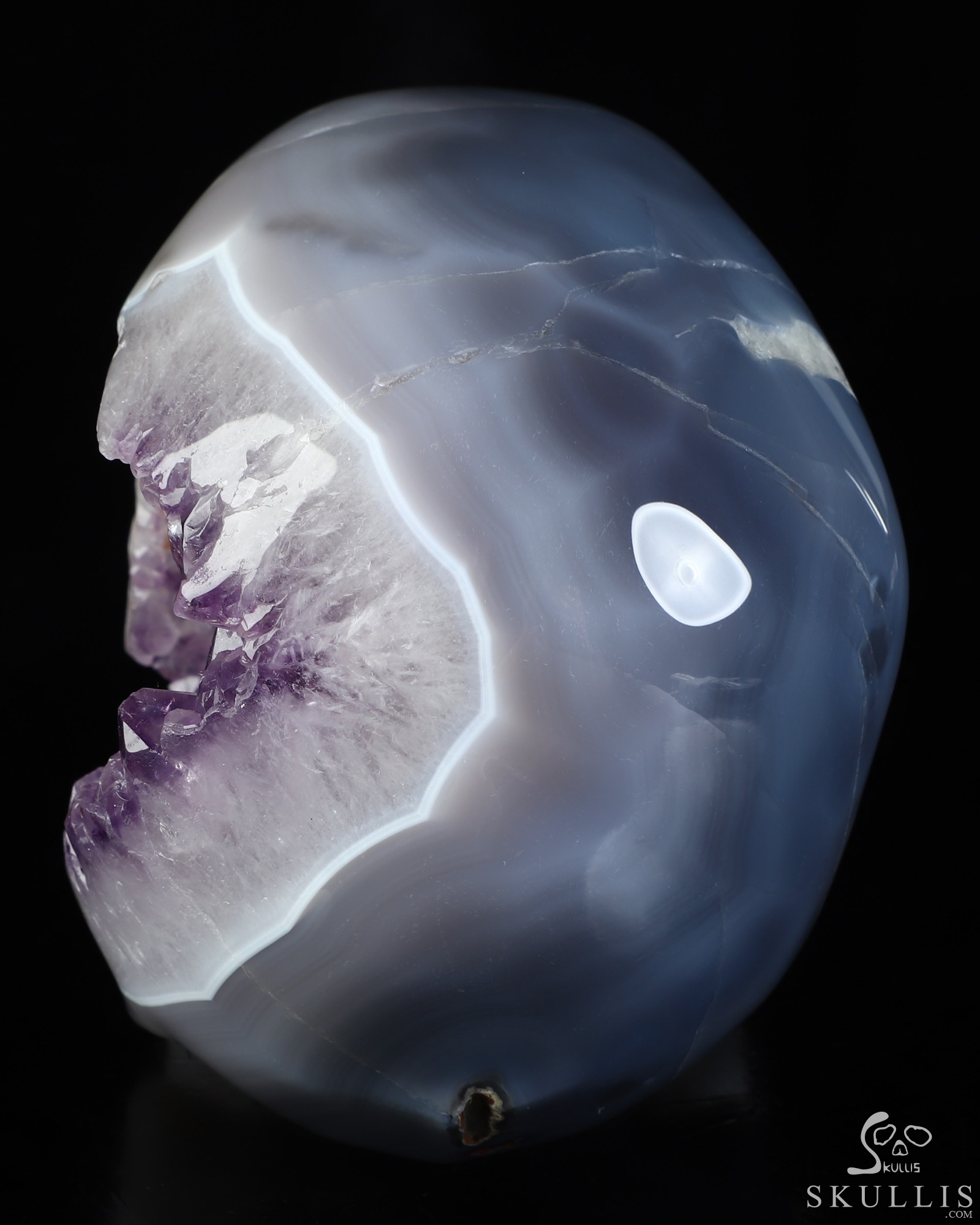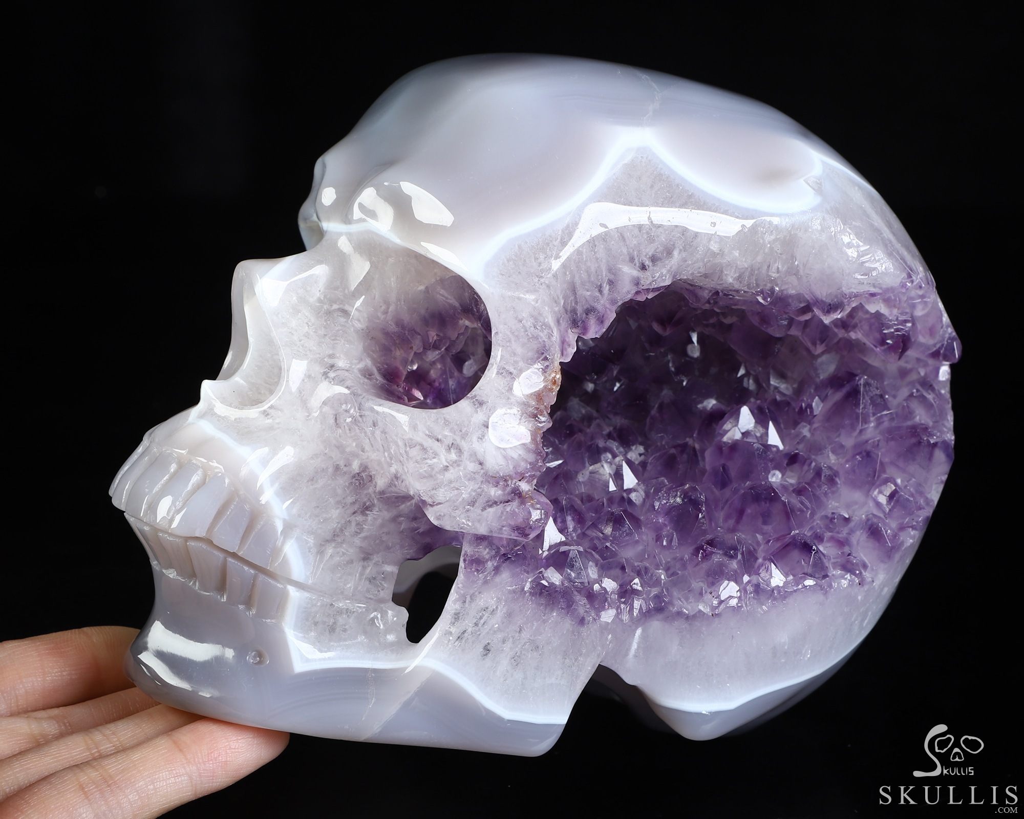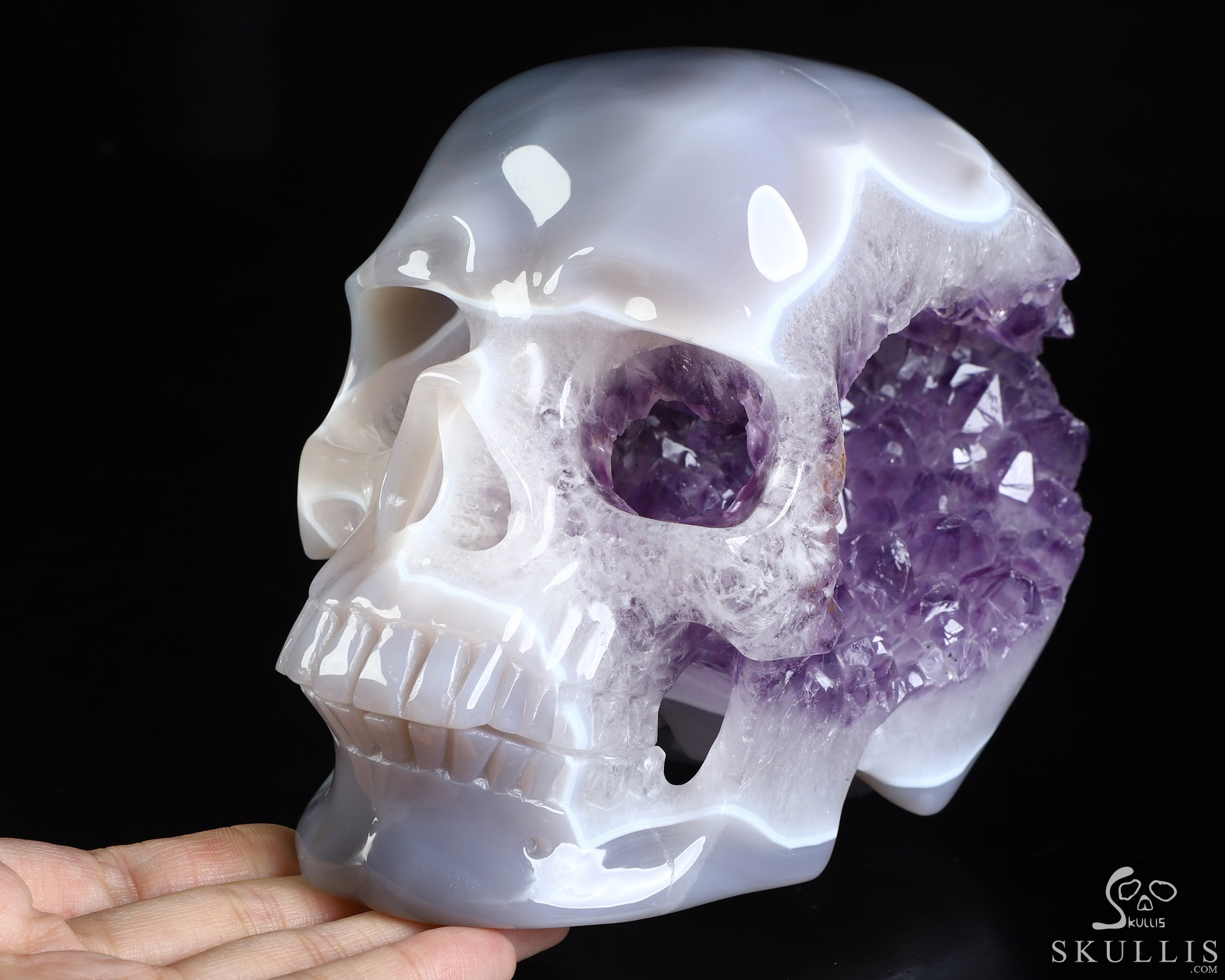 Lifesized 6.2" Banded Agate Amethyst Geode Hand Carved Crystal Skull, Super Realistic, Crystal Healing