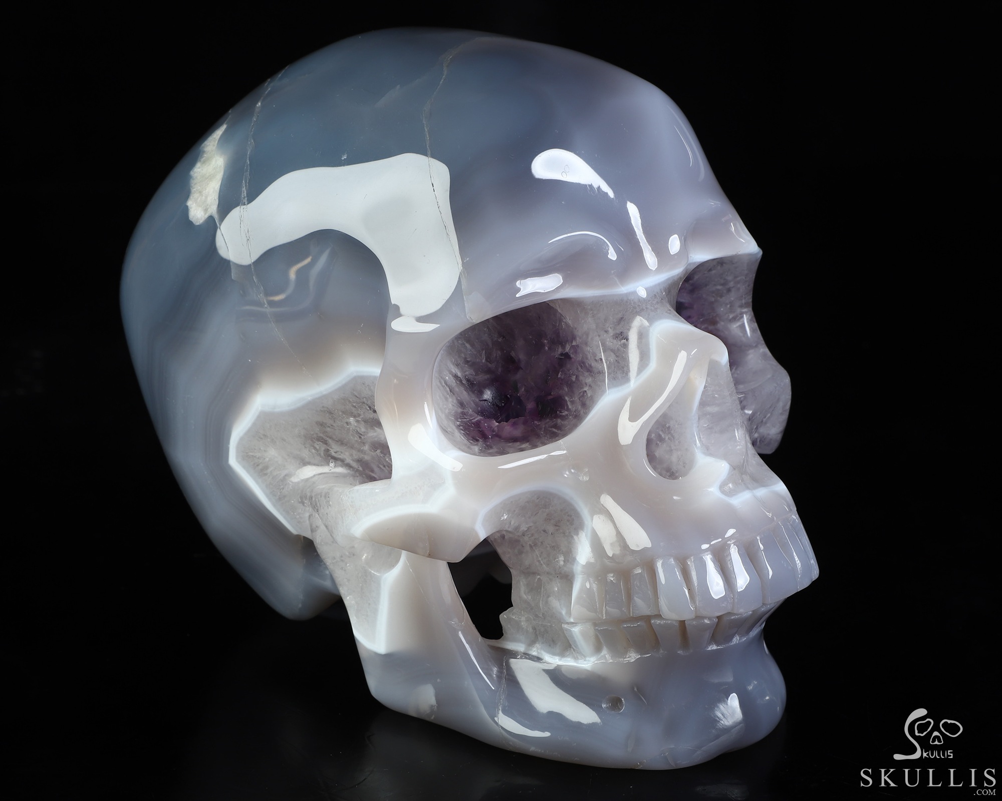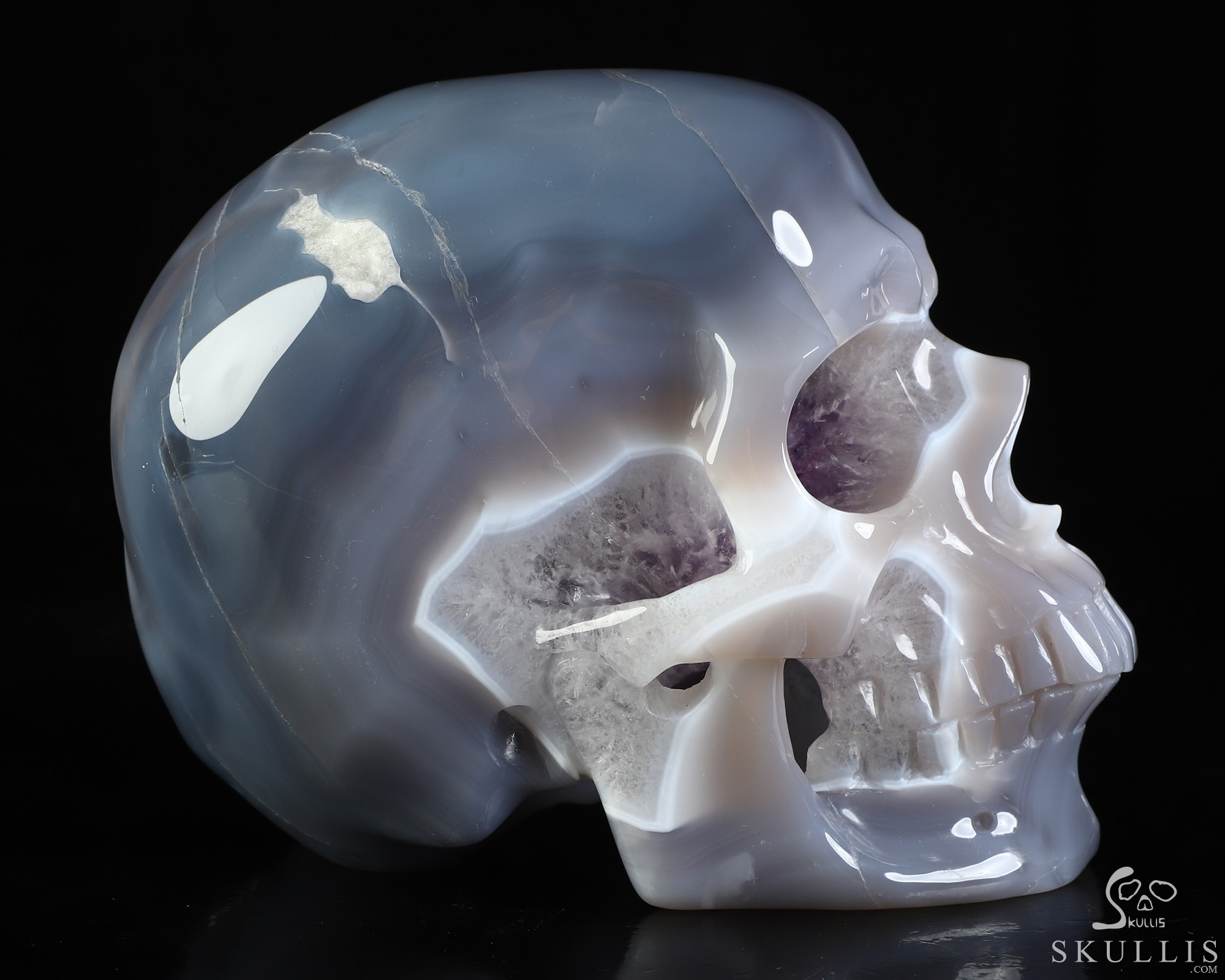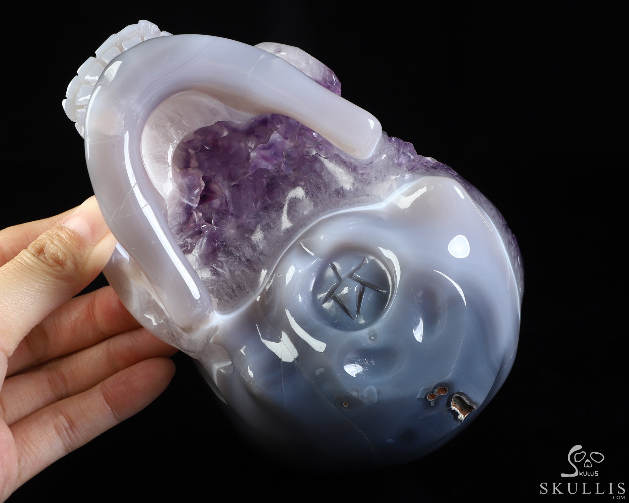 Lifesized 6.2" Banded Agate Amethyst Geode Hand Carved Crystal Skull, Super Realistic, Crystal Healing
