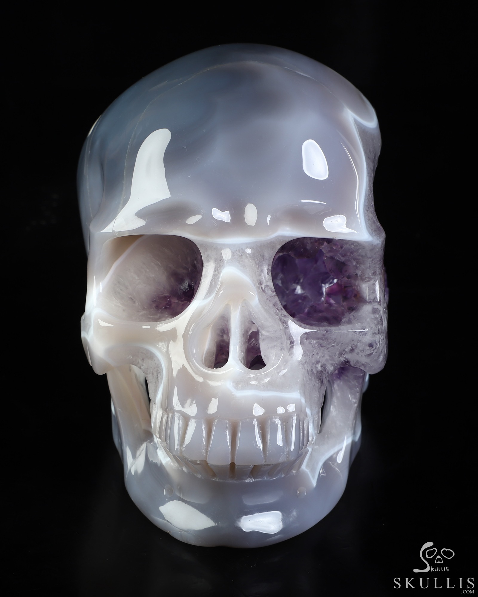 Lifesized 7.7" Agate Amethyst Geode Hand Carved Crystal Skull, Super Realistic, Crystal Healing