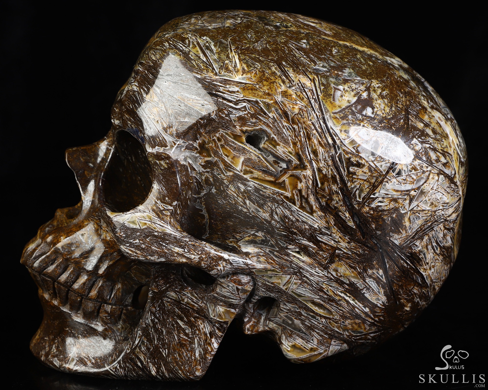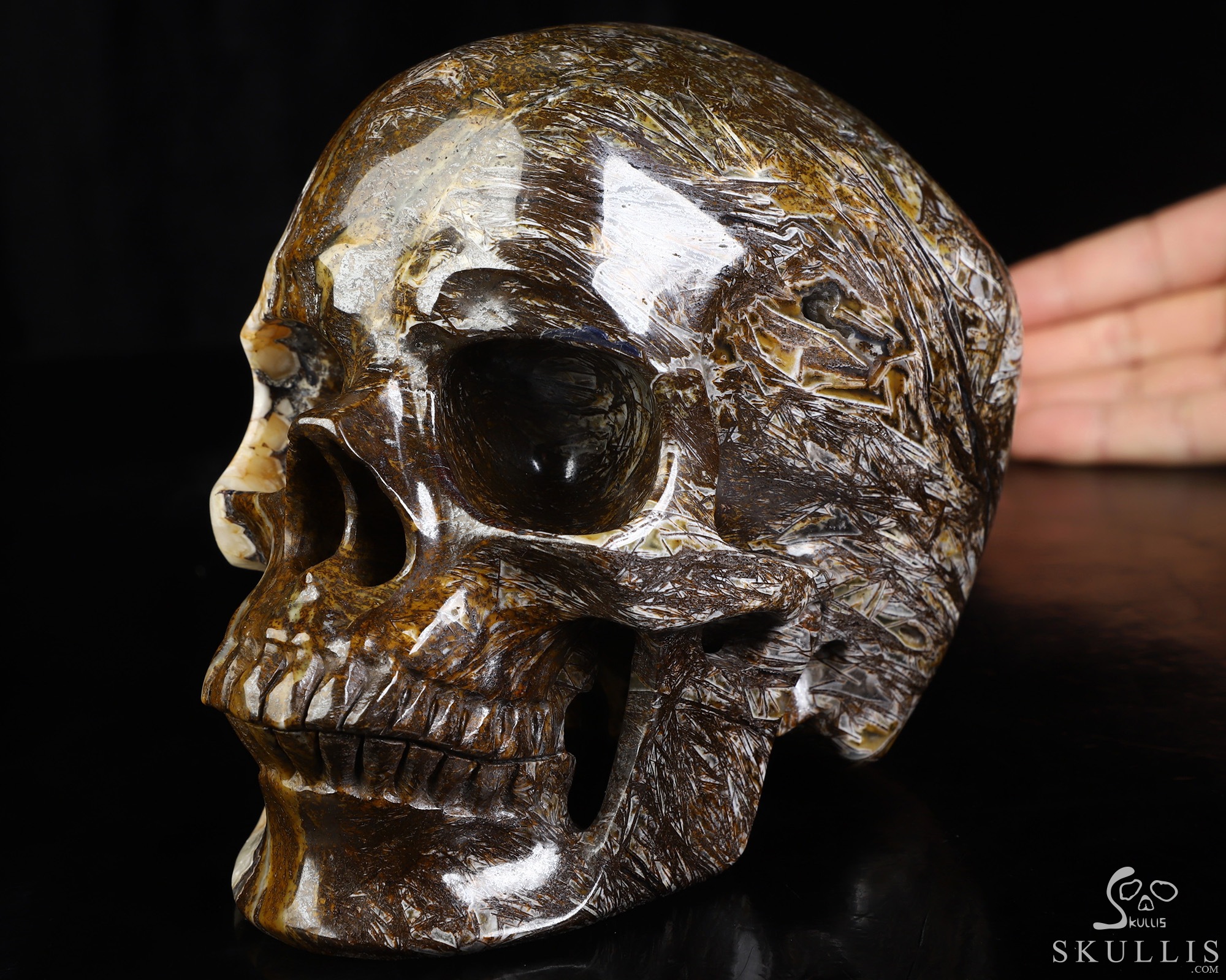 Lifesized 6.8" Tree Leaves Agate Hand Carved Crystal Skull, Super Realistic, Crystal Healing