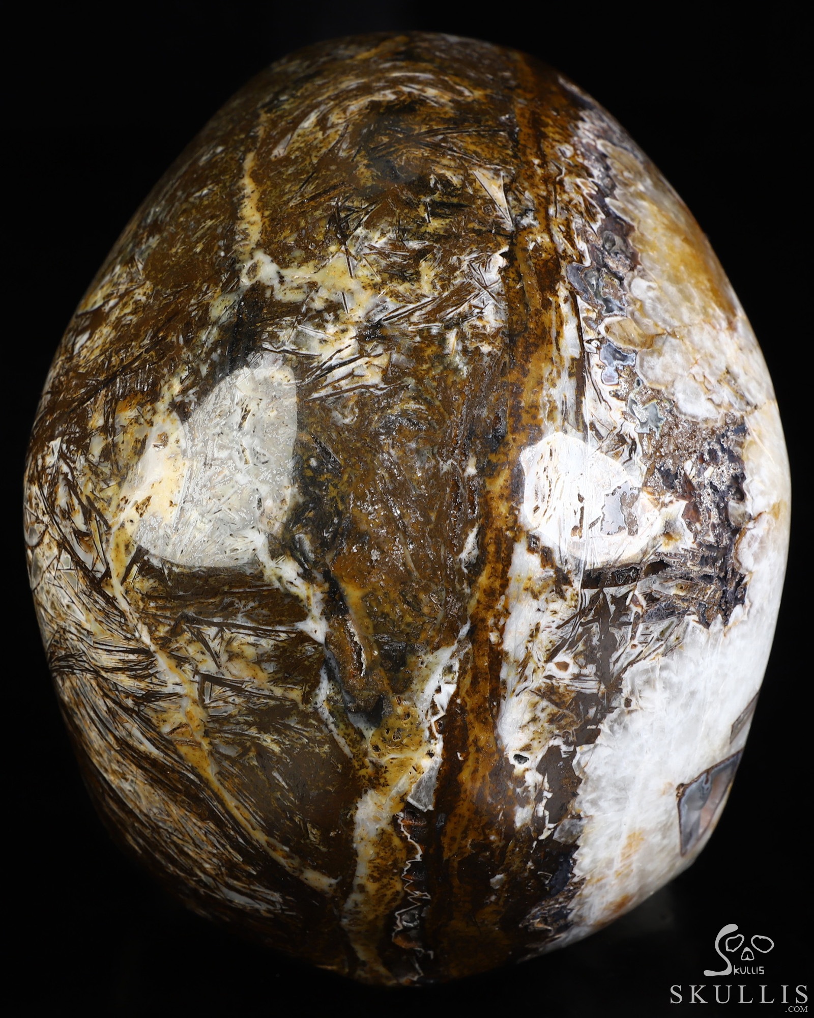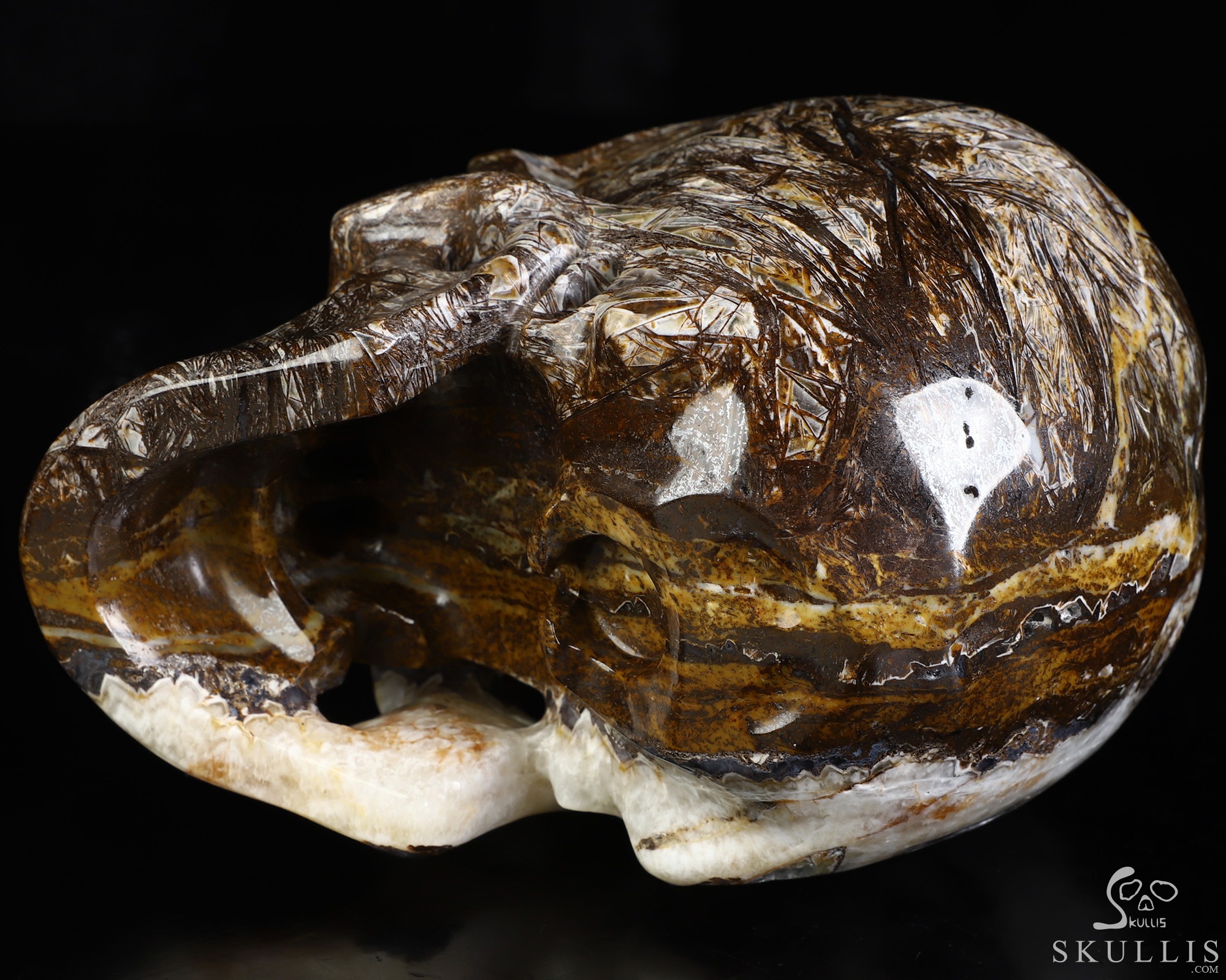 You are looking at a Tree Leaves Agate skull. The skull is 6.1 inches from front to back.
