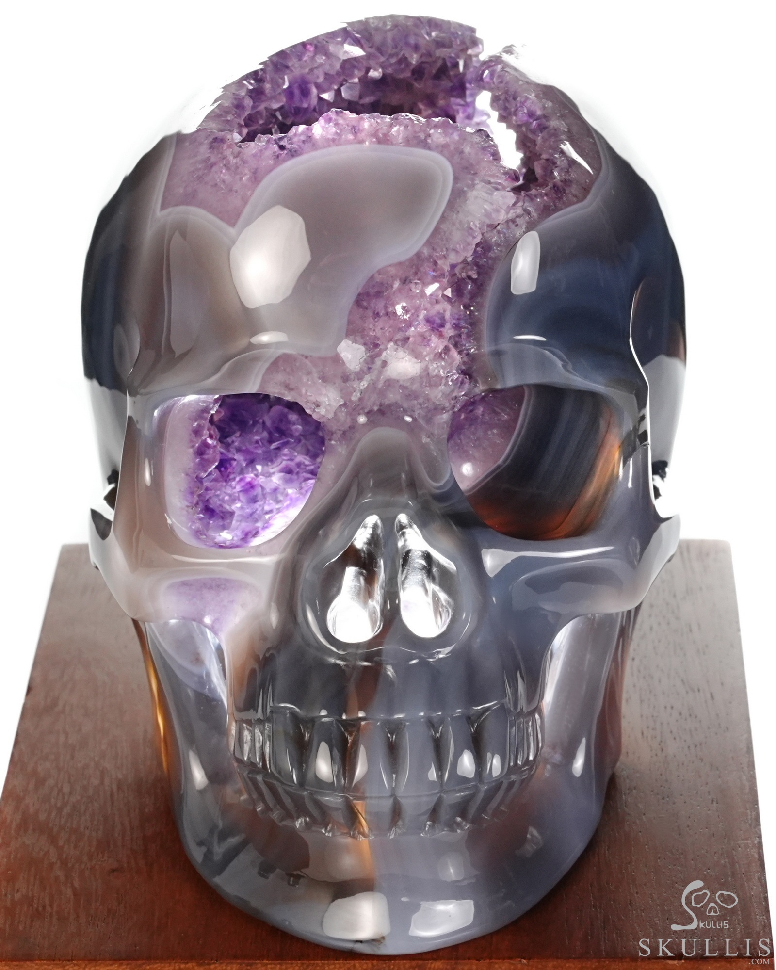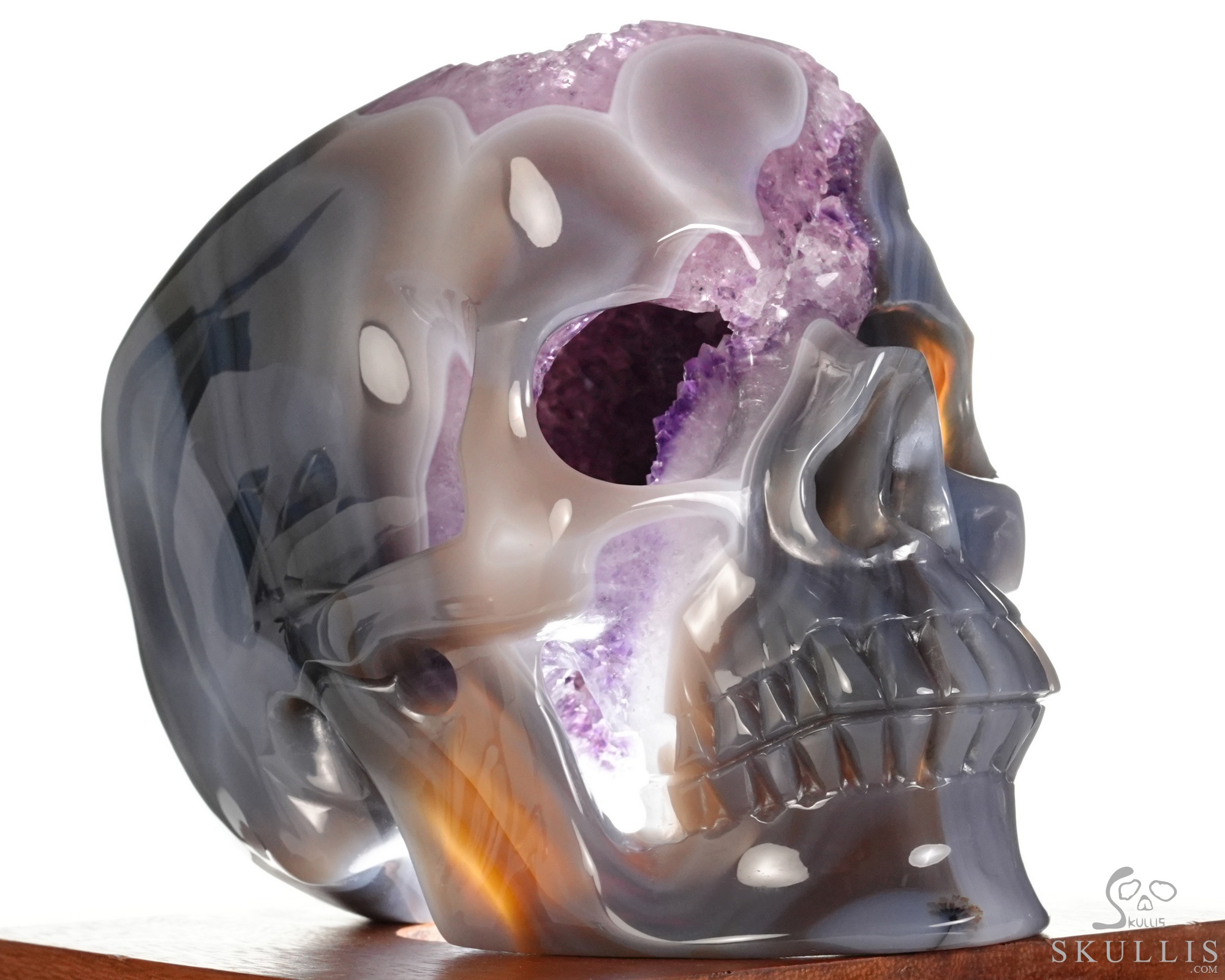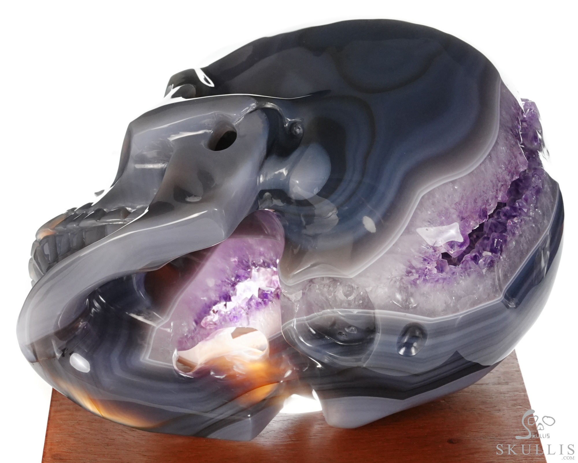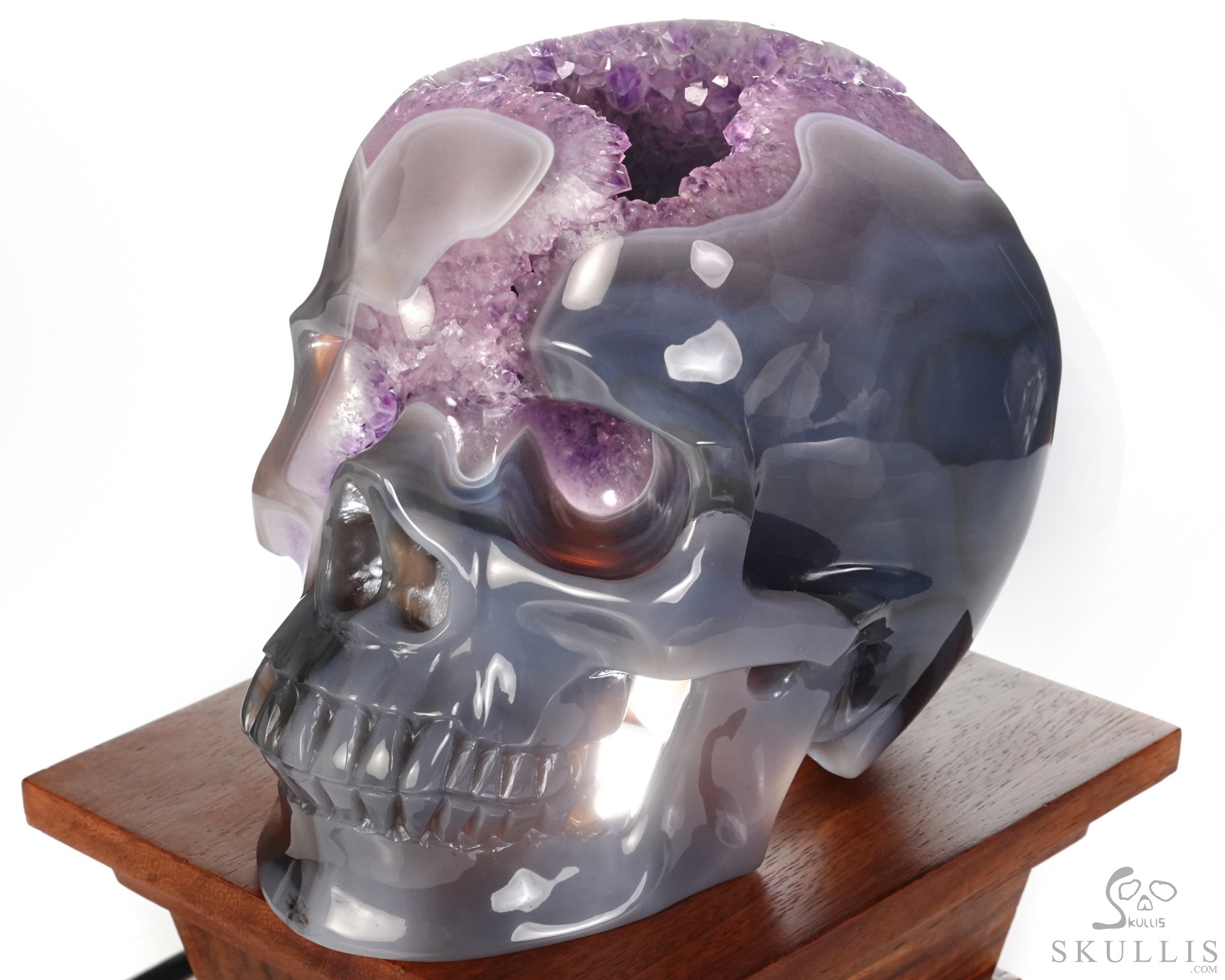AMAZING LIFESIZED 6.2" Agate Amethyst Geode Carved Crystal Skull, Realistic, Crystal Healing