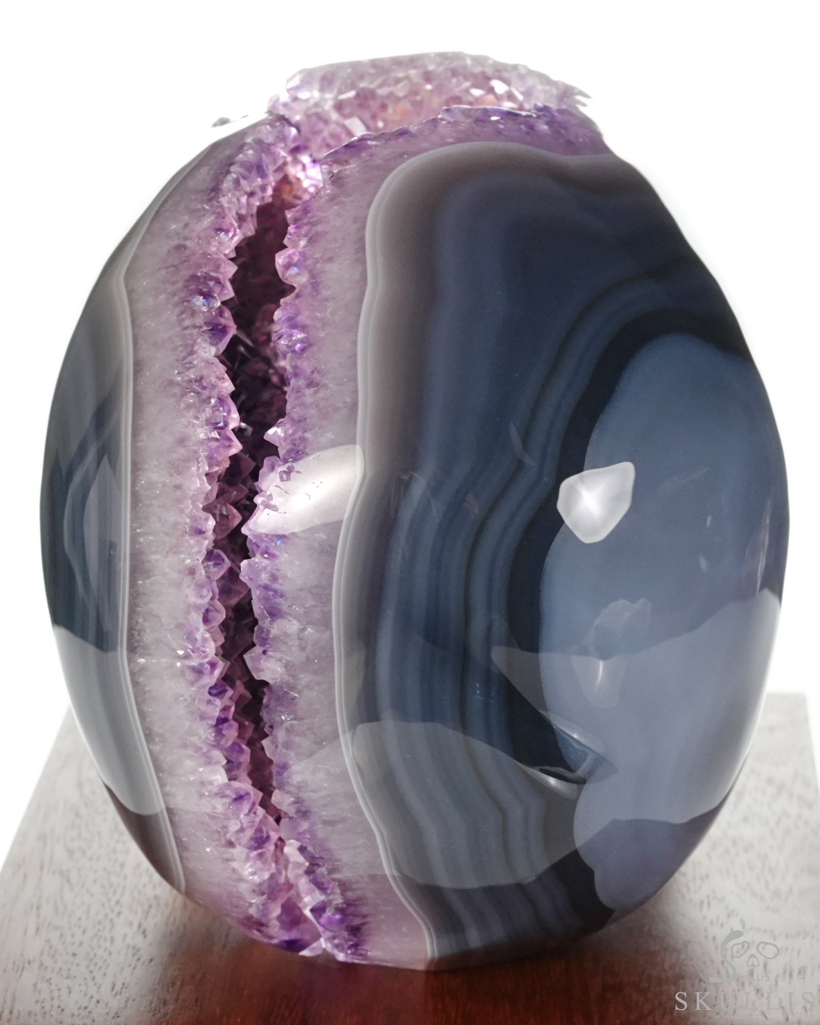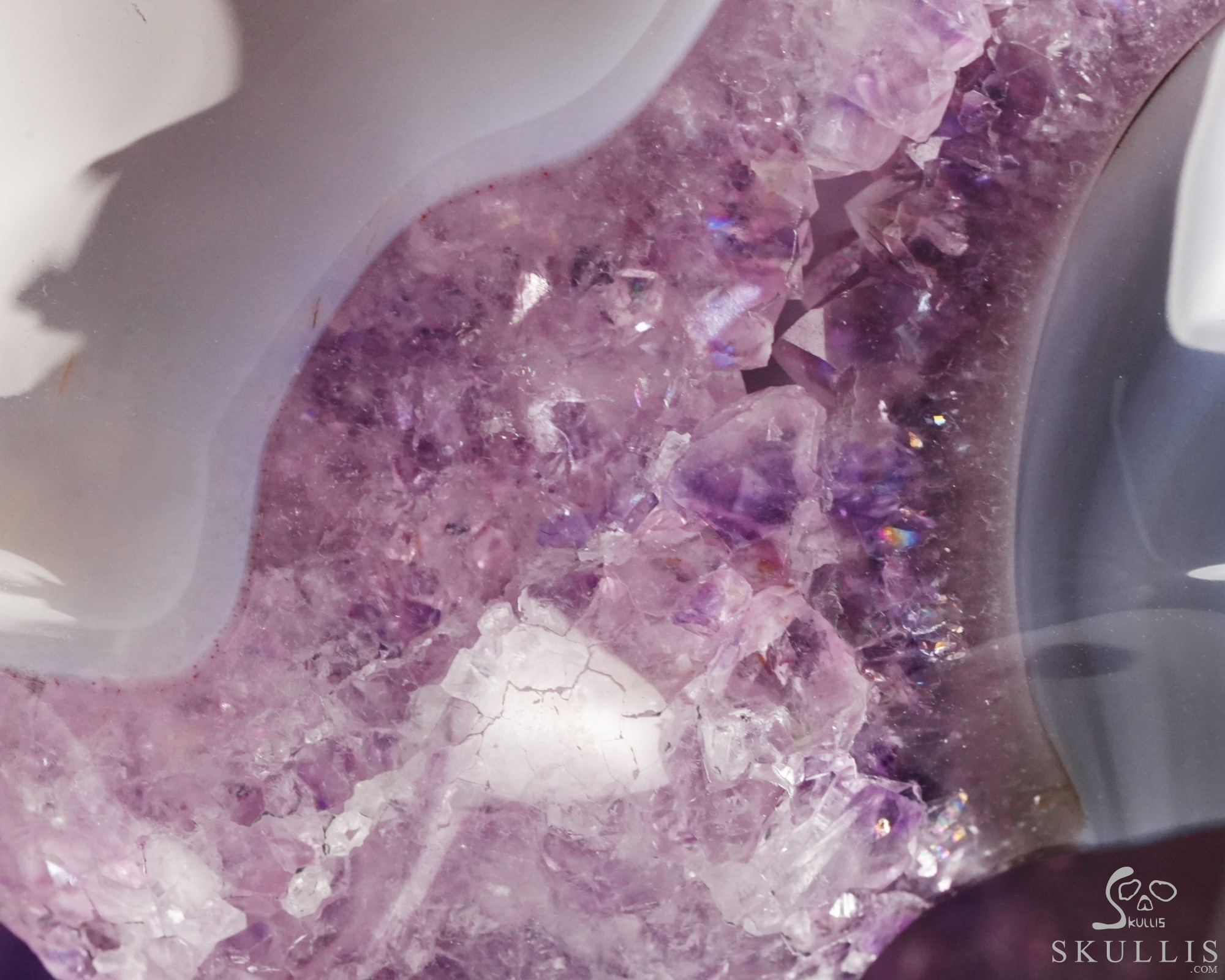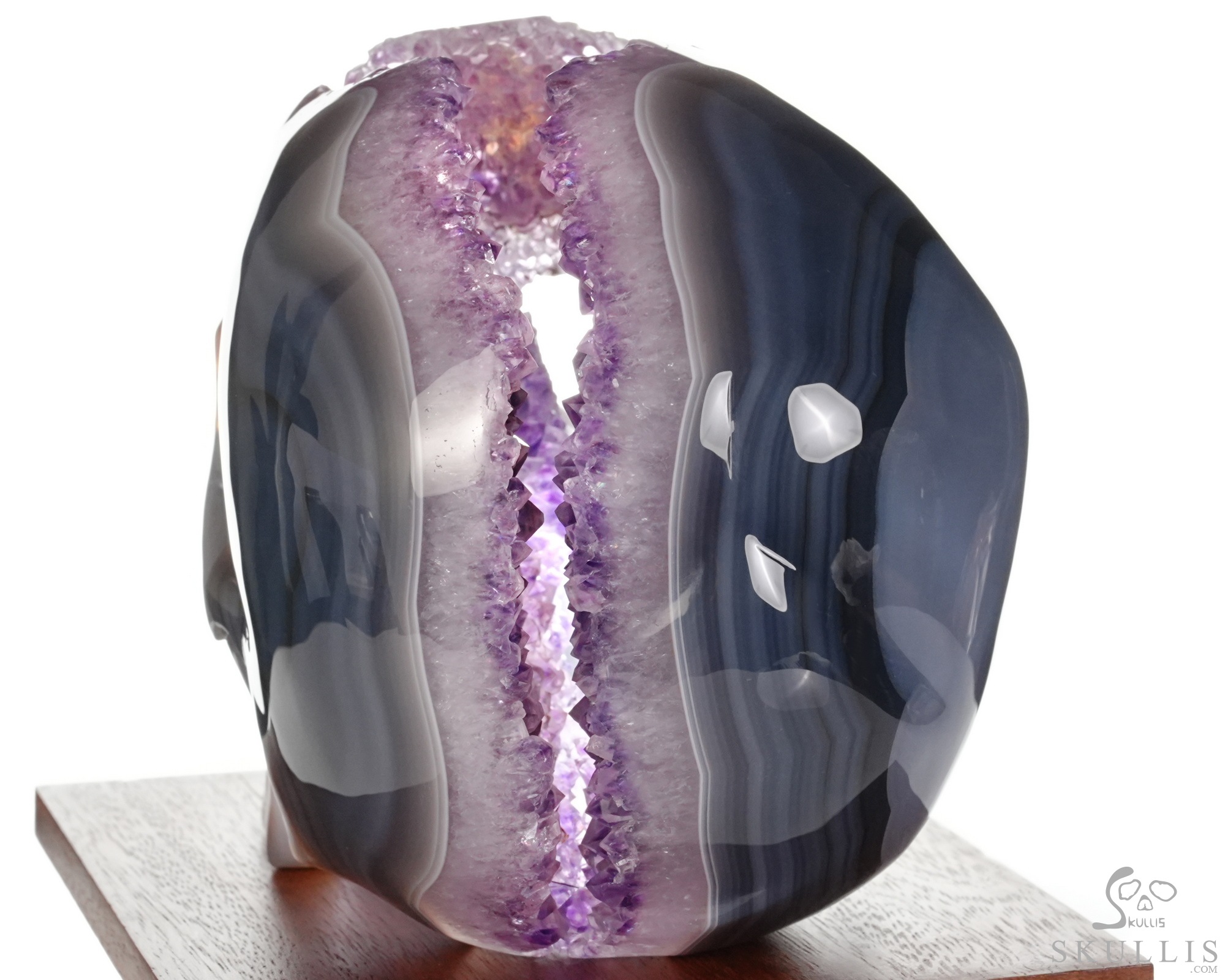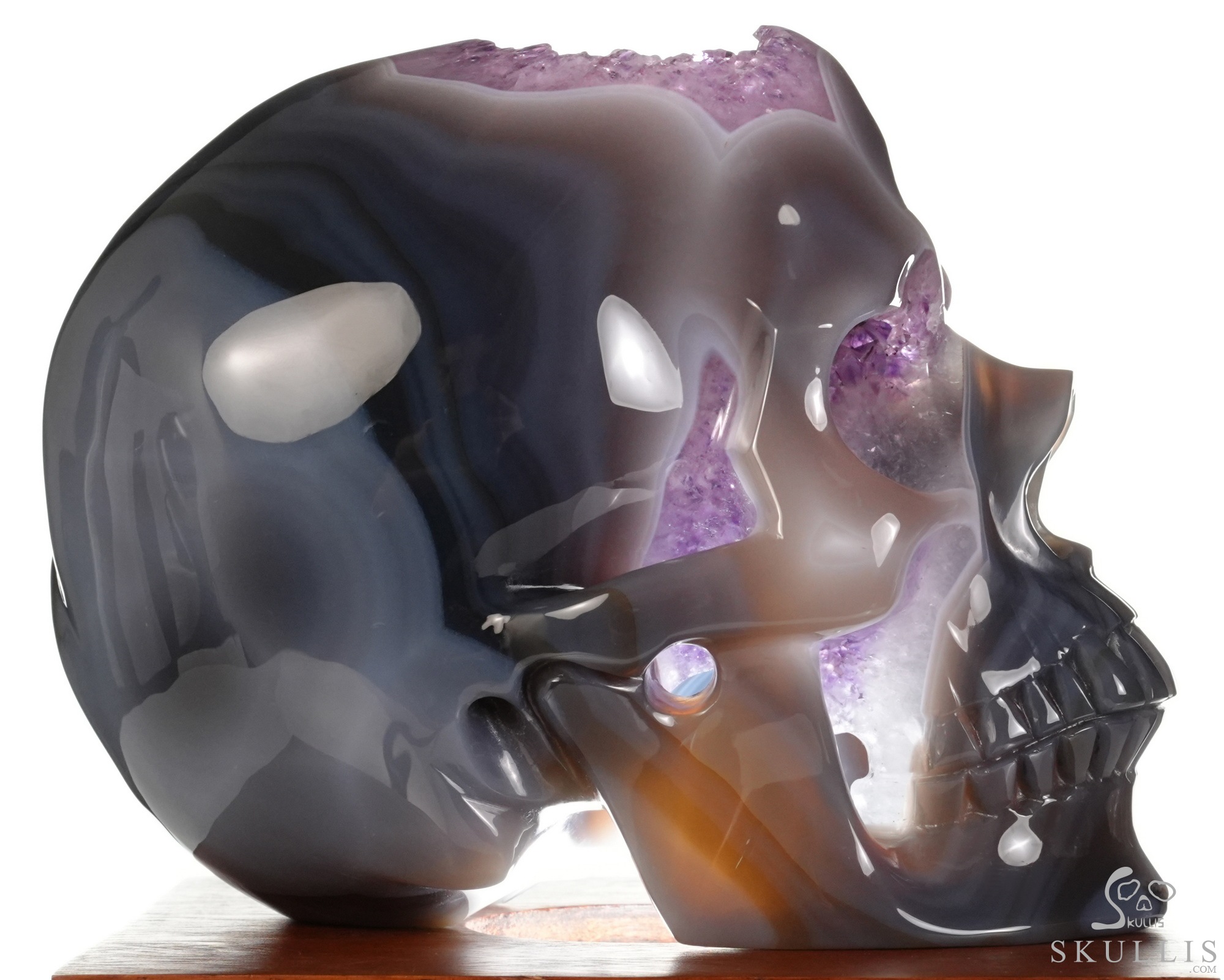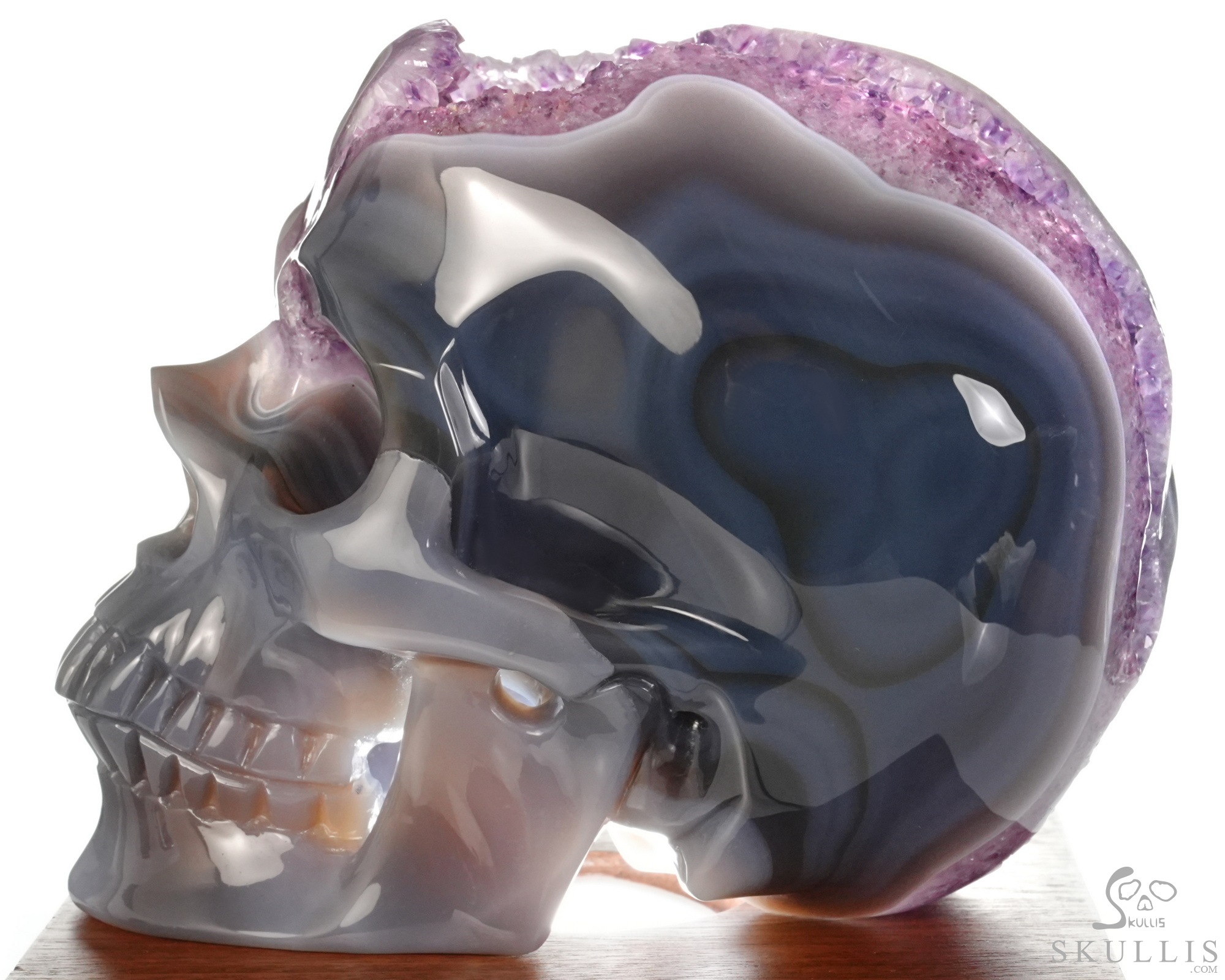 AMAZING LIFESIZED 6.2" Agate Amethyst Geode Carved Crystal Skull, Realistic, Crystal Healing